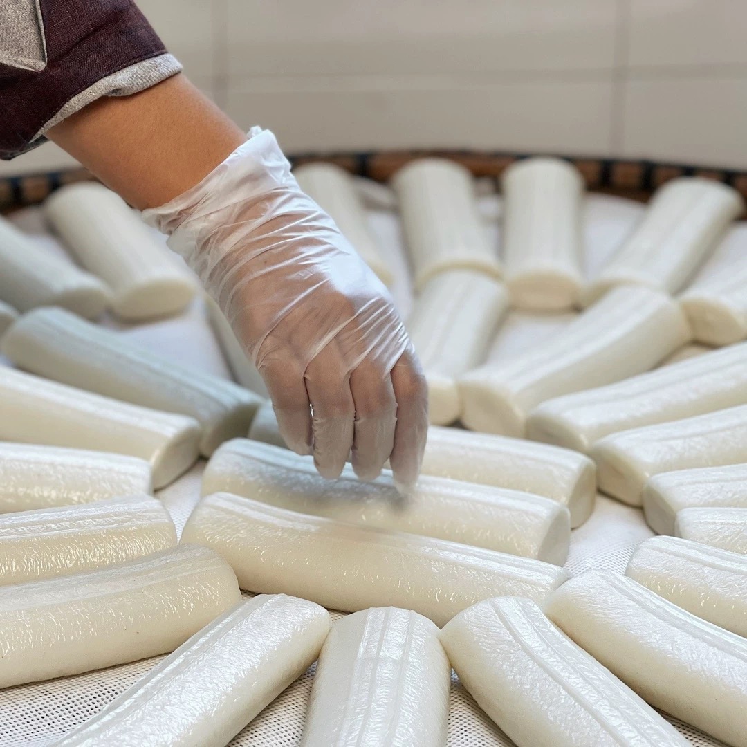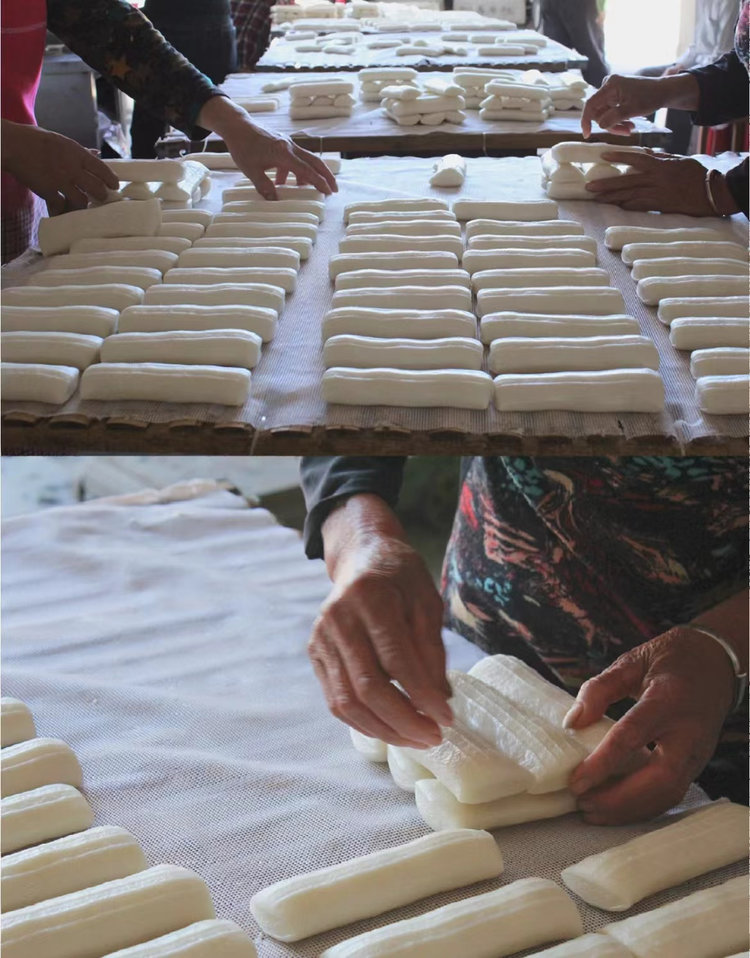 在成型前,要经过🔟道工序,才能做出滑溜溜、Q弹的水磨年糕。