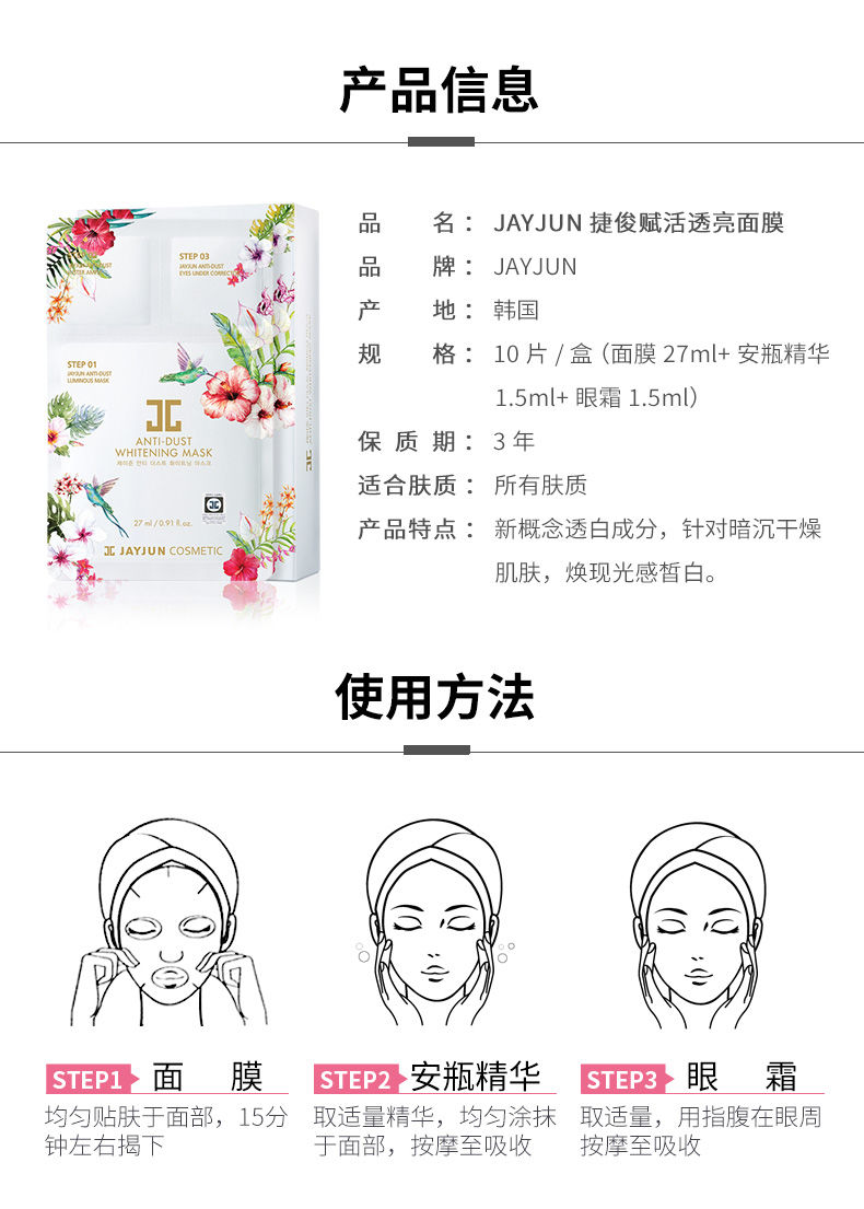 【爆款超低价预售 急单慎拍】JAYJUN捷俊防雾霾面膜清爽提亮改善暗沉保湿舒缓面膜10片装