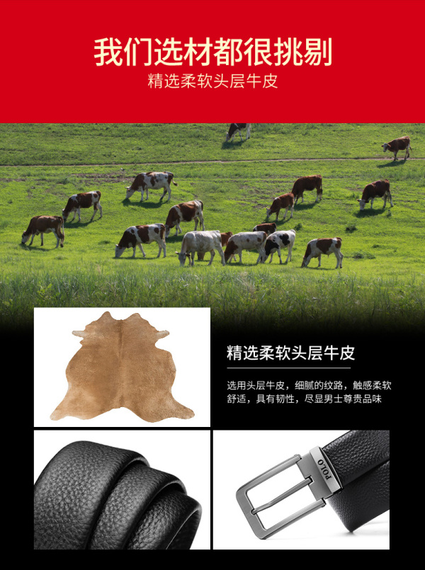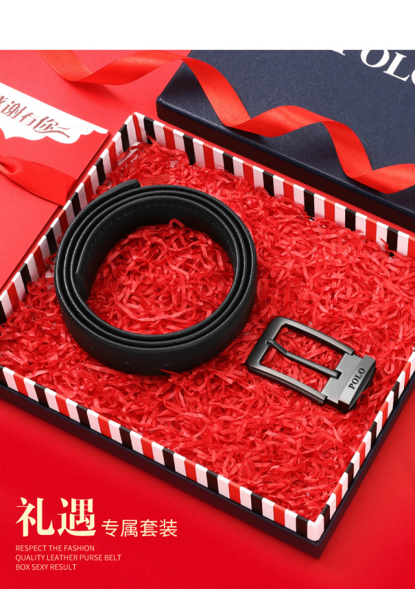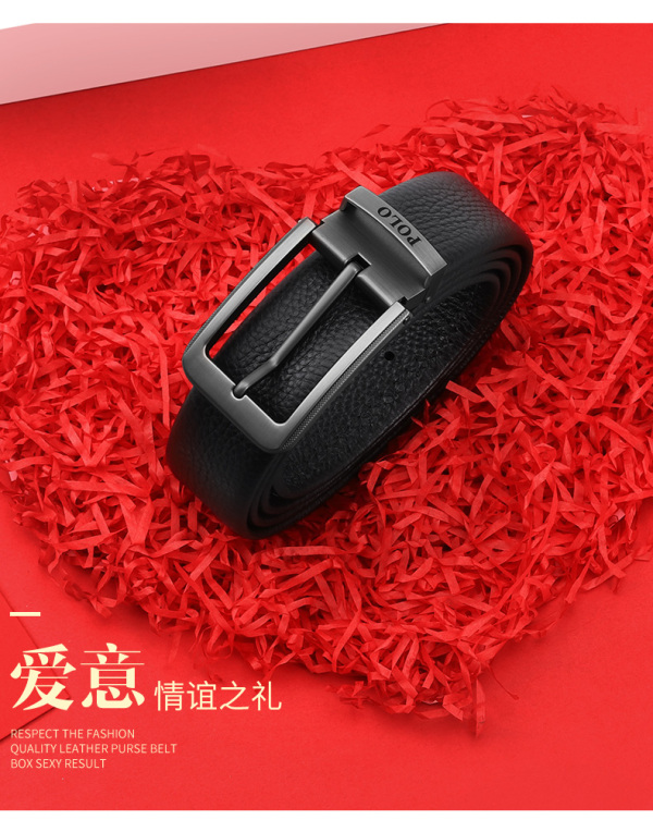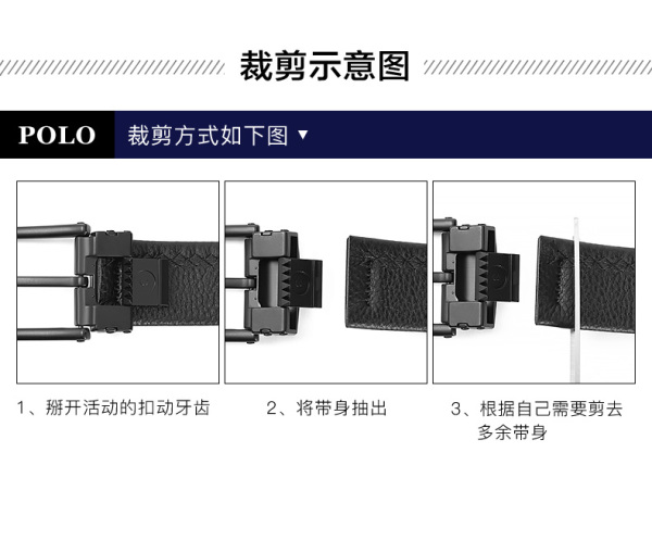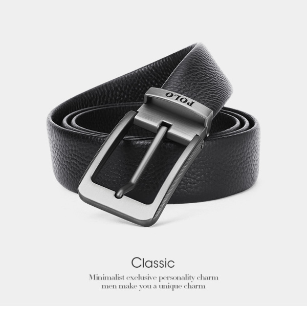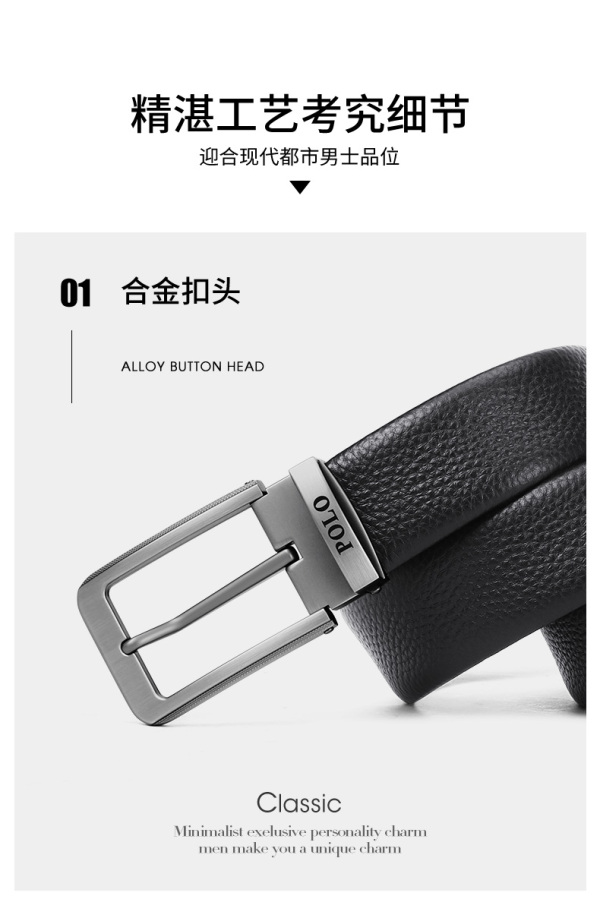 POLO 男士皮带商务休闲鳄鱼纹腰带双头层牛皮男裤带012251