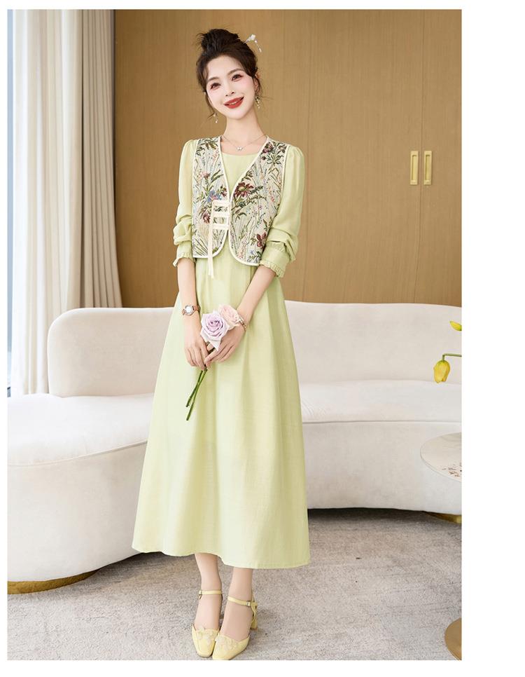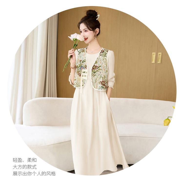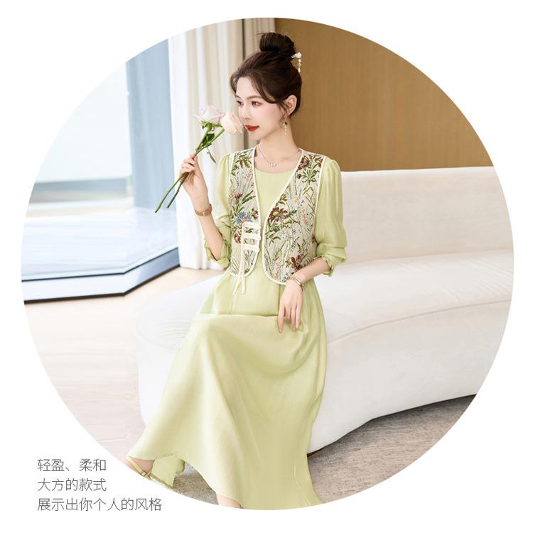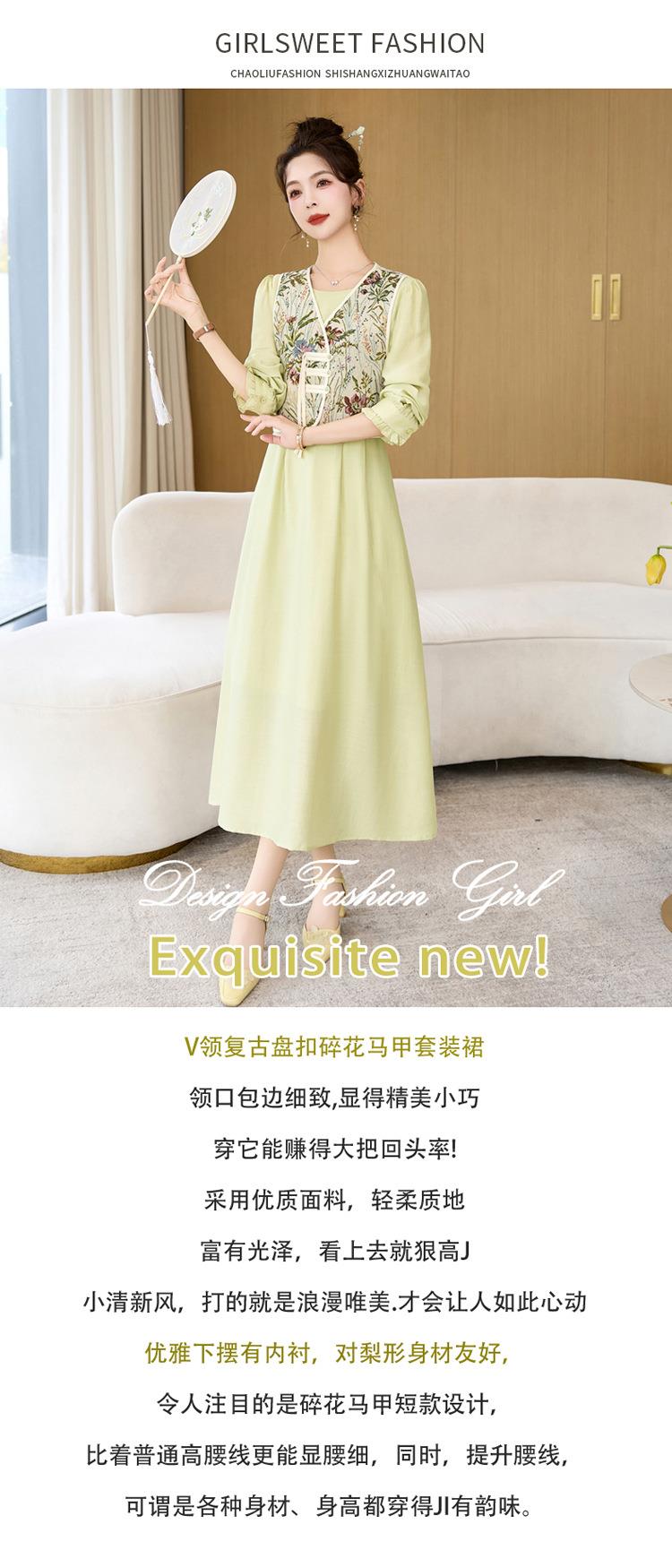 【预订·最迟6天发货】高级感套裙连衣裙女2024春夏新款复古国风马甲a字长裙两件套减龄