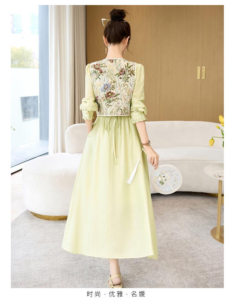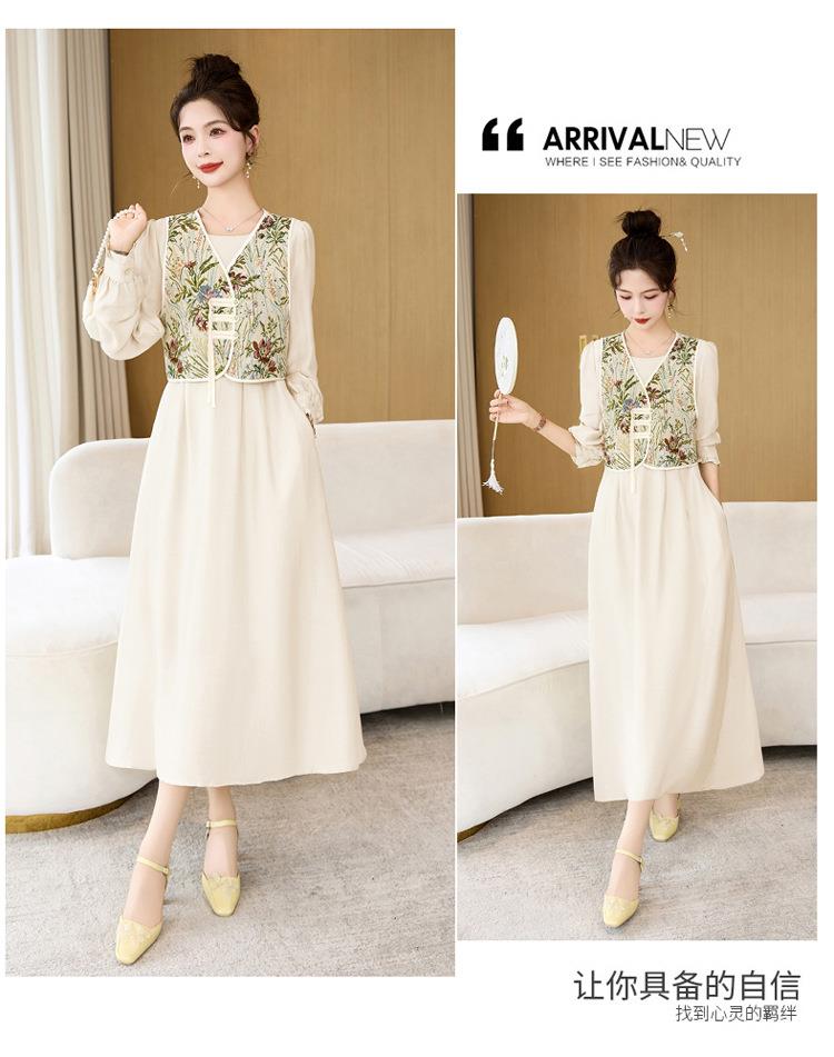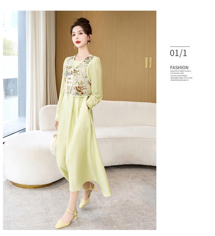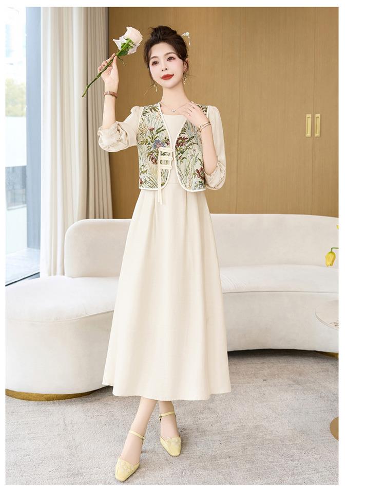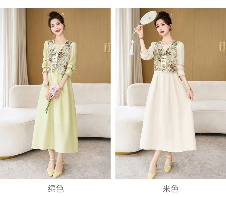 【预订·最迟6天发货】高级感套裙连衣裙女2024春夏新款复古国风马甲a字长裙两件套减龄