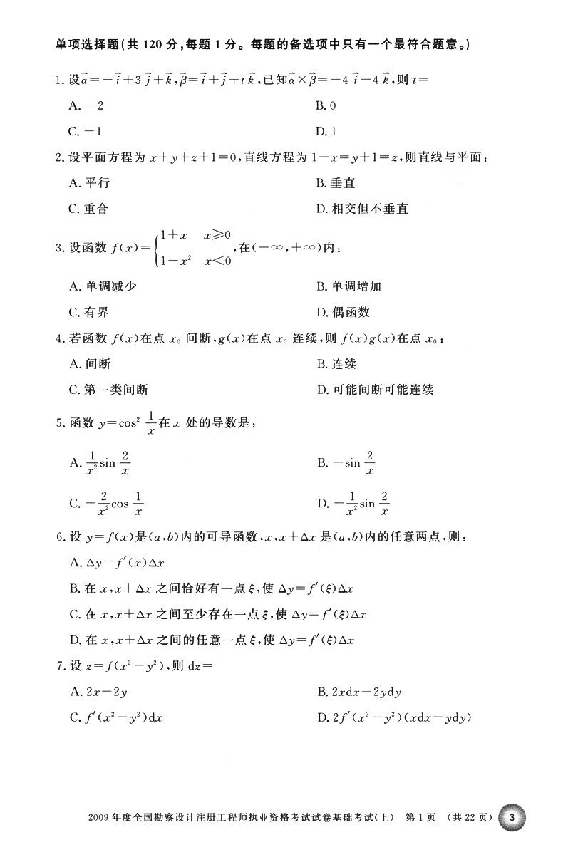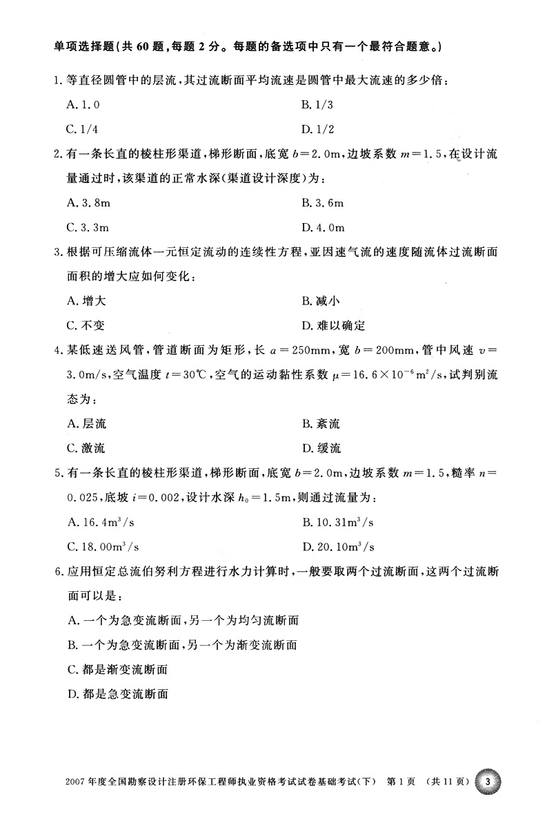2021注册环保工程师执业资格考试基础考试历年真题详解