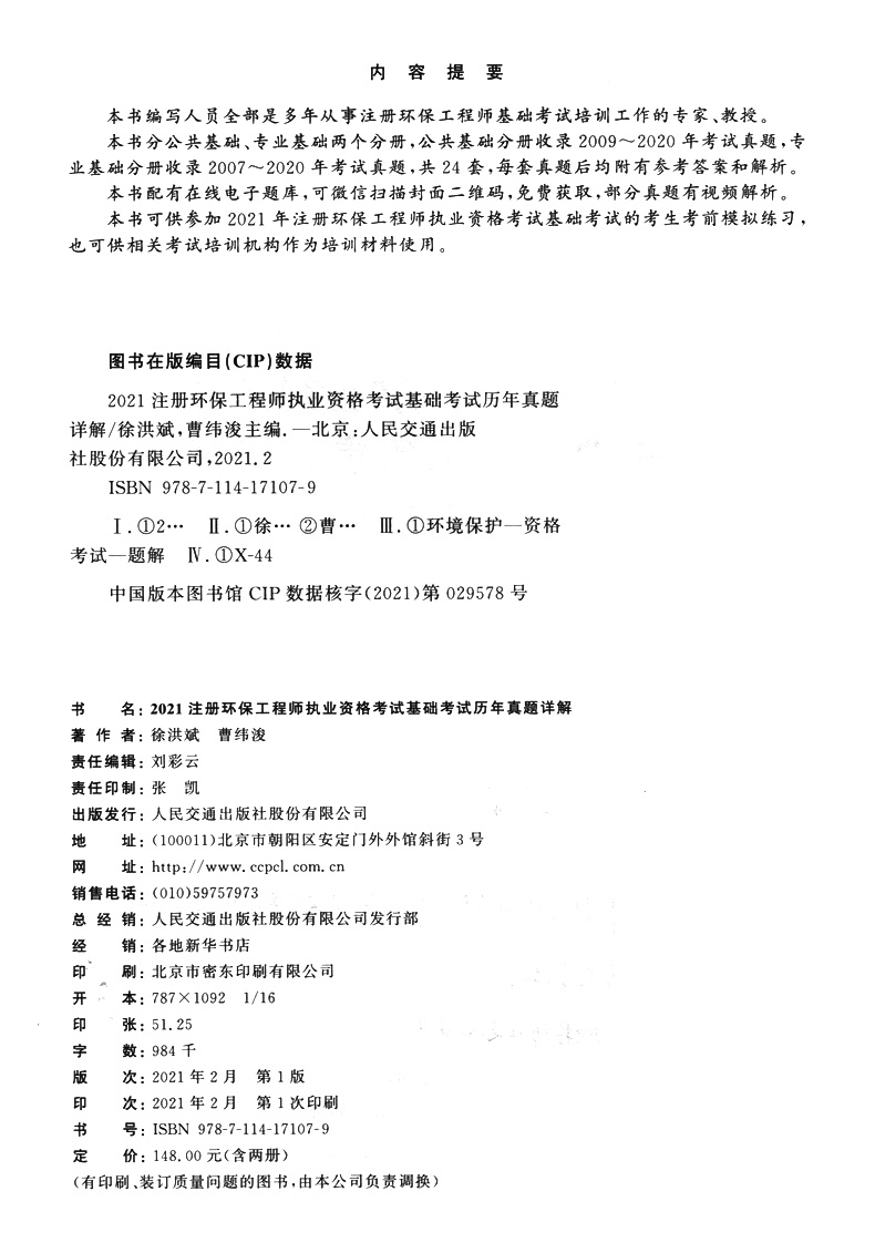 书名:2021注册环保工程师执业资格考试基础考试历年真题详解