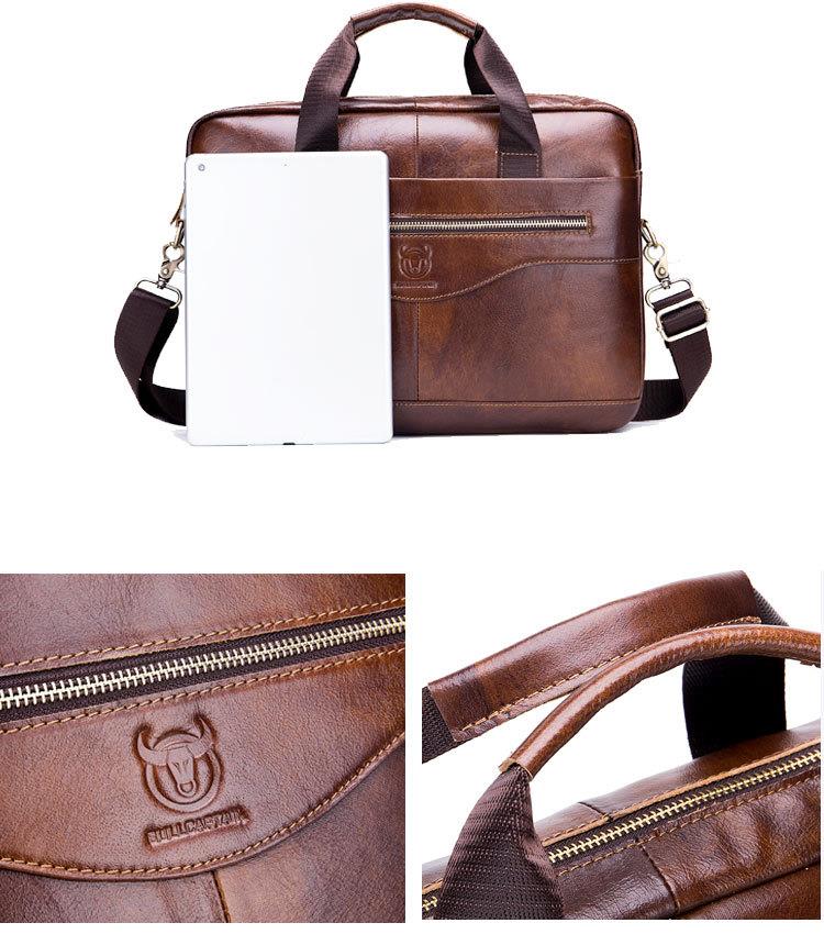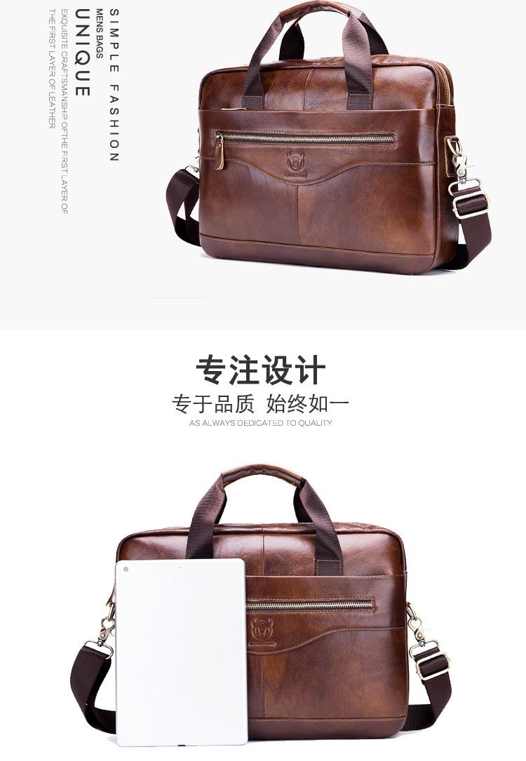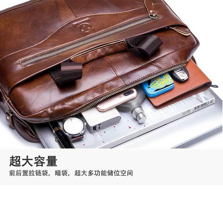 牛船长皮具手提电脑公文包男真皮单肩斜挎包头层牛皮商务公务事包