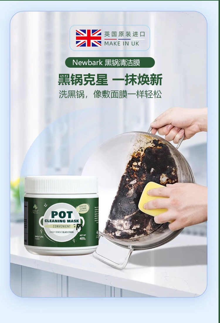 【Newbark黑锅清洁膜】英国原装进口 一“膜”即净 3步洗白陈年黑锅底 家用必备 简单省力 (下单即赠毛刷*2+垫纸*2)