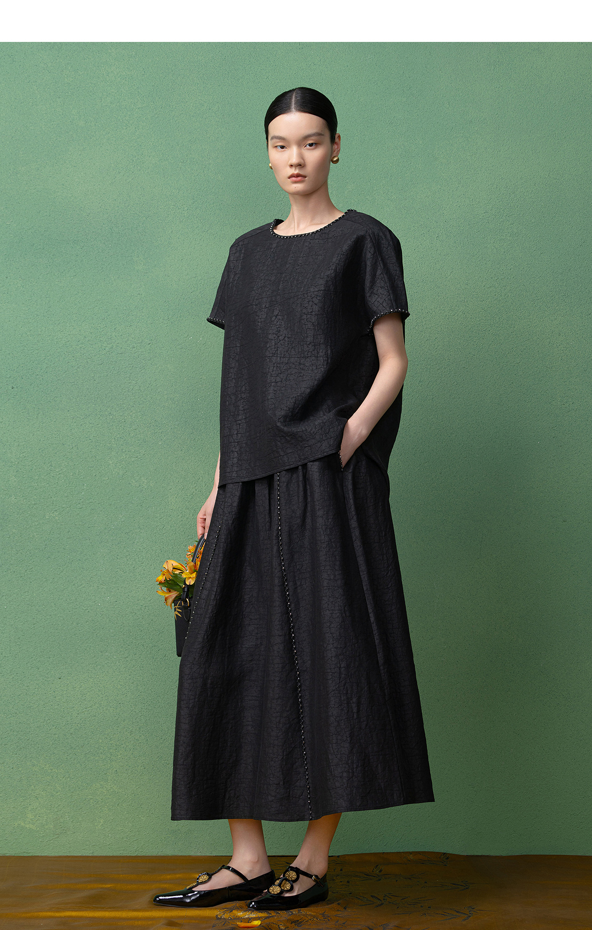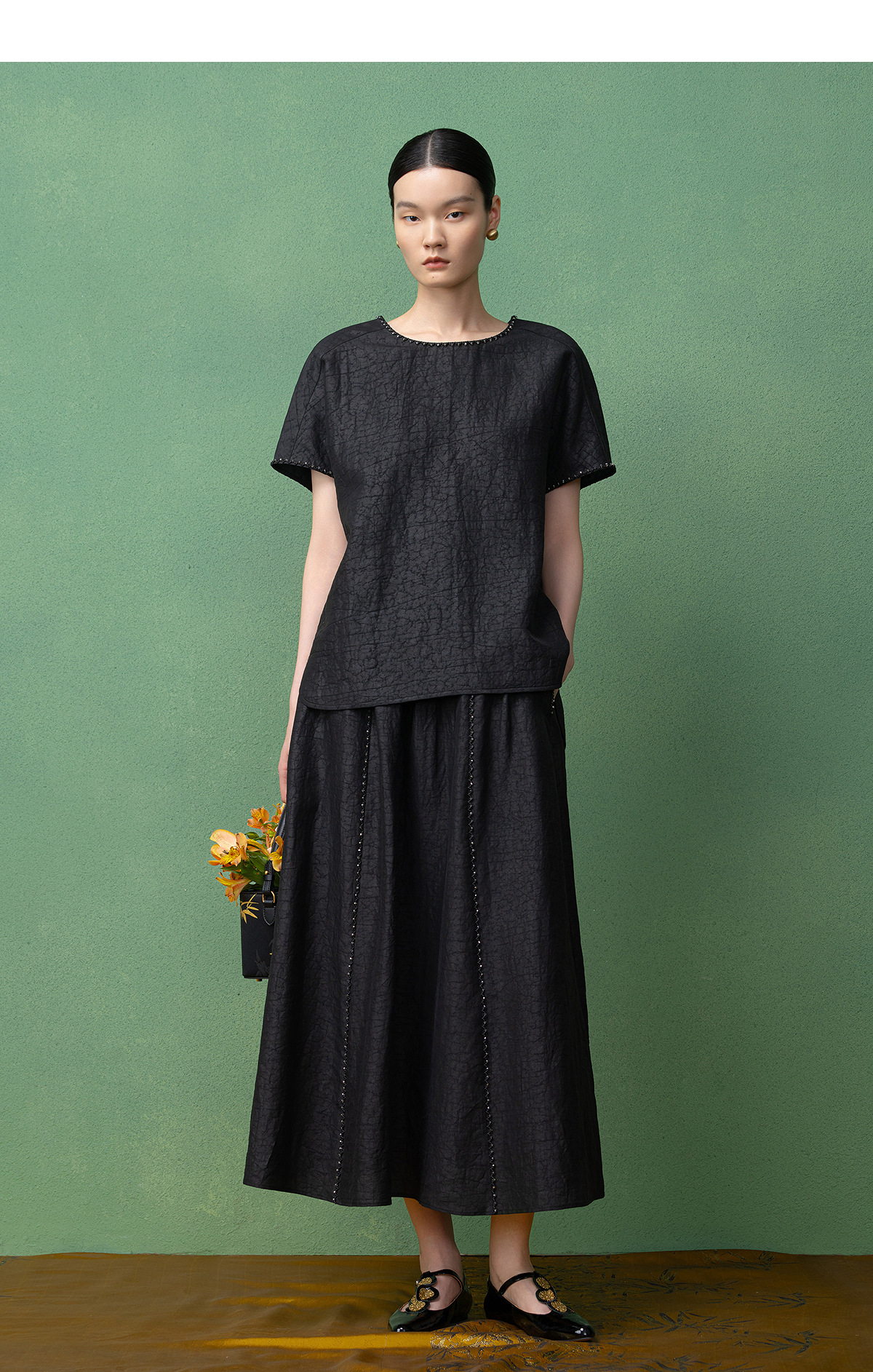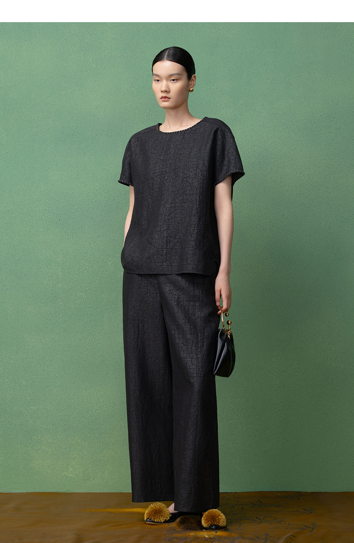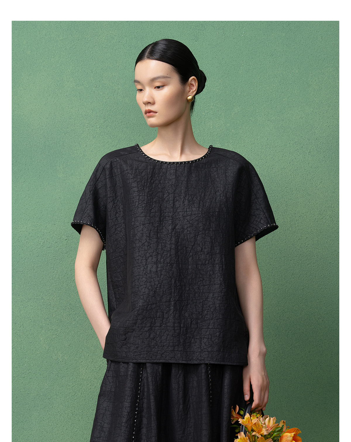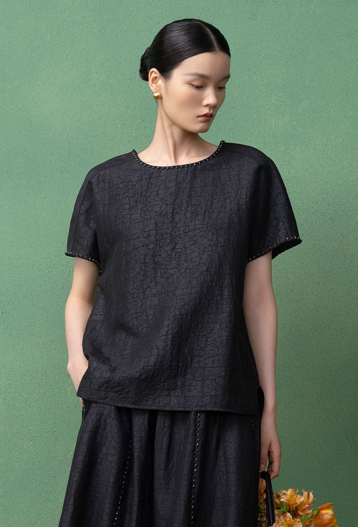【林栖设计小店】(现货)【非遗香云纱】桑蚕丝衬衣手工串珠2025秋季新款短袖上衣T1953242