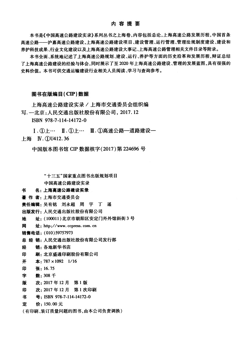 书名:上海高速公路建设实录 定价:150.0 ISBN:9787114141720 作者:上海市交通委员会 版次:1 出版时间:2021-05 内容提要: