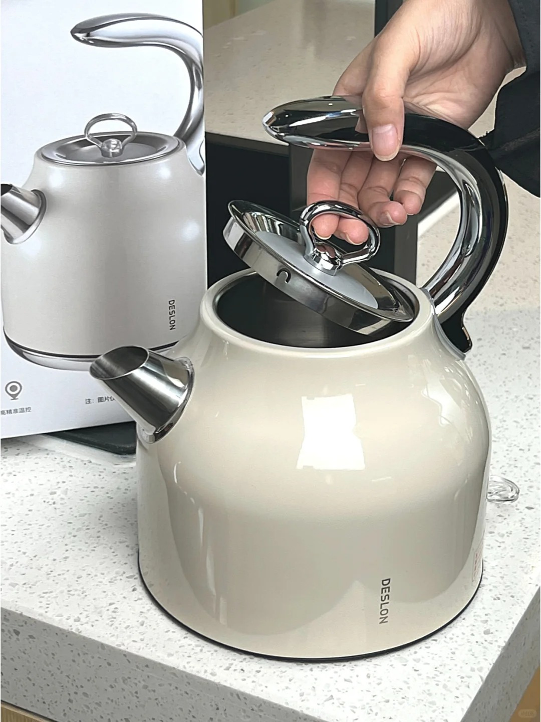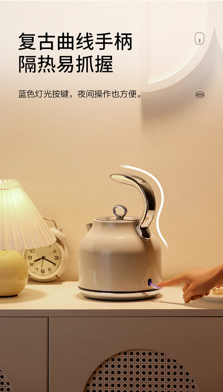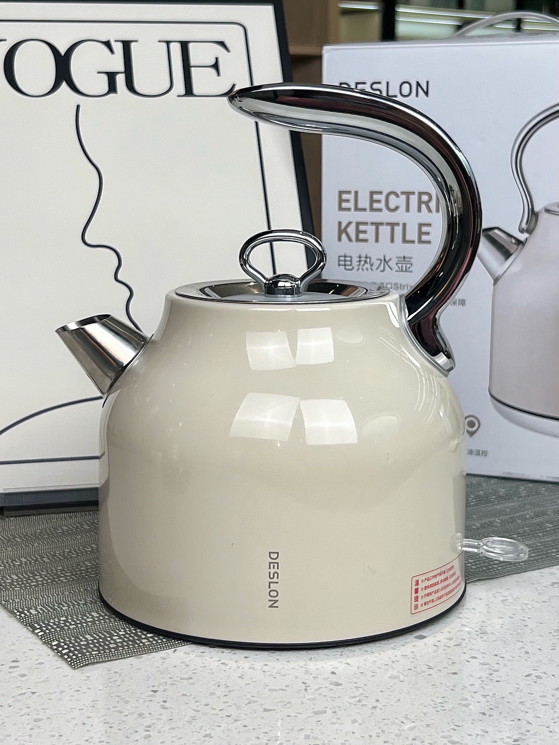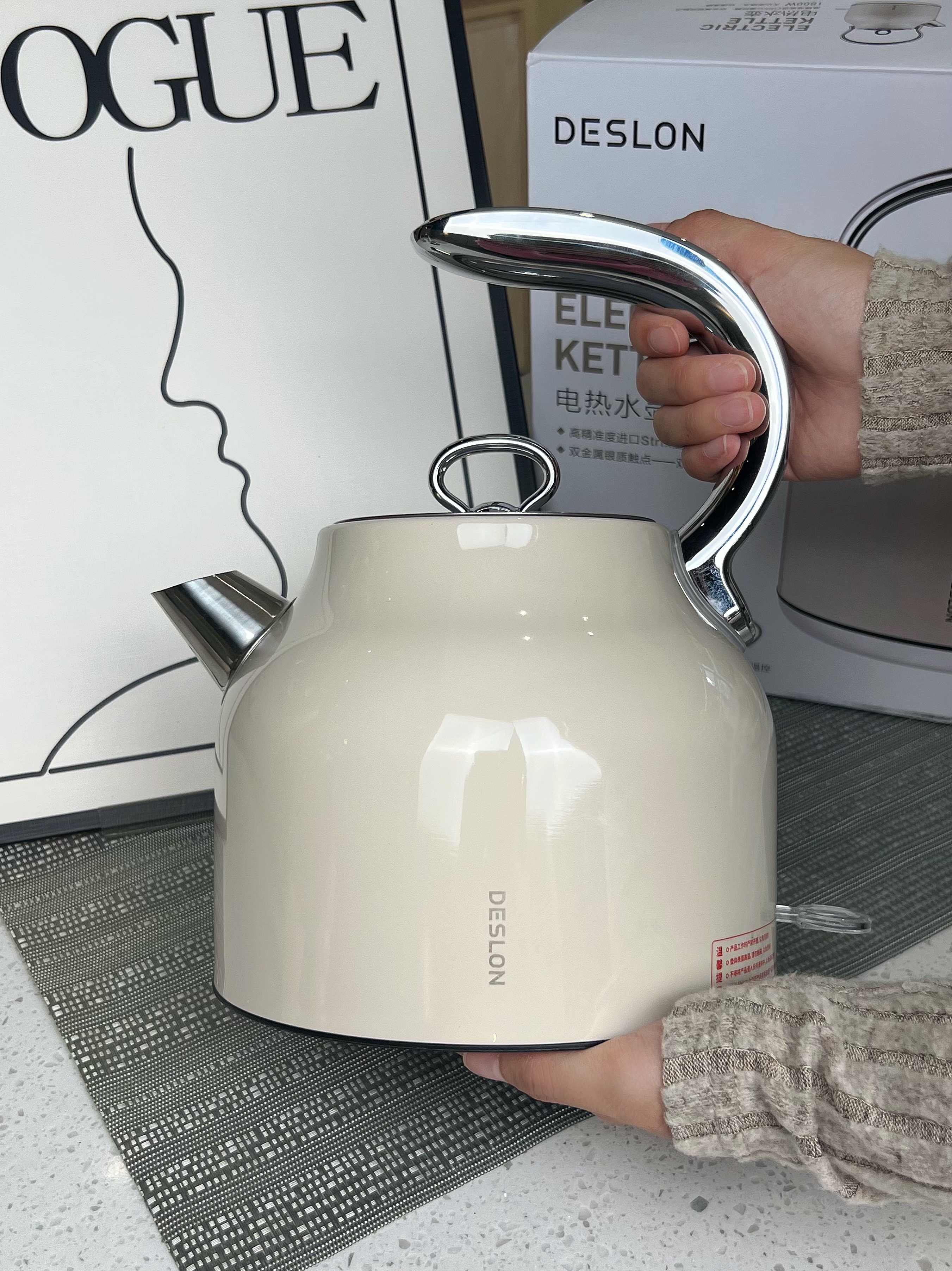 🔥【DESLON德世朗 电热水壶DDQ-SH205T】🍅1. 仿古造型结合时尚色彩,🌸高贵典雅,让厨房更加光彩舰丽; 🔺2. 大容量壶身,🥰304不锈钢内壁与发热盘
