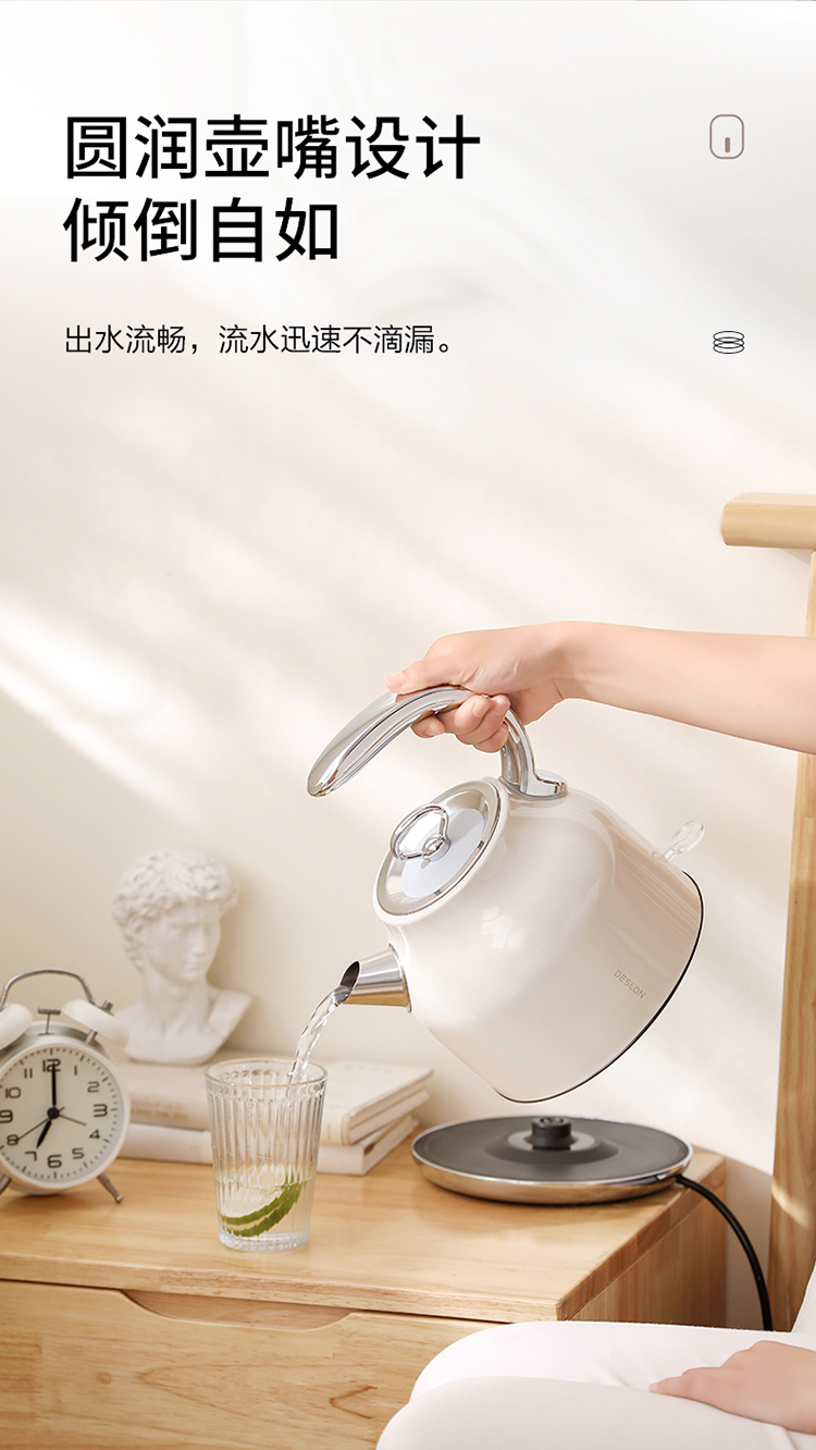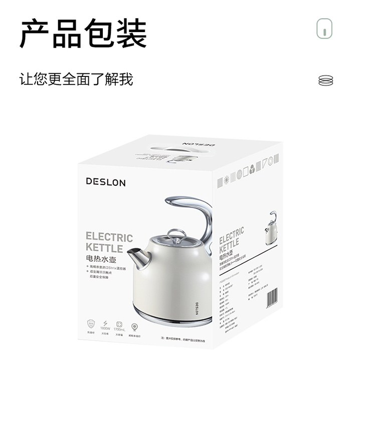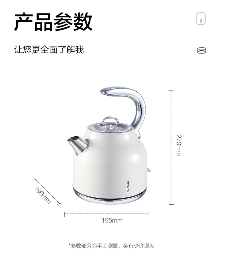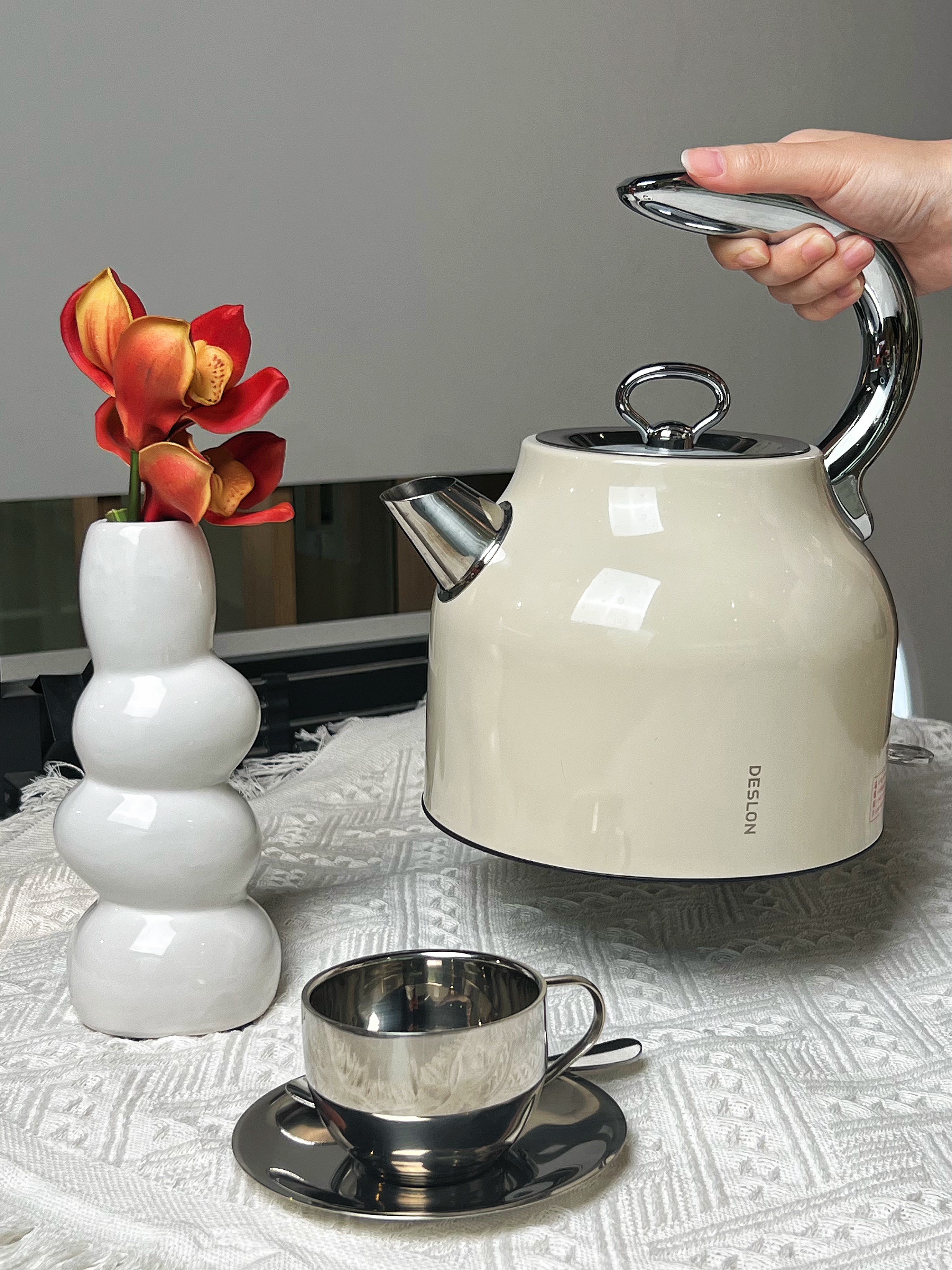 🔥【DESLON德世朗 电热水壶DDQ-SH205T】🍅1. 仿古造型结合时尚色彩,🌸高贵典雅,让厨房更加光彩舰丽; 🔺2. 大容量壶身,🥰304不锈钢内壁与发热盘