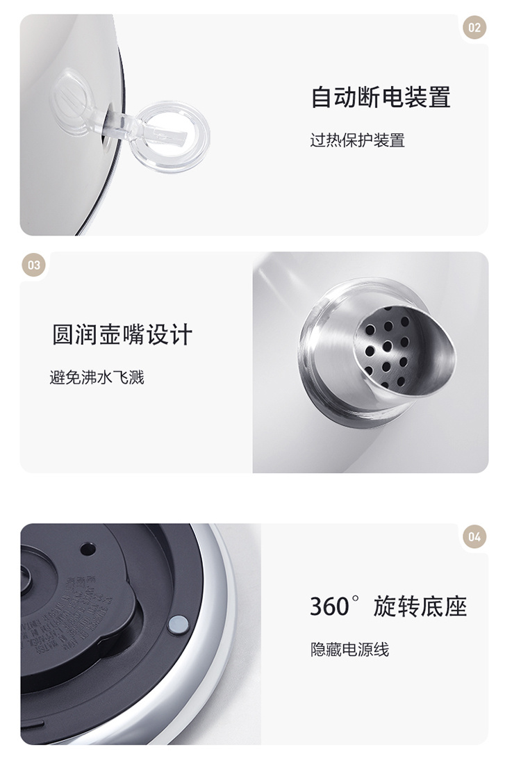 在安全方面,它采用的高精准度进口Strix温控器,双金属银制触点, 带来双重保障的同时,有效提高热水壶的使用寿命 不仅如此,烧水时噪音也比普通烧水壶小哦,贴心程度100分!
