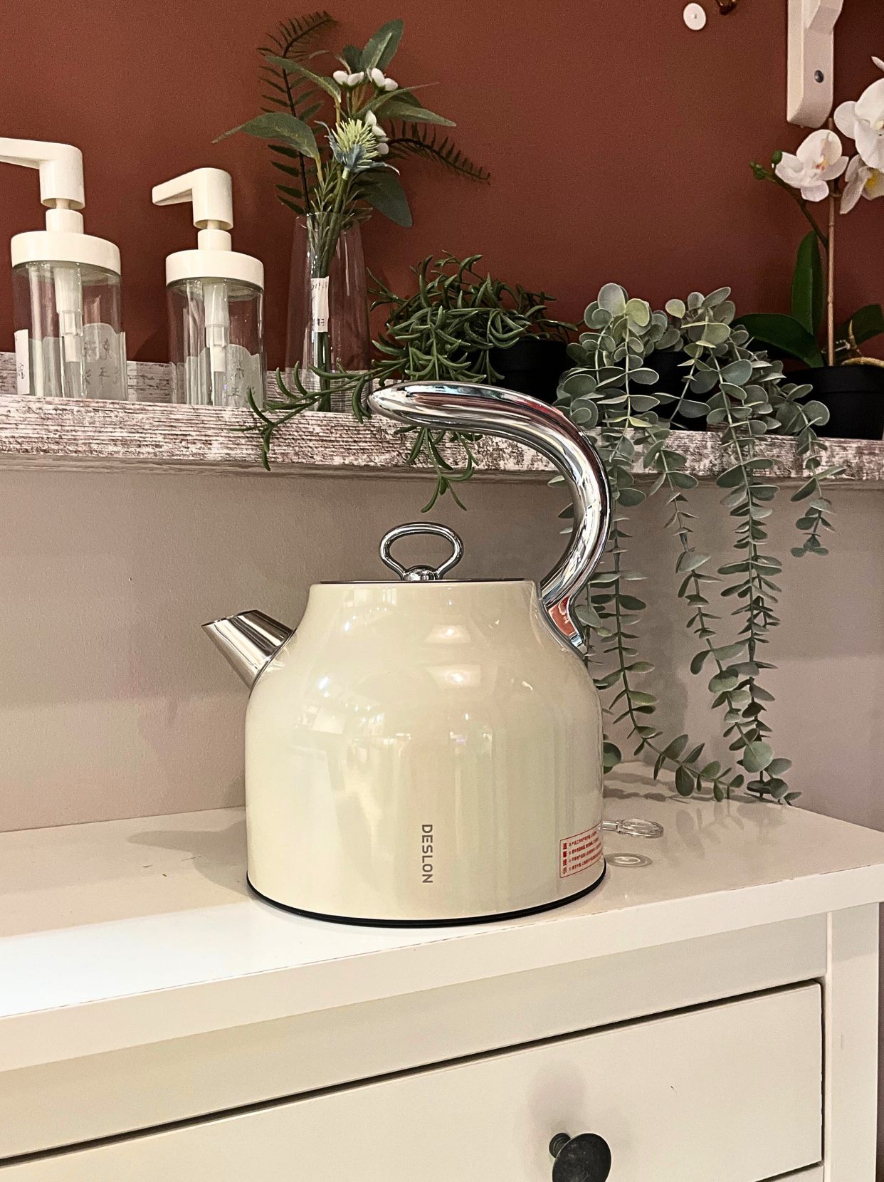 精致生活的人,喝水也绝不能将就,厨房小家电颜值必须要在线! 复古造型,奶油白色配上可爱的造型,放在哪都是颜值担当。 刚入的这个奶乎乎的德世朗电热水壶,颜值真的爱了爱了