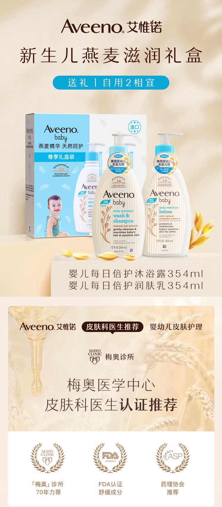 💙Aveeno艾惟诺354ml*2瓶婴儿洗护礼盒💙