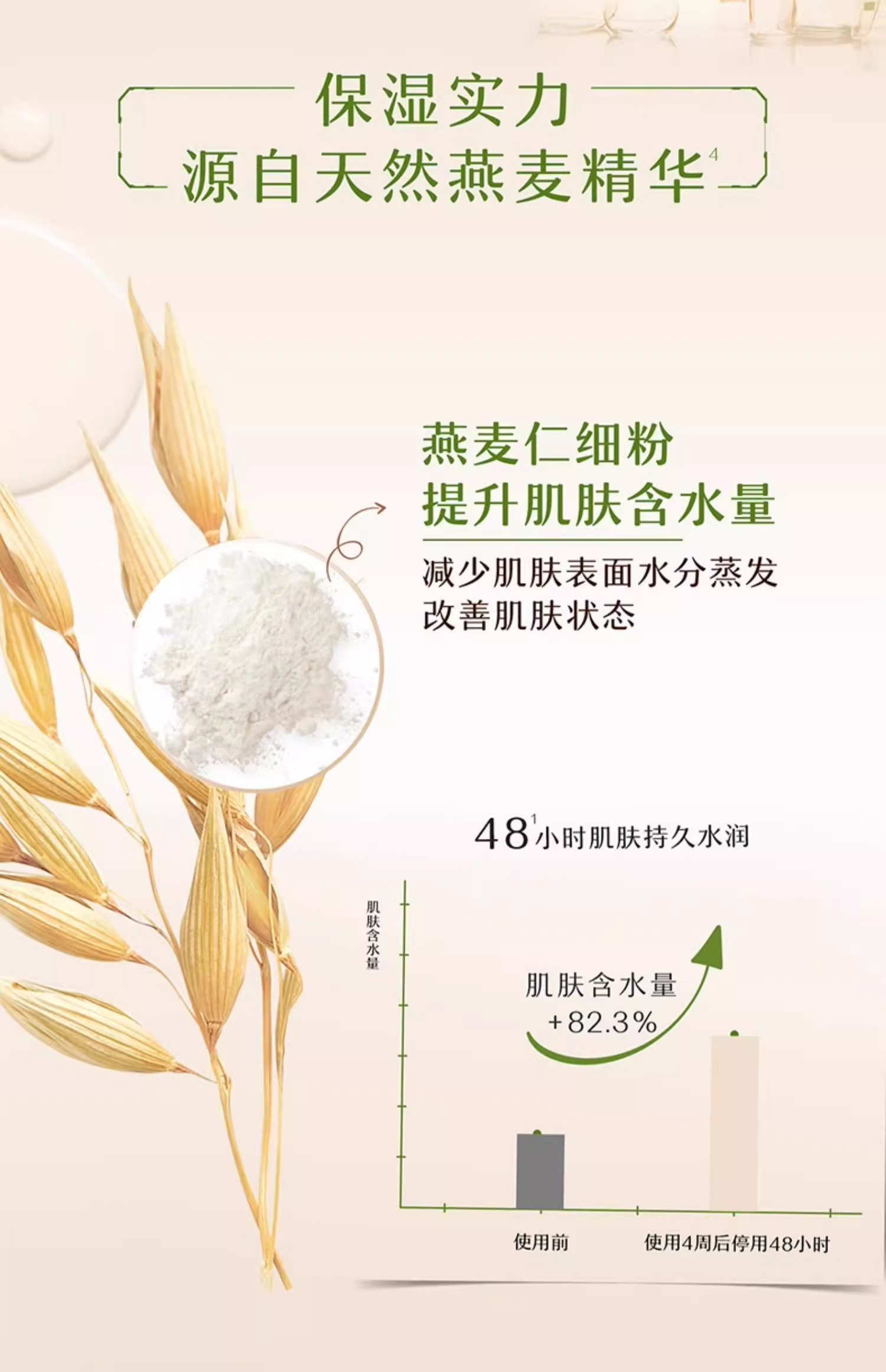 天然燕麦精华和甘油都可以帮助肌肤锁住水分,