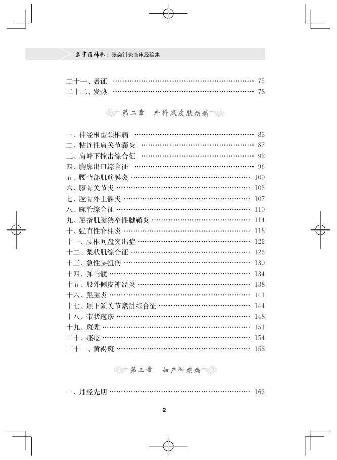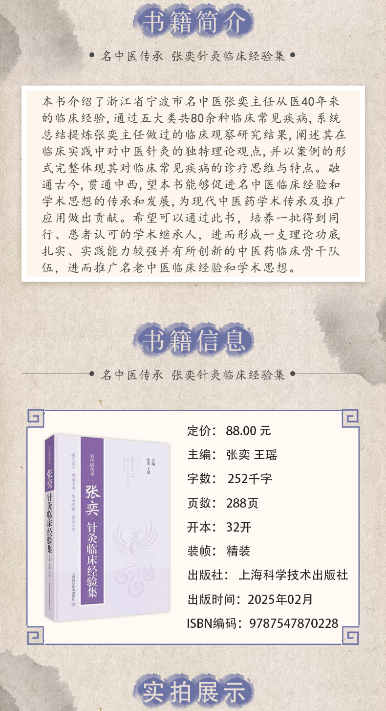 本书介绍了浙江省宁波市名中医张奕主任从医40年来的临床经验,通过五大类共80余种临床常见疾病,系统总结提炼张奕主任做过的临床观察研究结果,阐述其在临床实践中对中医针灸的独特理论观点,并以案例的形式完整体现其对临床常见疾病的诊疗思维与特点。融通古今,贯通中西,望本书能够促进名中医临床经验和学术思想的传承和发展,为现代中医药学术传承及推广应用做出贡献。希望可以通过此书,培养一批得到同行、患者认可的学术继承人,进而形成一支理论功底扎实、实践能力较强并有所创新的中医药临床骨干队伍,进而推广名老中医临床经验和学术思想。