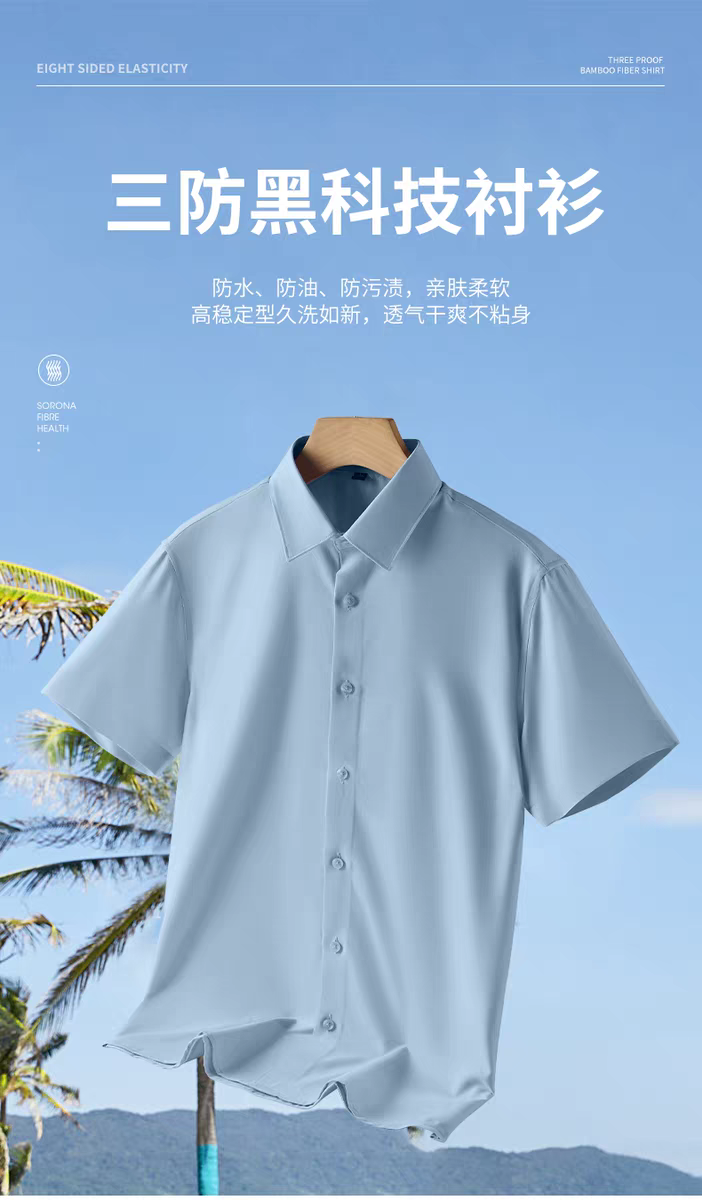 【品牌清仓特惠】欧保罗三防莱赛尔天短袖衬衫 夏季薄款纯色衬衣工装上班商务休闲中年衬衫