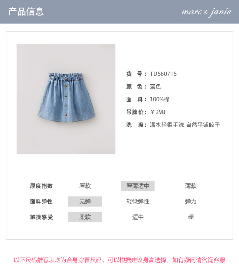马克珍妮时髦百搭女童A版牛仔半裙2026年夏装新款560715