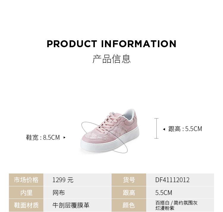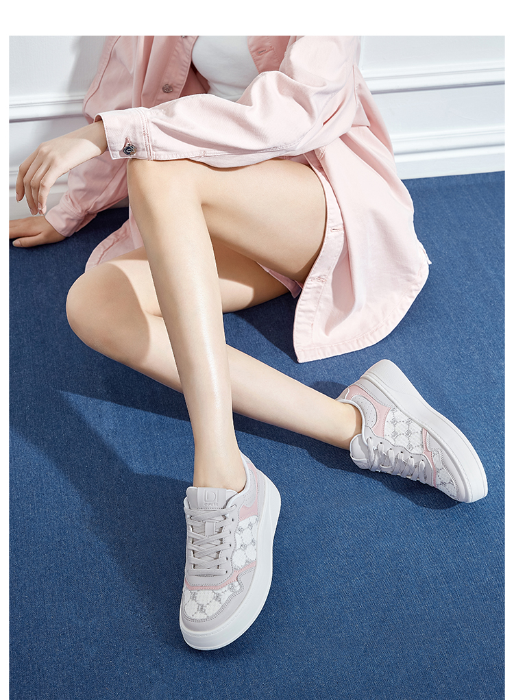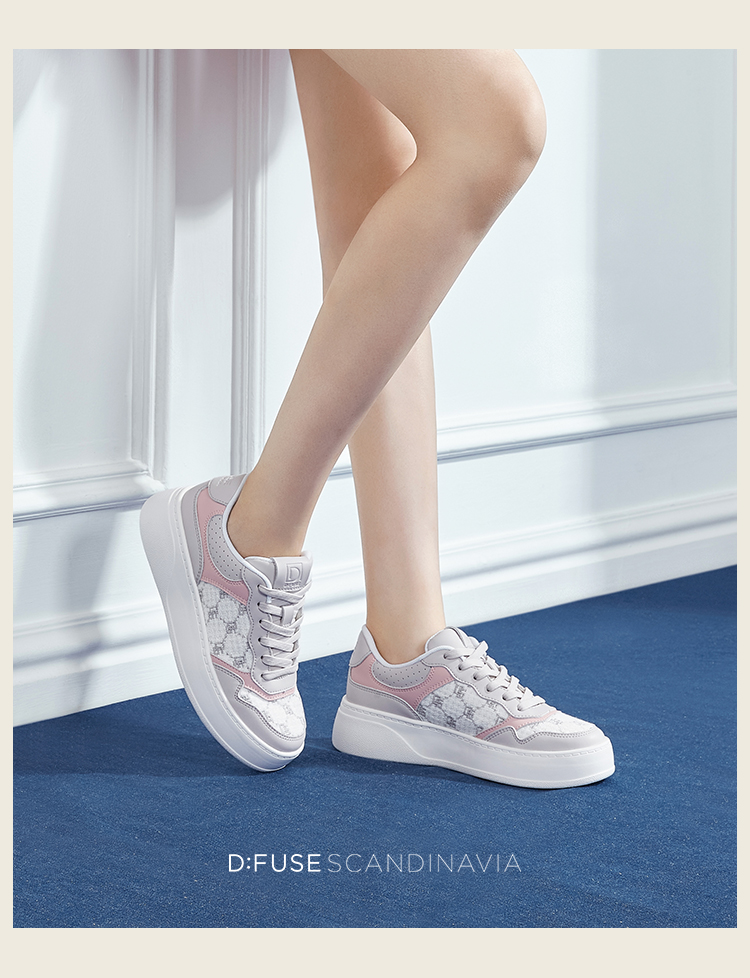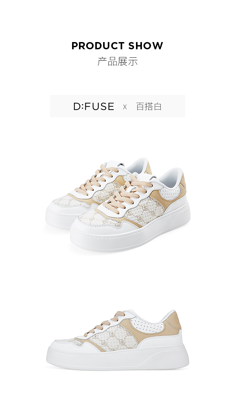 Dfuse迪芙斯2024春季新款圆头休闲百搭刺绣厚底运动鞋DF41112012