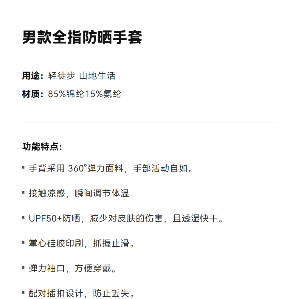 KAILAS凯乐石 男款全指防晒手套 KM2656101
