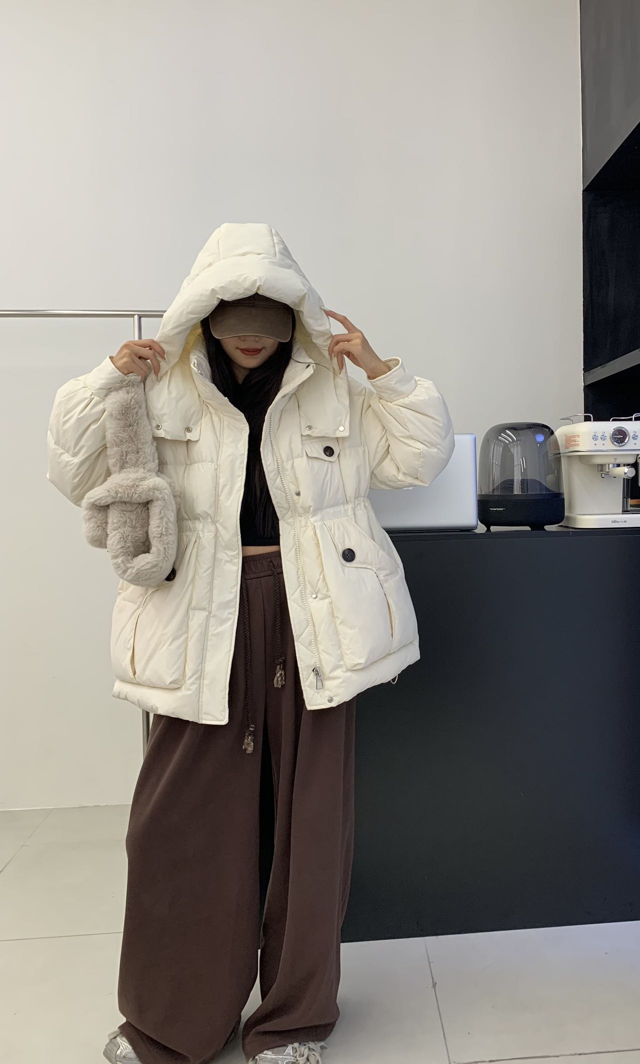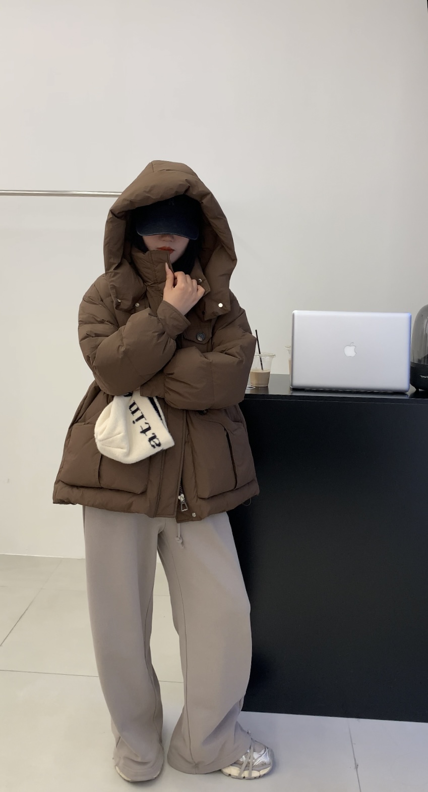【YW】无忧购韩系短款连帽加厚宽松时尚休闲白鸭绒保暖外套8802(截单后7天发货)25年清仓捡漏