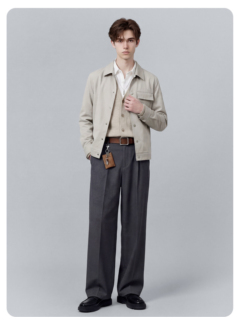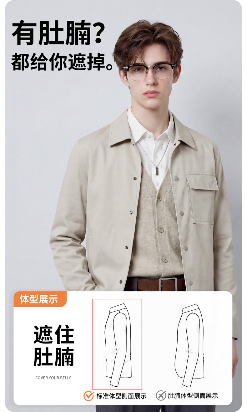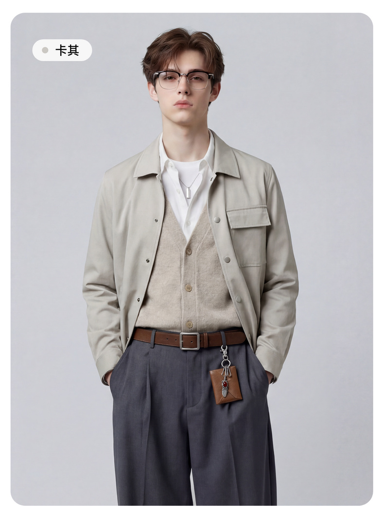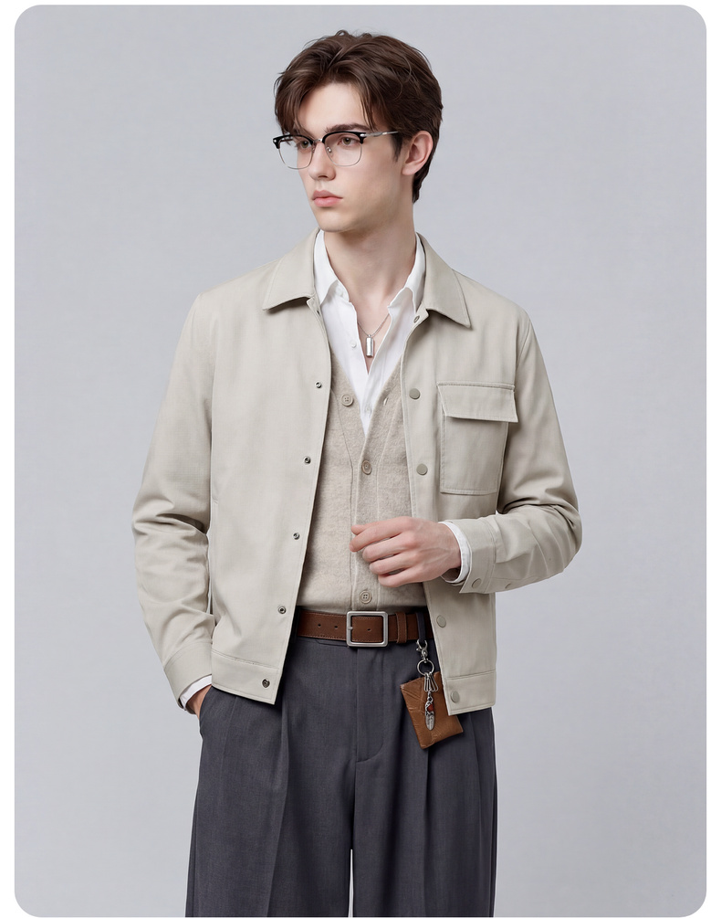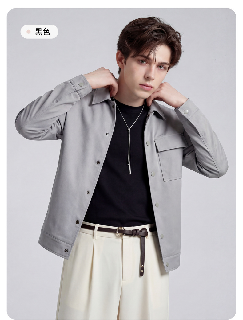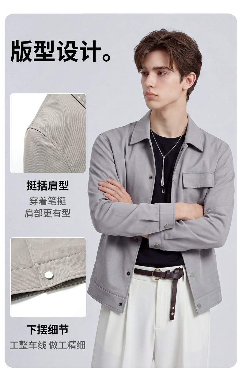 【斜纹肌理】圣得西时尚工装翻领夹克外套男2026新款春季商务上衣