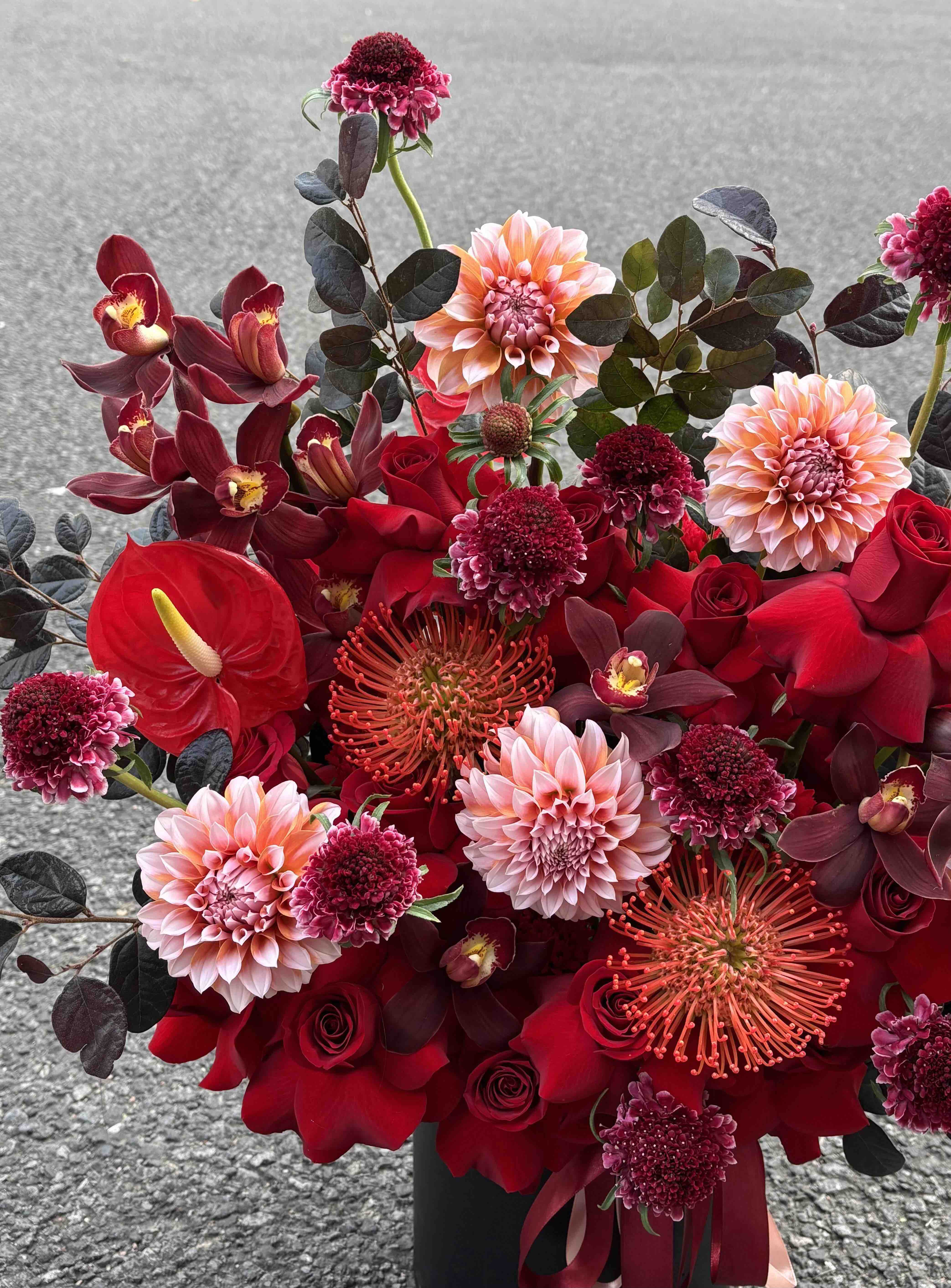 《喜气洋洋》针垫红掌奶油桃子红色系抱抱桶