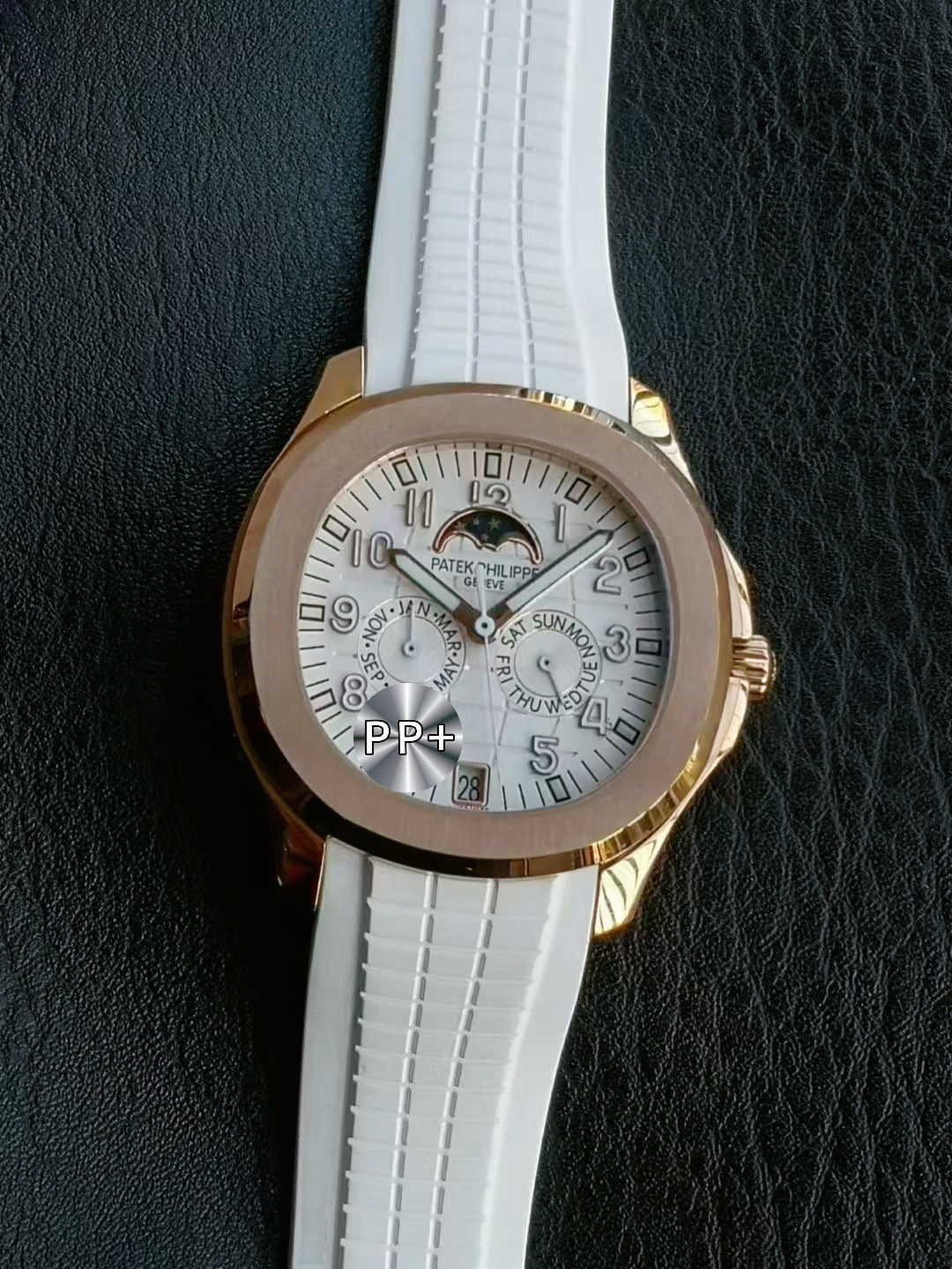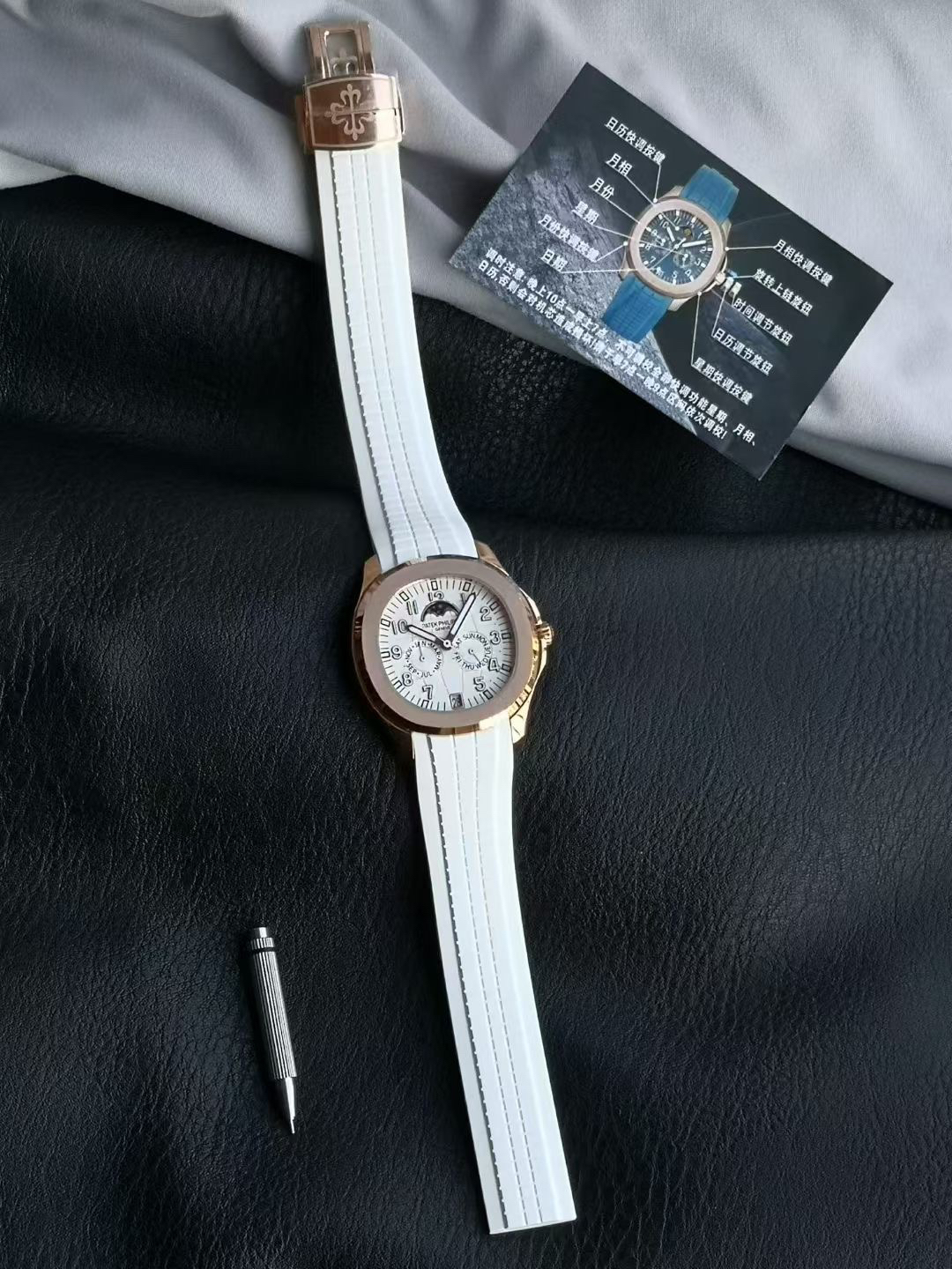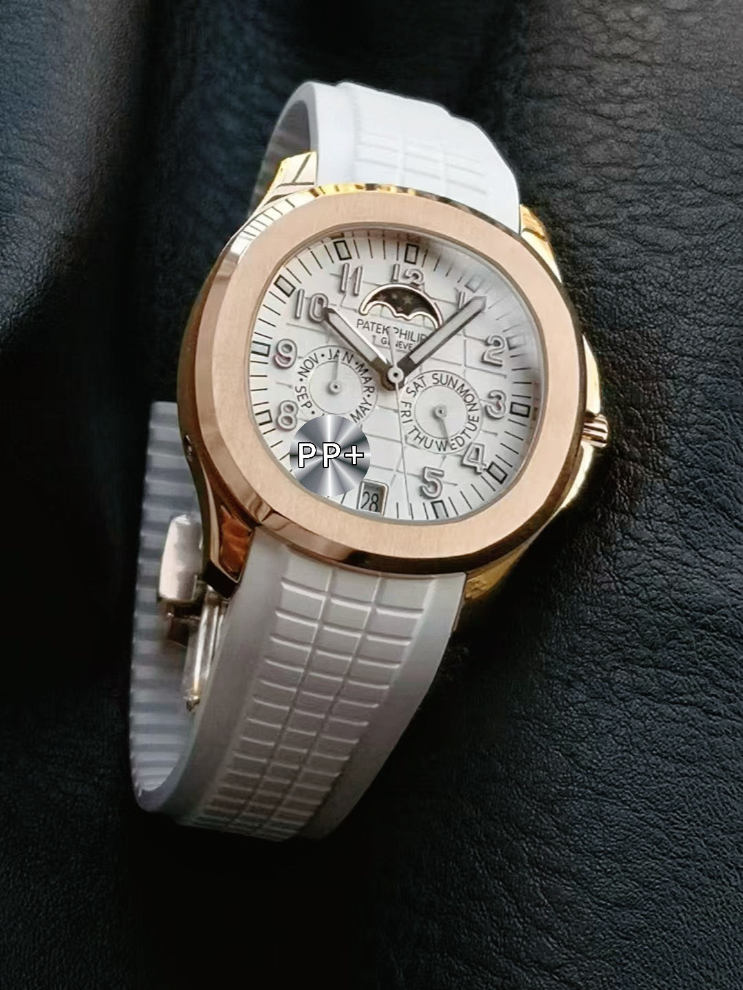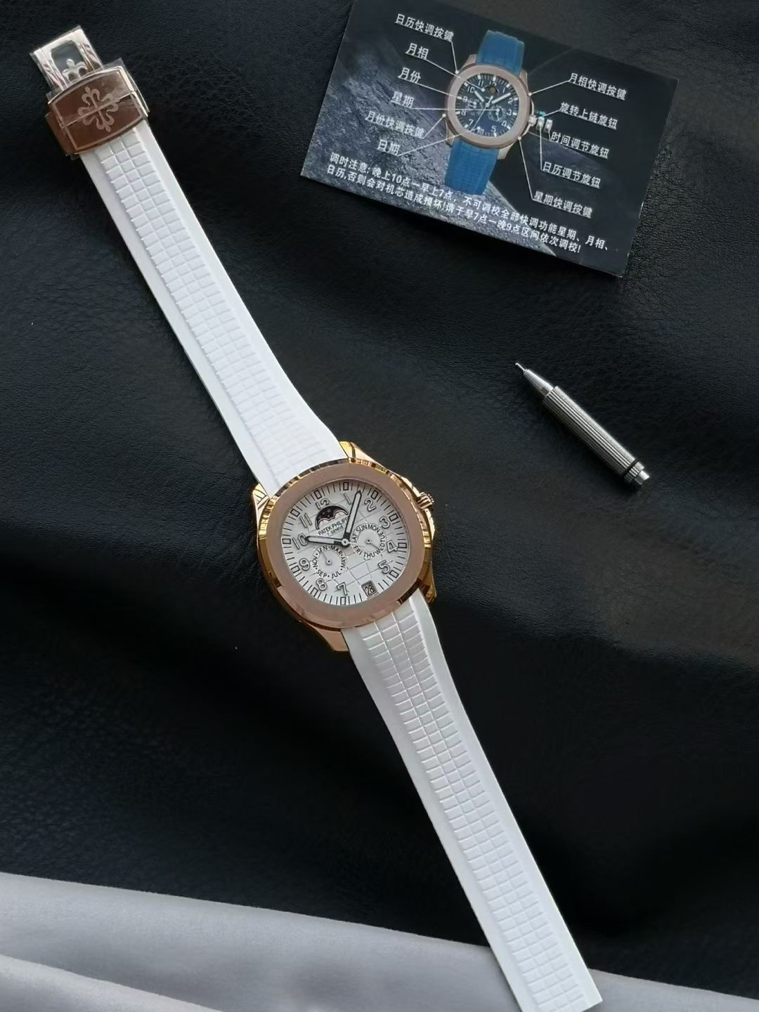 one ️⃣ The original version of the fluororubber strap is molded, comfortable to wear, and suitable for all day use. The customized fluororubber strap is soft and skin friendly, with upgraded wear resistance and durability; Folding clasp with one click adjustment, printed with clear precious metal identification marks on the back of the clasp, and featuring a St. Bernard dog head 🐶 Contour balance ⚖️ identification. Au750 digits PPC logo, sapphire glass, seamless transition between business and leisure, interpreting the wearing philosophy of "elegant and accompanying".