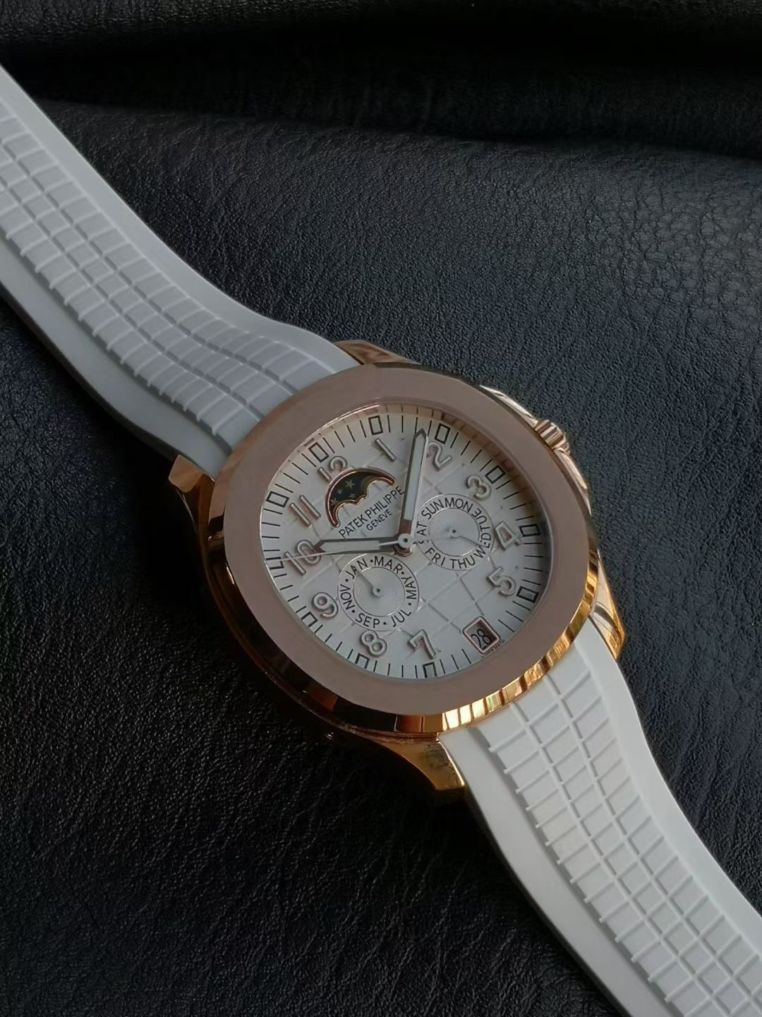 three ️⃣ Intelligent control time: The original four window partition display system (date at 6 o'clock/moon phase at 12 o'clock, week/month at 3/9 o'clock), bidding farewell to the tedious calibration, allows for easy daily wear, and adopts the original PP new double press butterfly buckle,