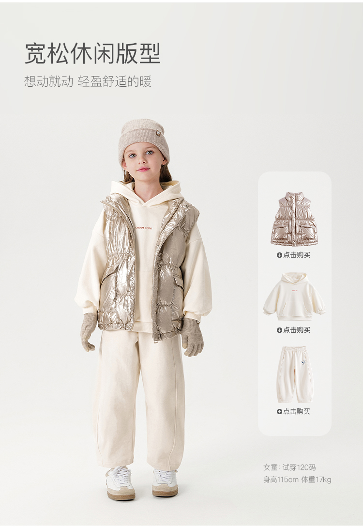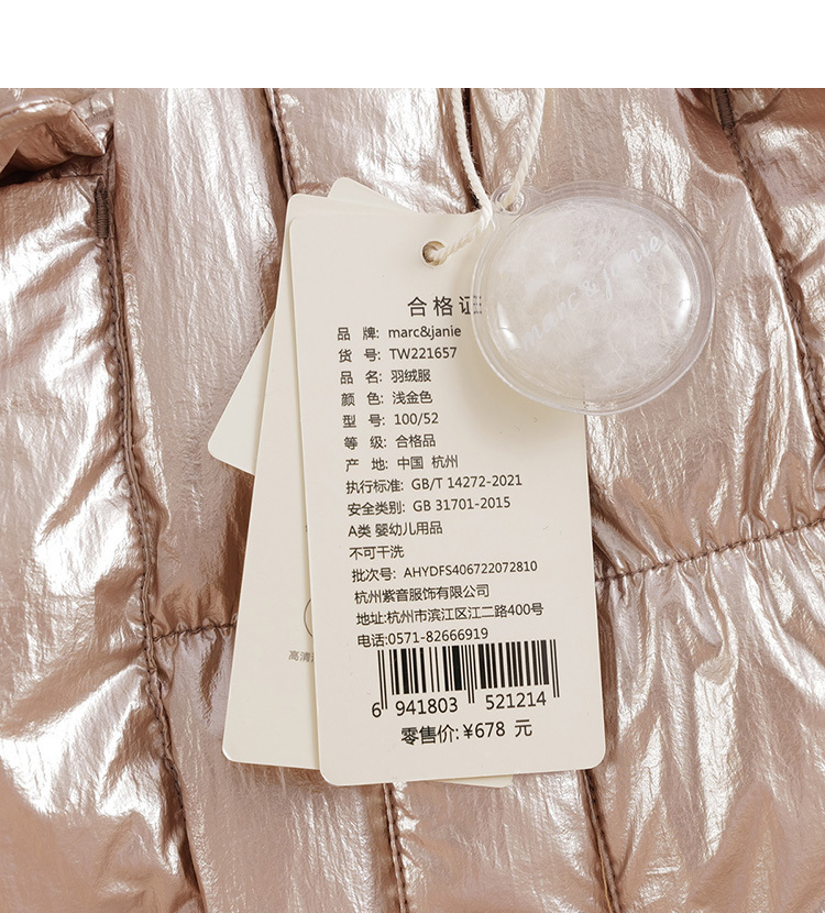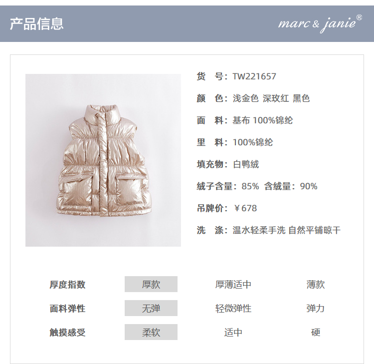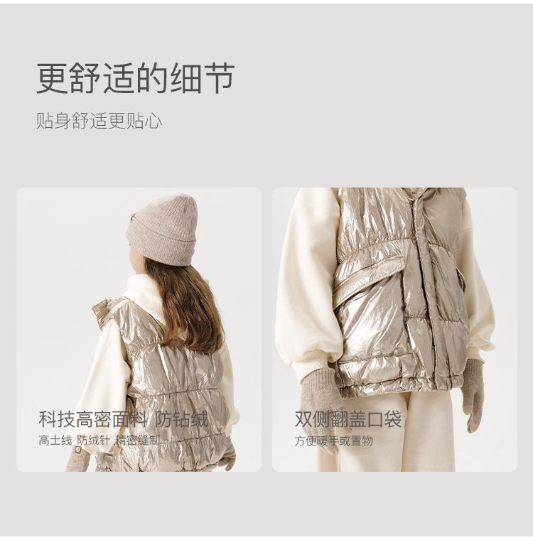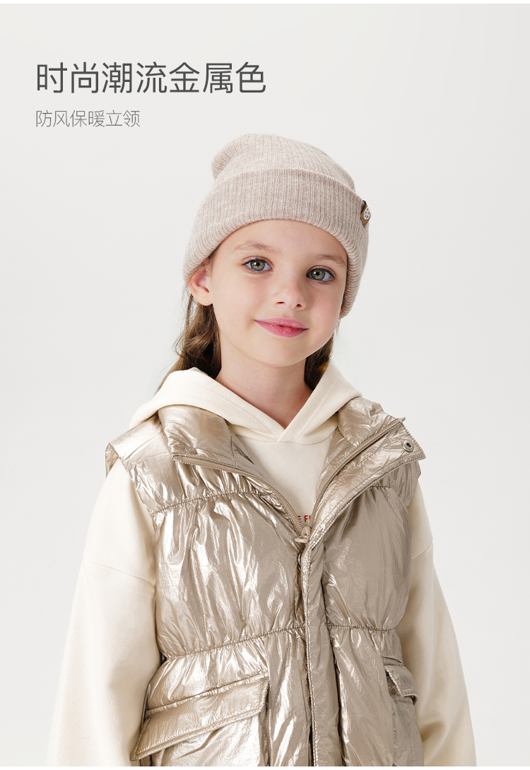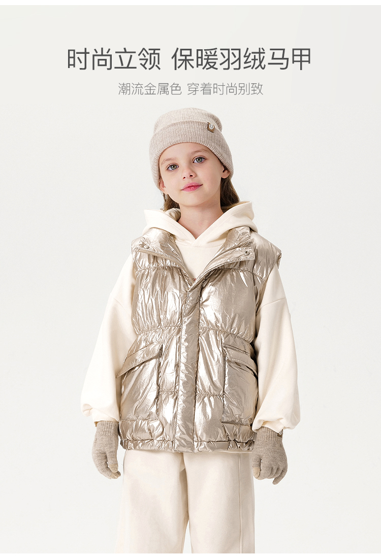 马克珍妮冬装新款 女童金属色立领羽绒马甲221657