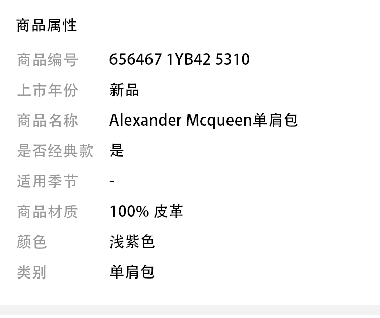 ALEXANDER MCQUEEN 亚历山大.麦昆 女士小牛皮 The Curve 曲线斜挎单肩包 浅紫 656467 1YB42 5310