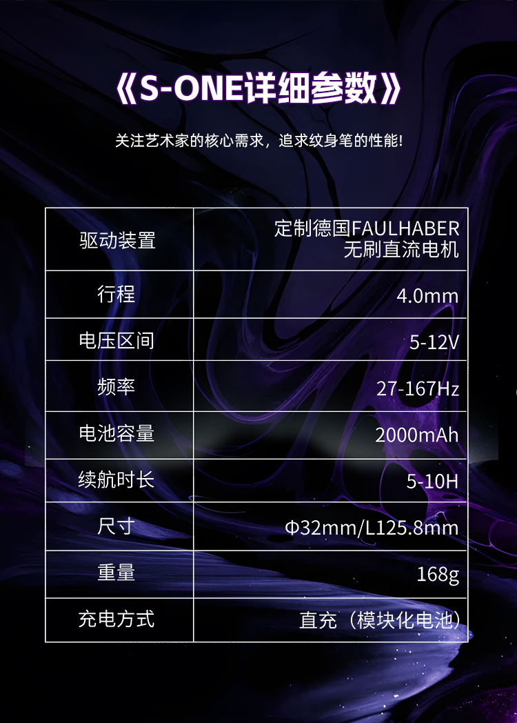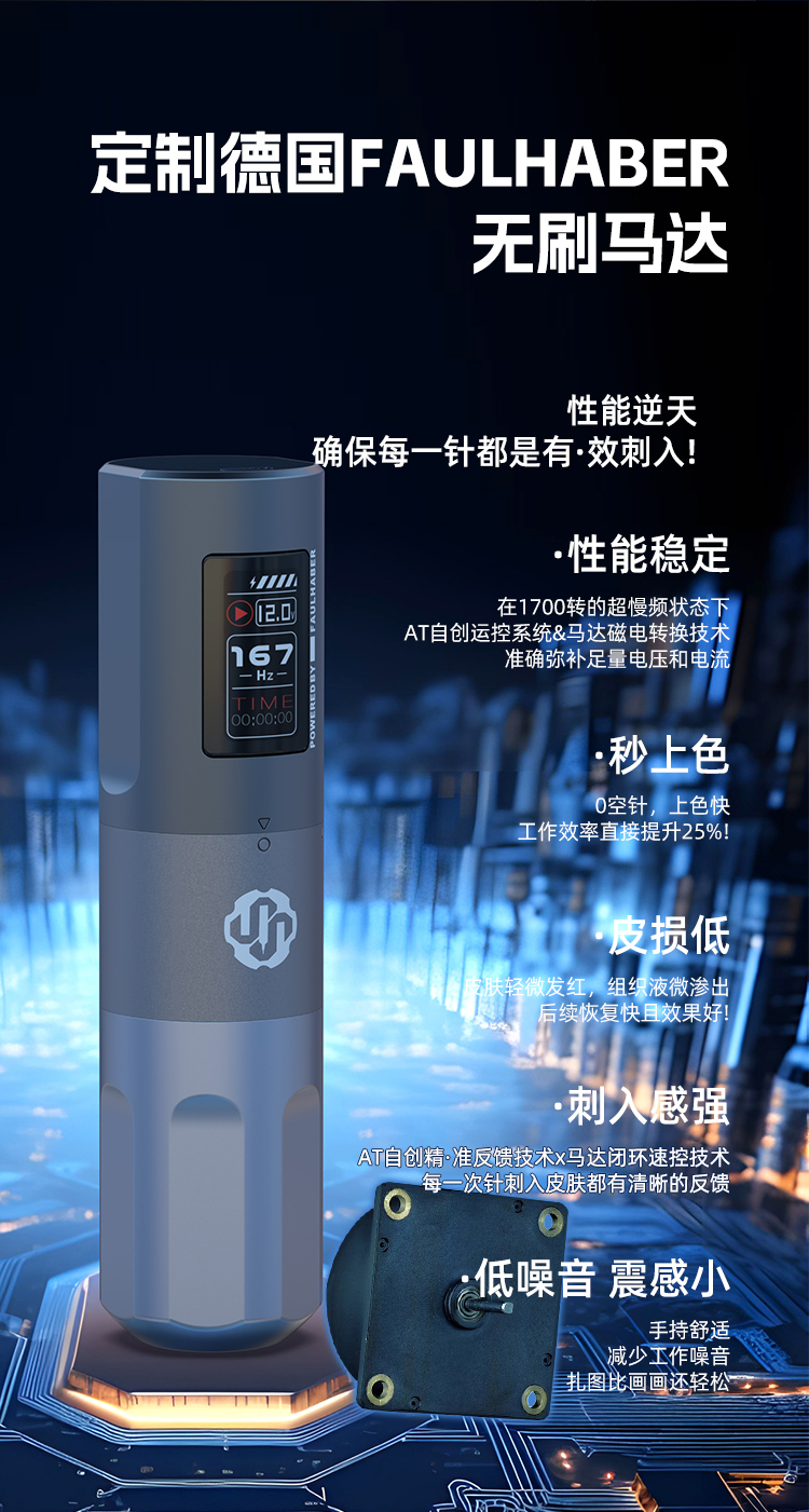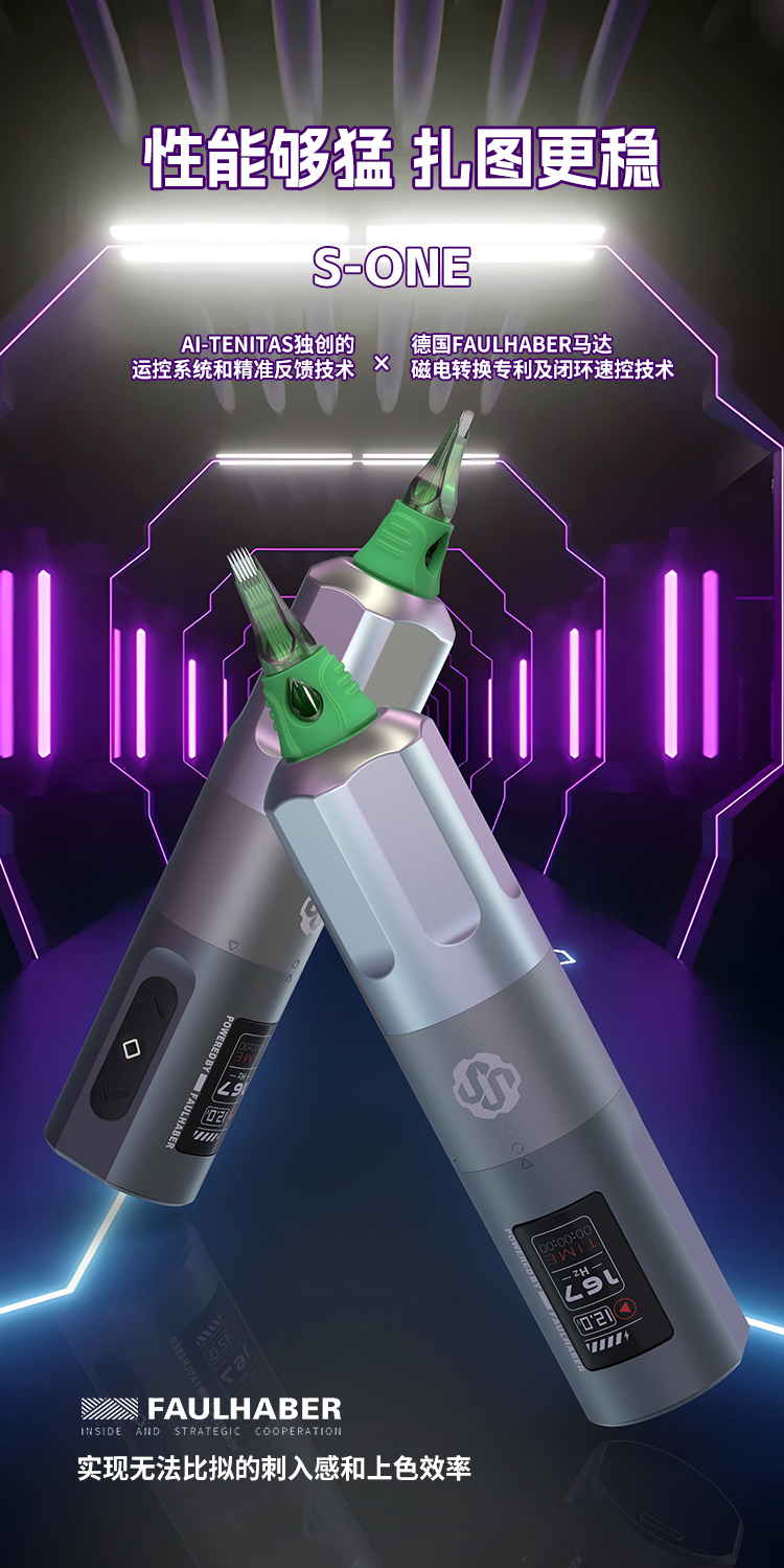AT-S one无线纹身笔4.0行程搭载冯哈勃马达割线打雾一体圆针打雾纹身笔惊蛰刺青器材