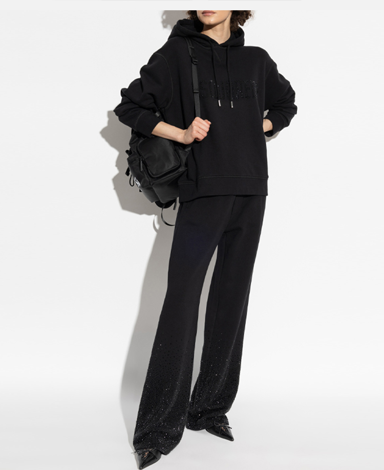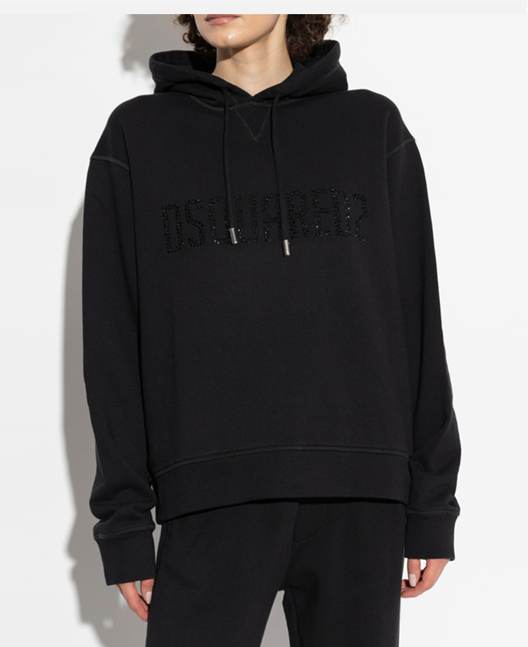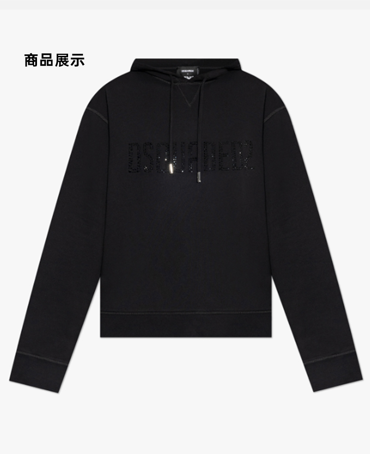 DSQUARED2 女士亮面字母徽标棉质连帽卫衣 黑色 S72GU0463 S25516 900
