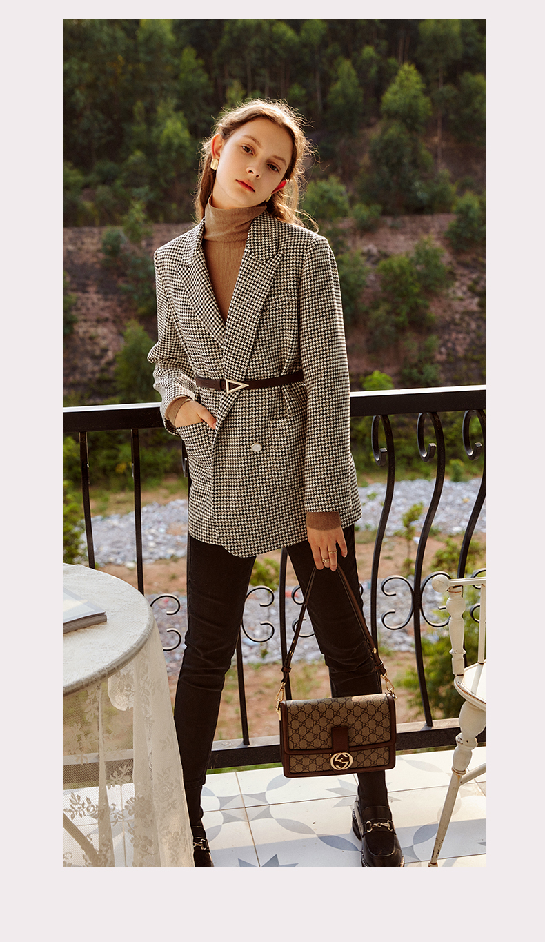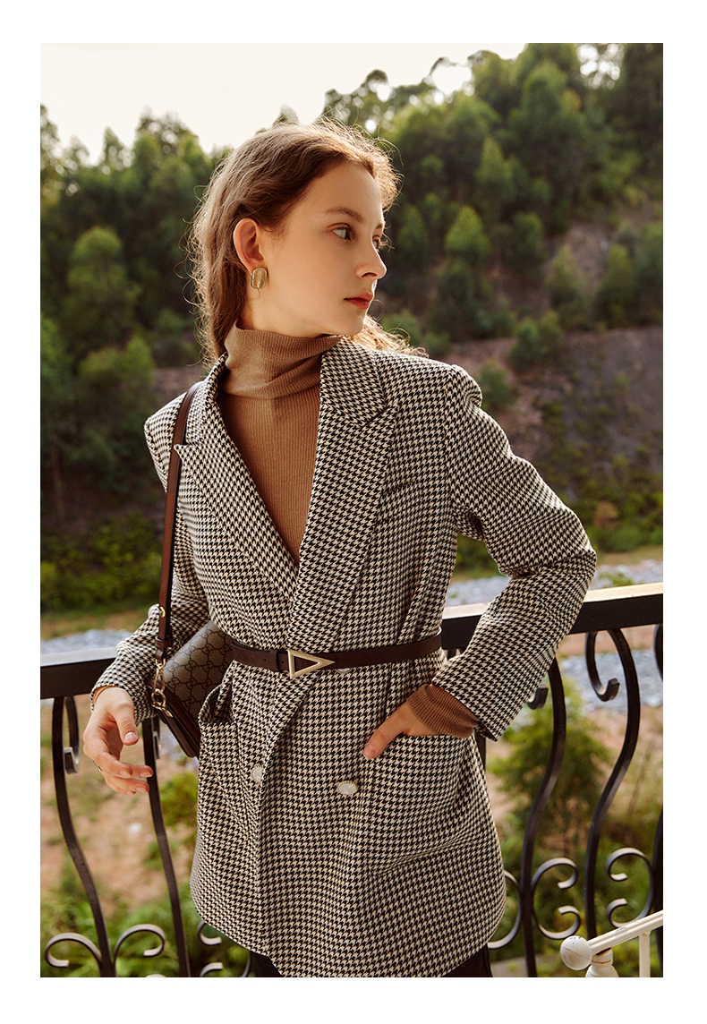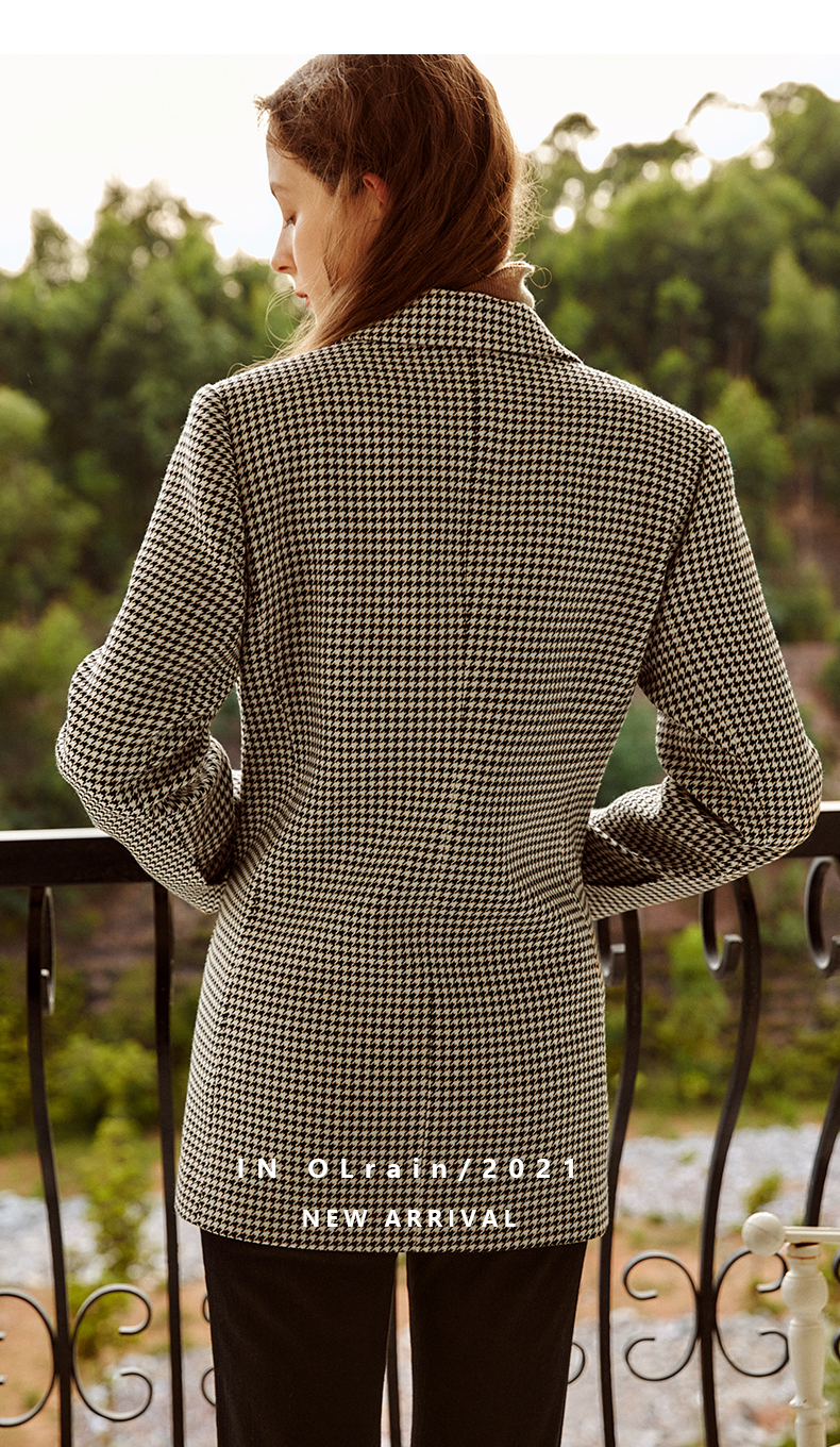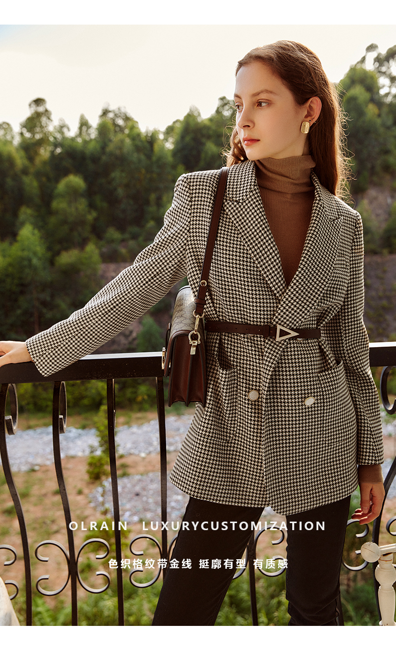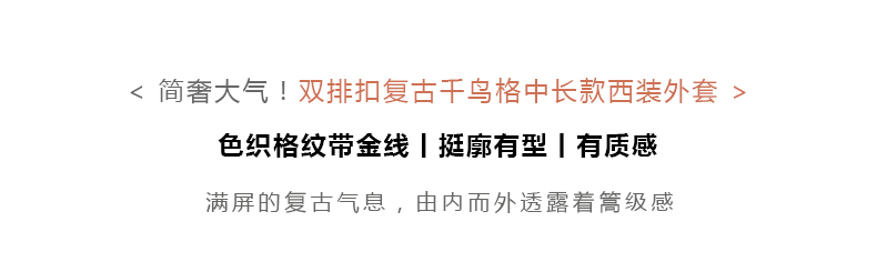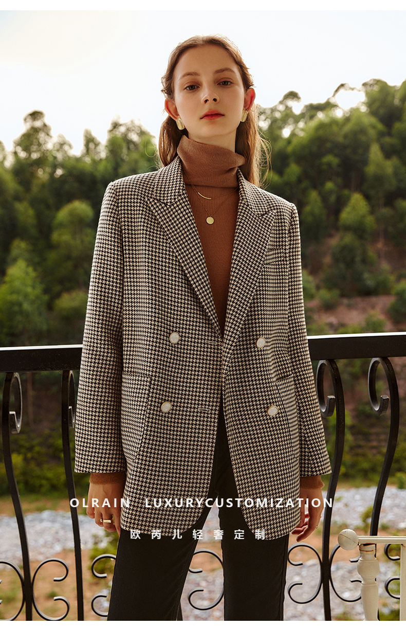 欧芮儿千鸟格外套女春季新款2022宽松显瘦时尚休闲中长款西装大衣
