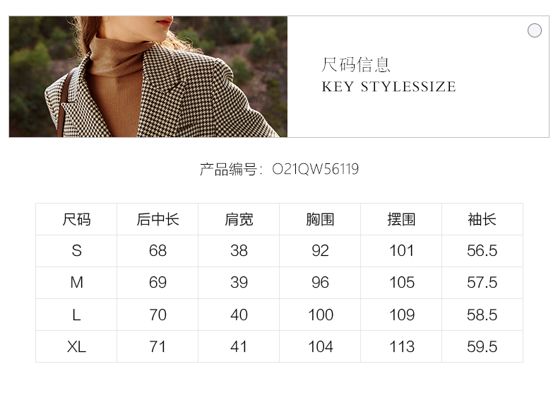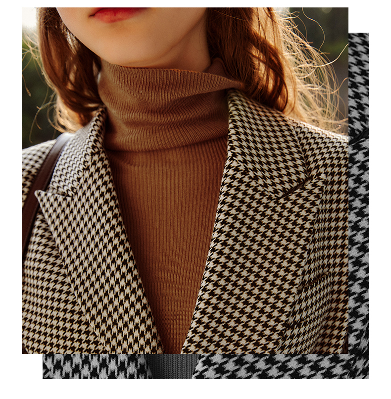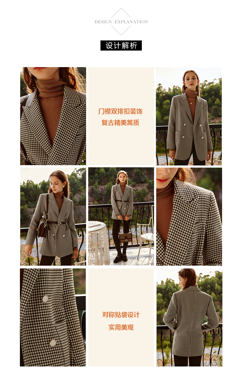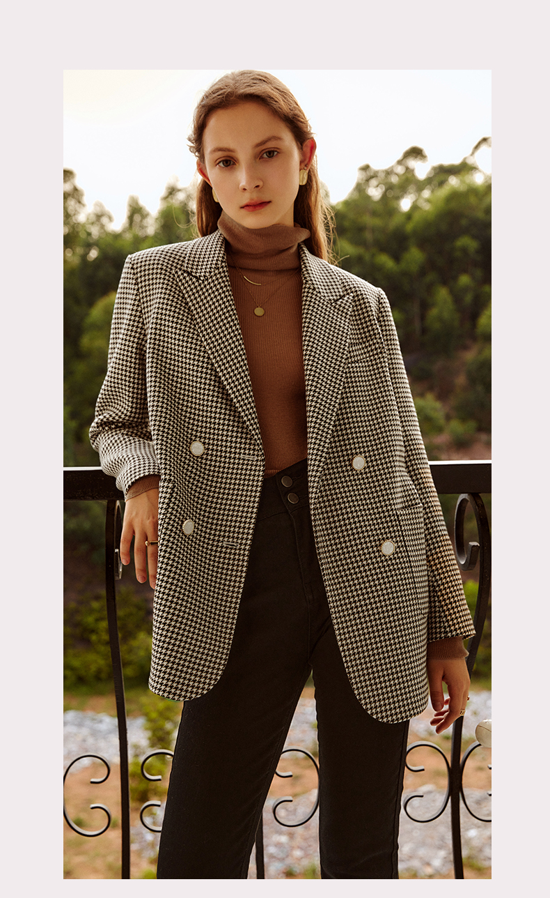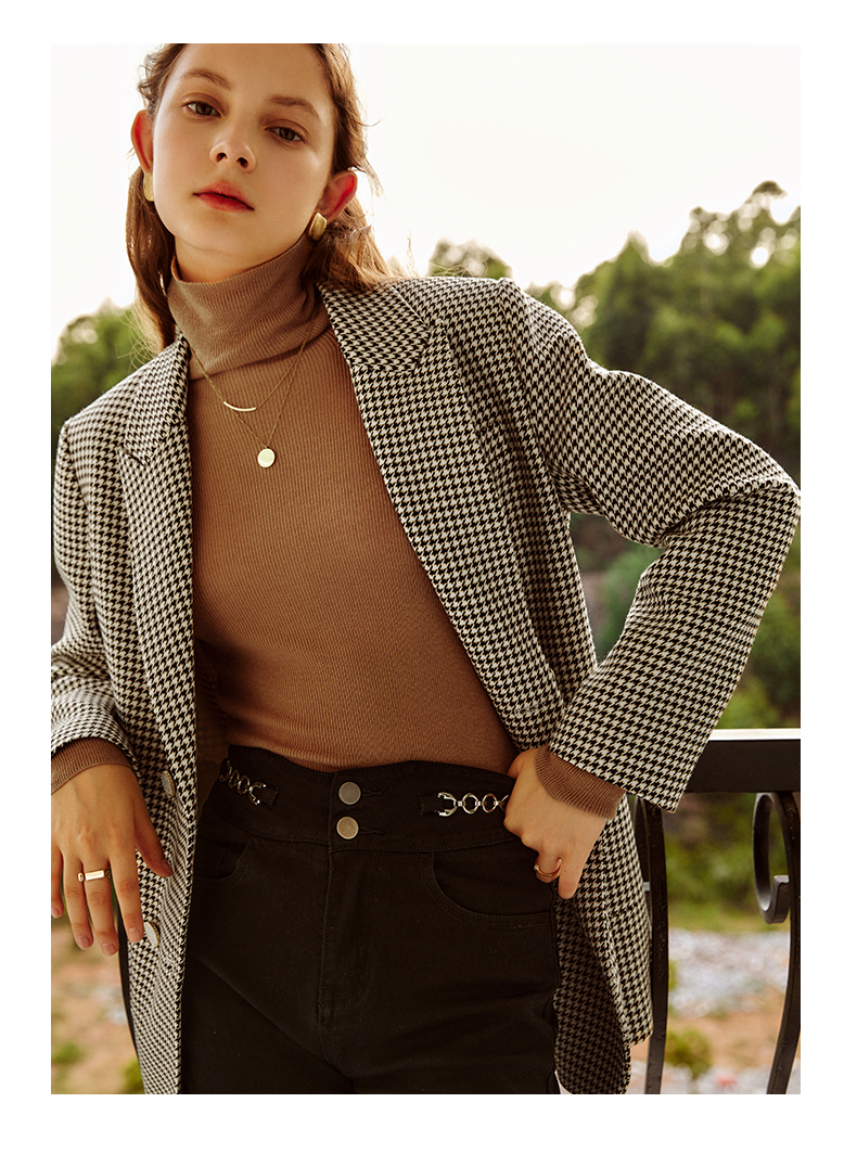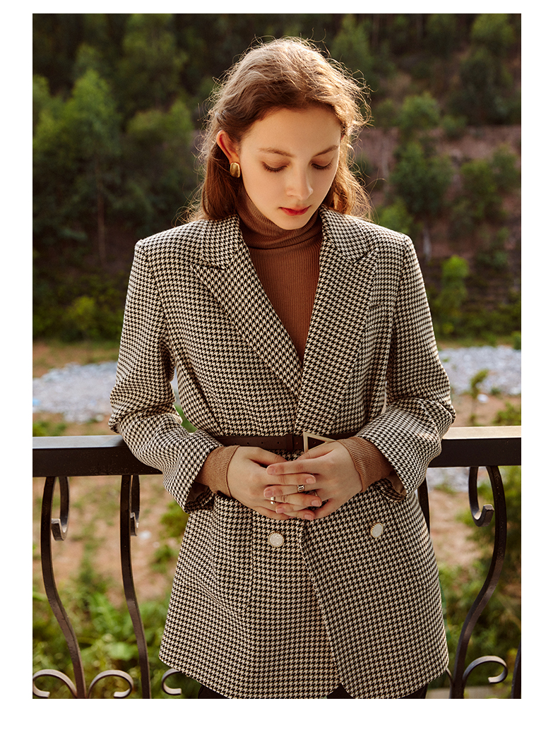 欧芮儿千鸟格外套女春季新款2022宽松显瘦时尚休闲中长款西装大衣