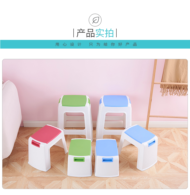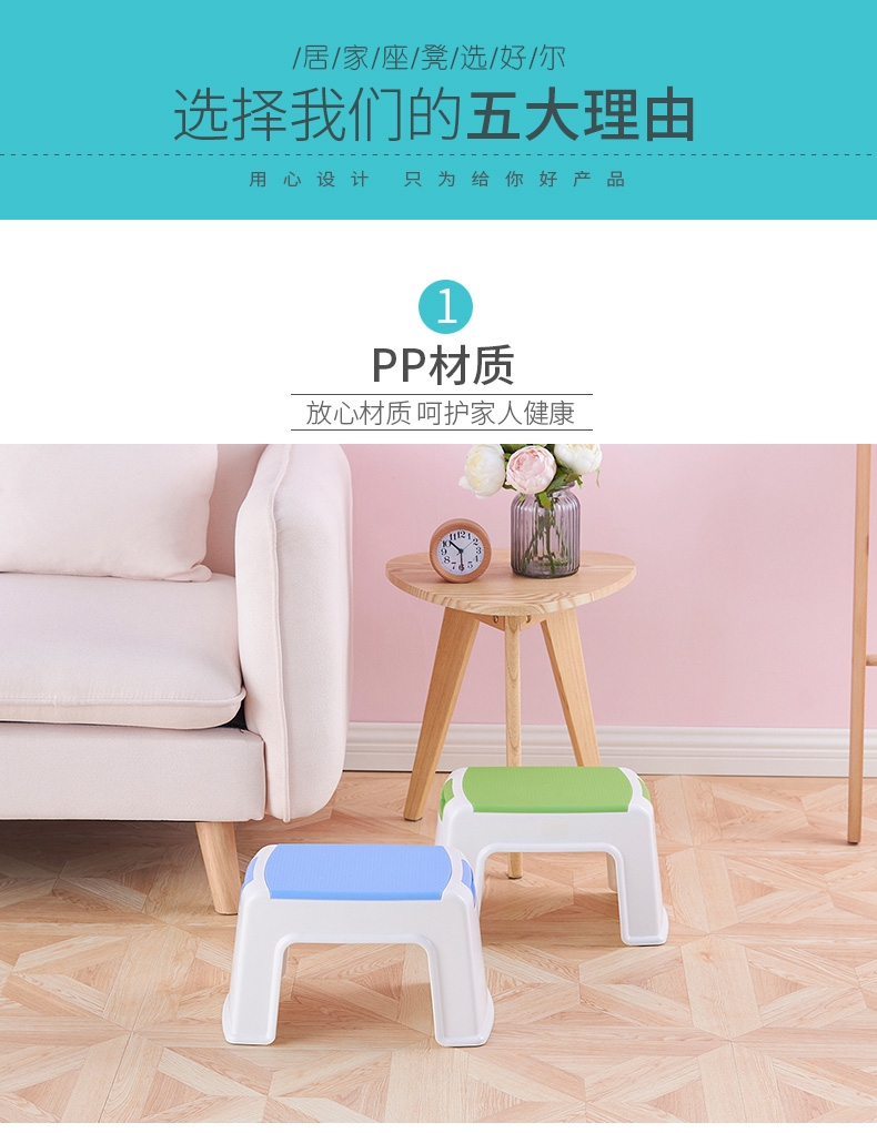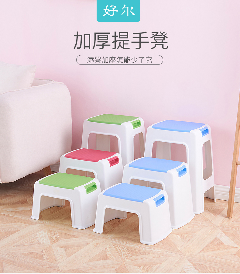 好尔(Hore)凳子 板凳 小凳子 塑料凳子带提手小号蓝色 1个装