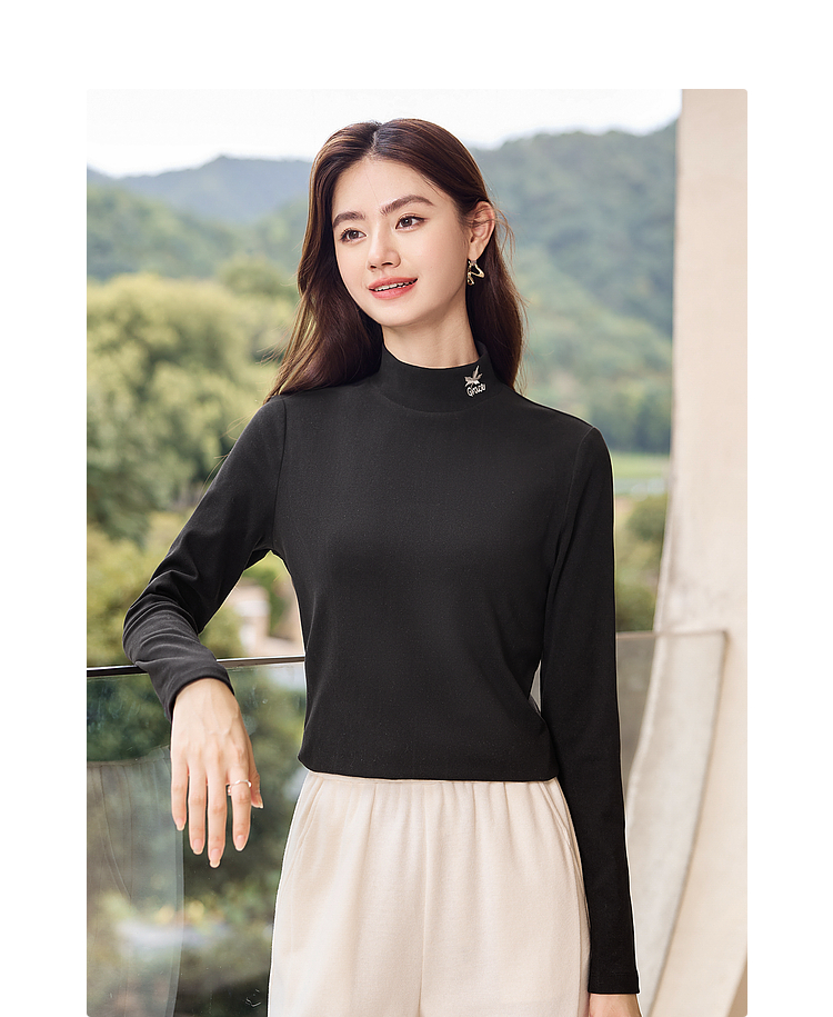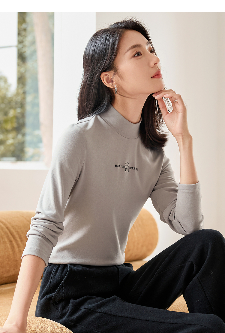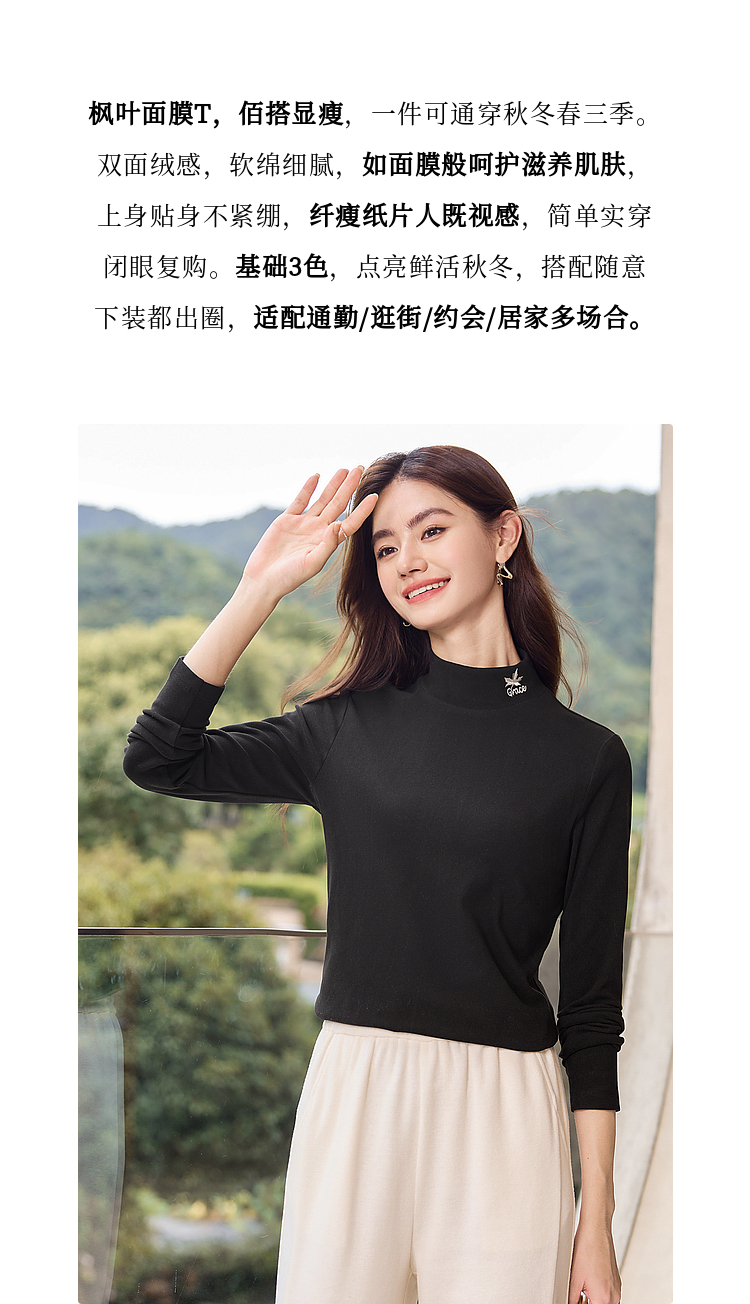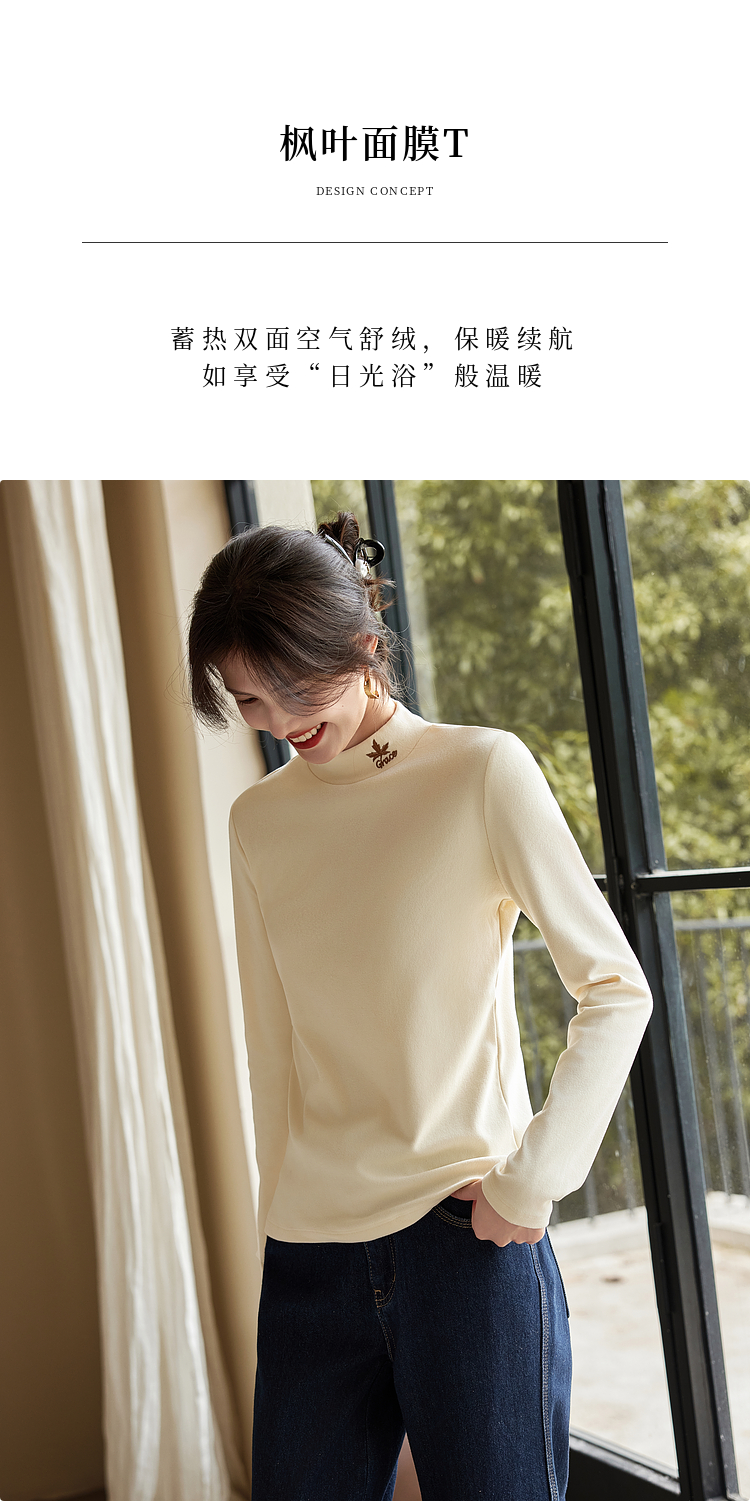 【年终特卖】熙世界【黑科技德绒】双面绒半高领打底衫女秋冬新款内搭T恤上衣