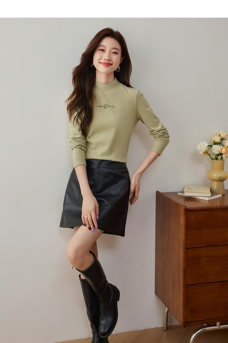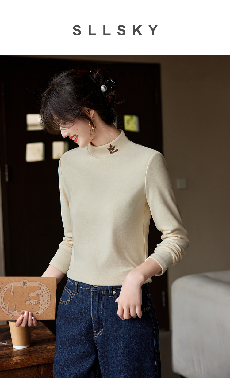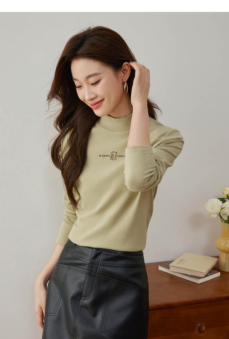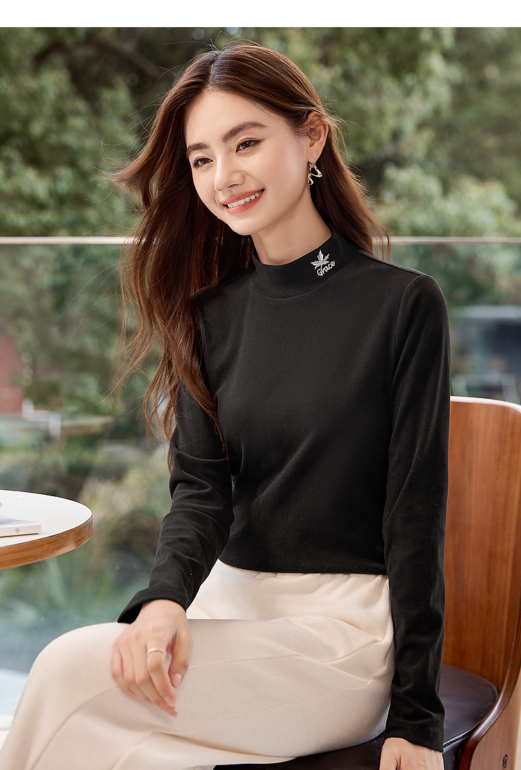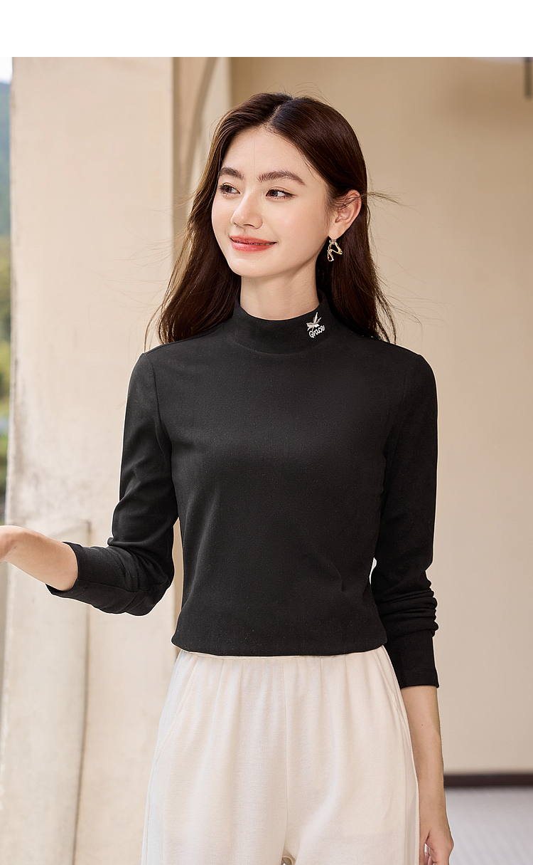 【年终特卖】熙世界【黑科技德绒】双面绒半高领打底衫女秋冬新款内搭T恤上衣