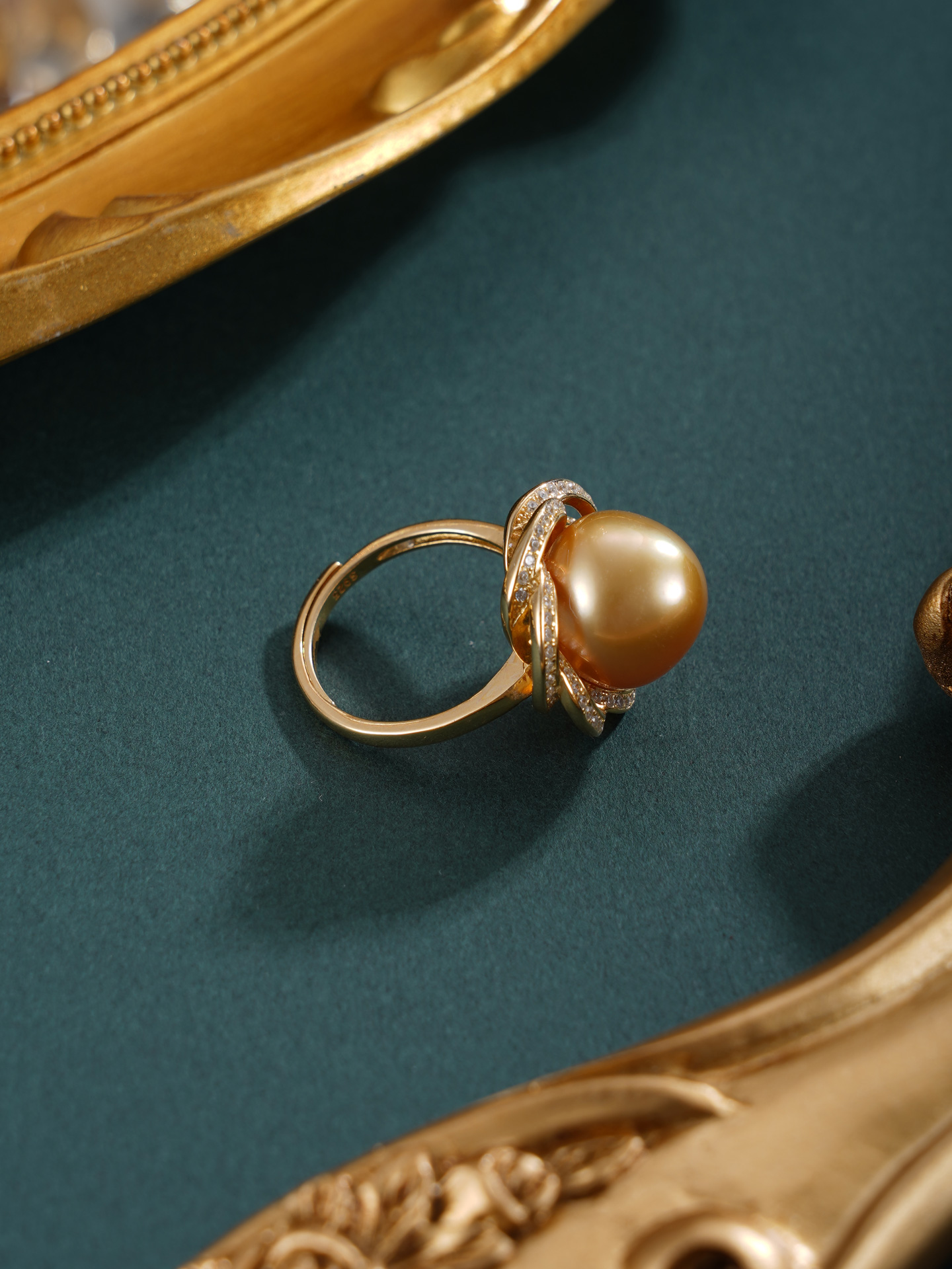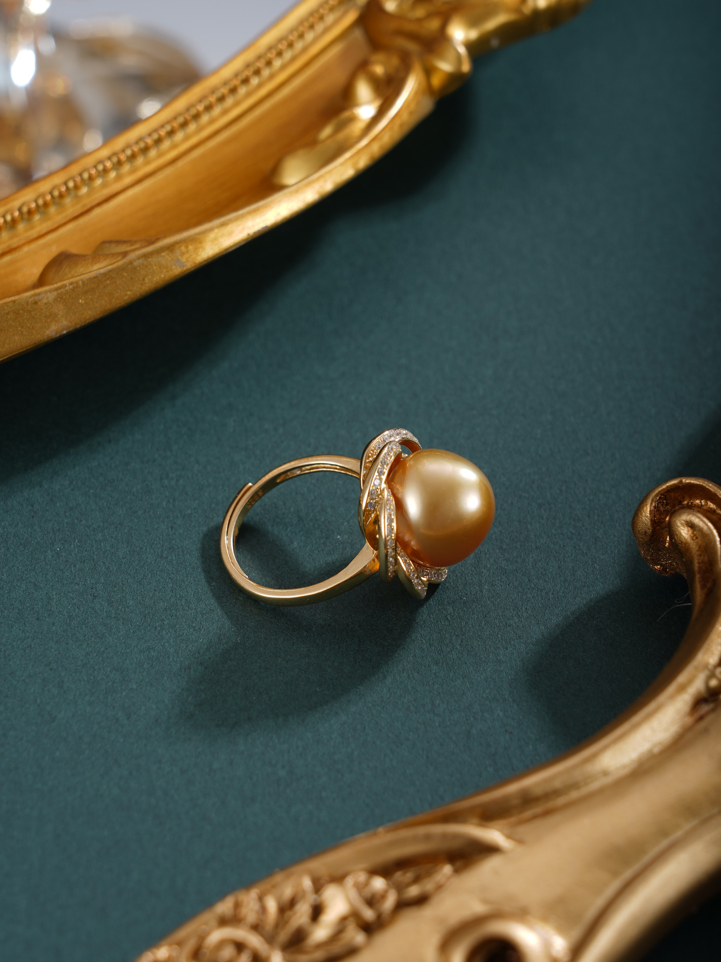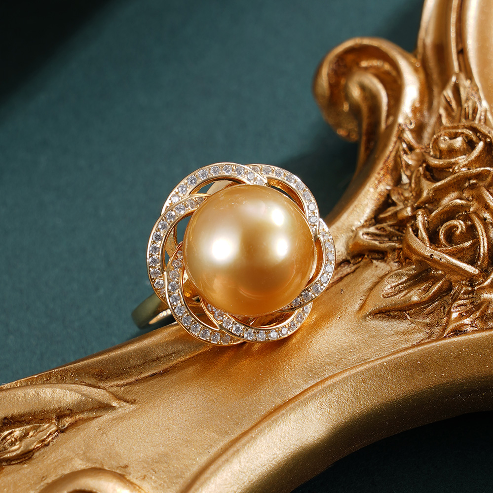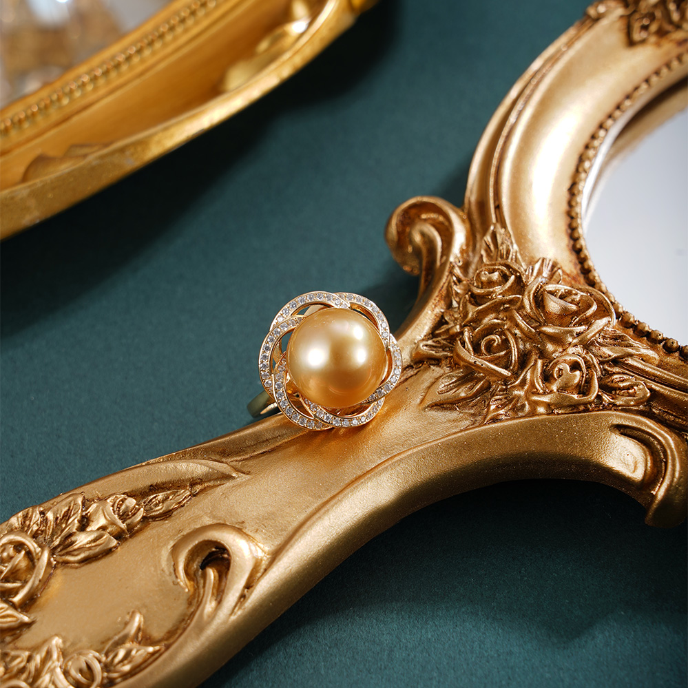 子佩集【芳华倾心】银S925珍珠惜王妃戒指【HJYJZ012】13mm珠镀金花绕花朵金色珠2601