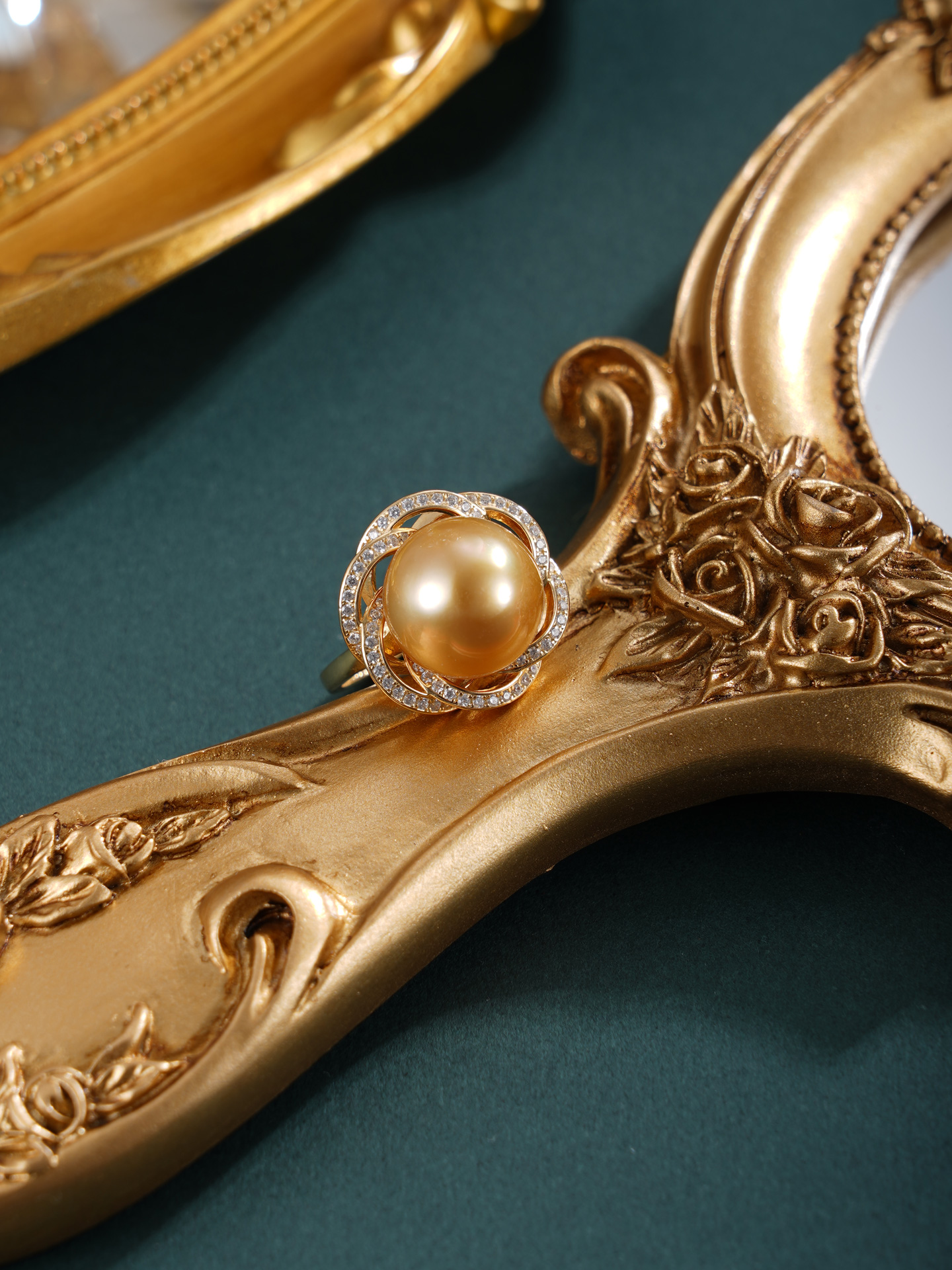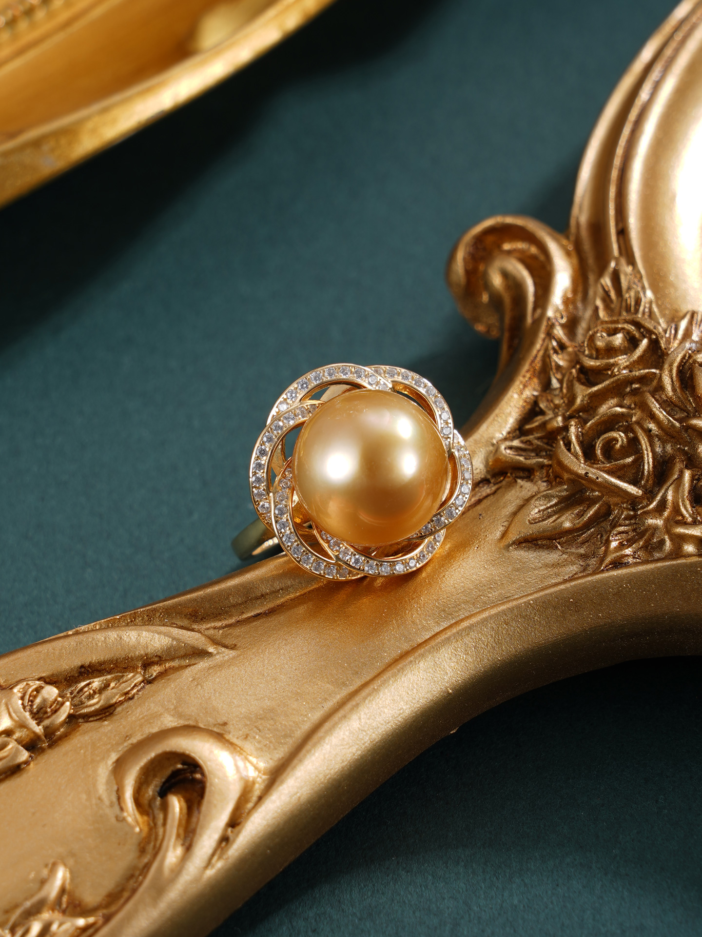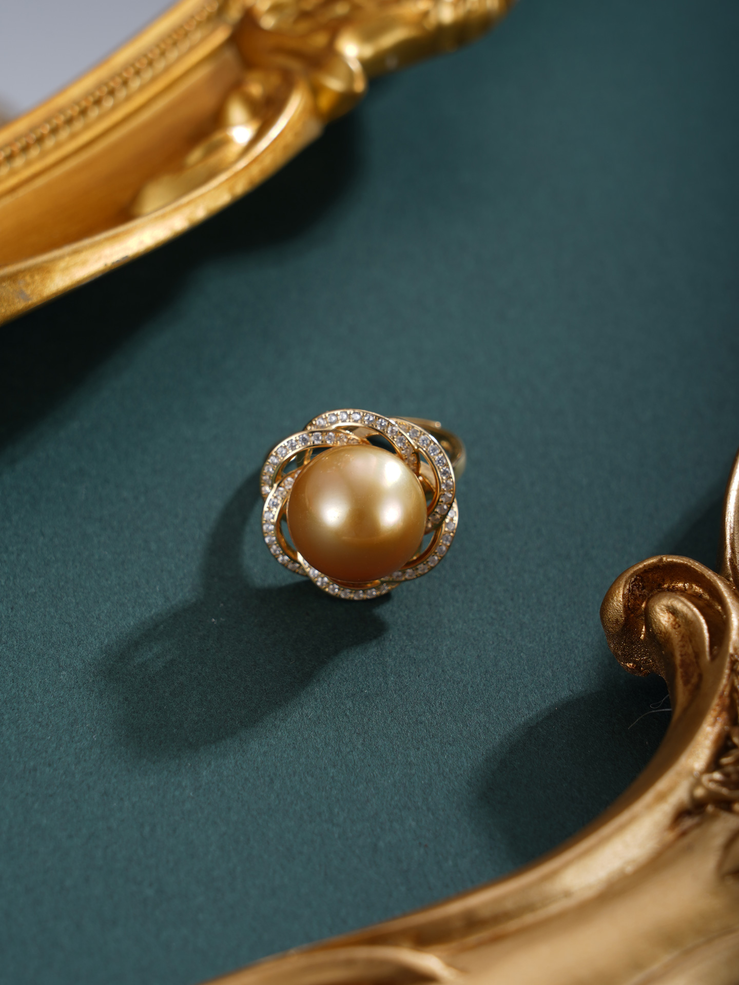 子佩集【芳华倾心】银S925珍珠惜王妃戒指【HJYJZ012】13mm珠镀金花绕花朵金色珠2601