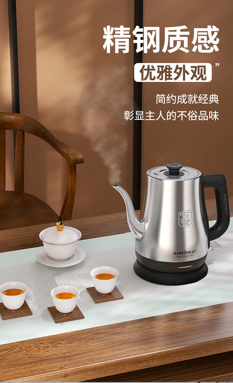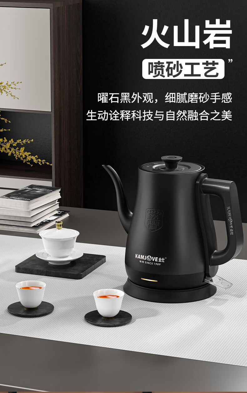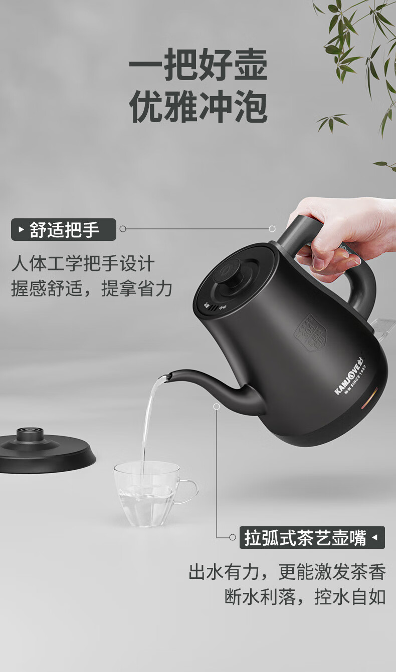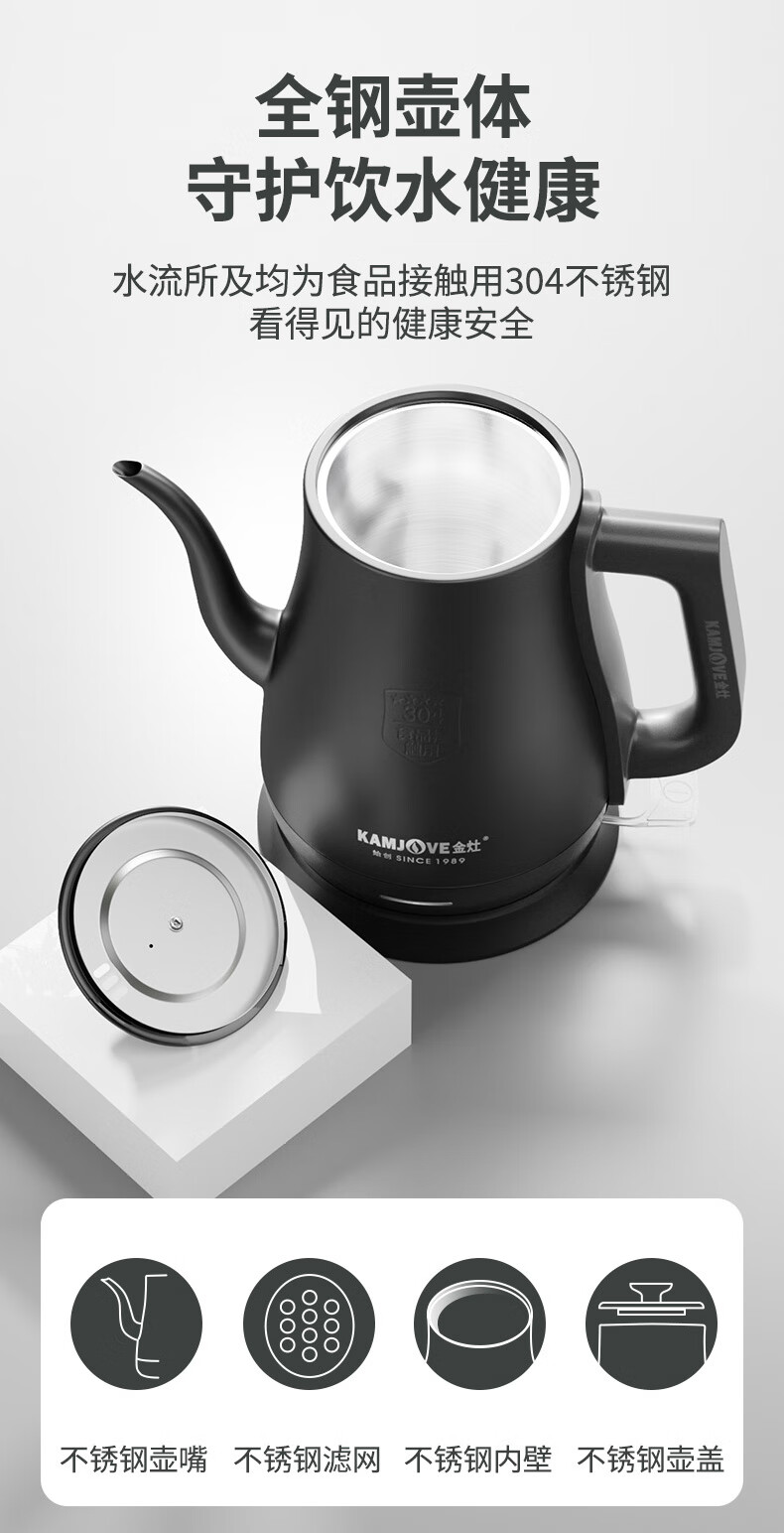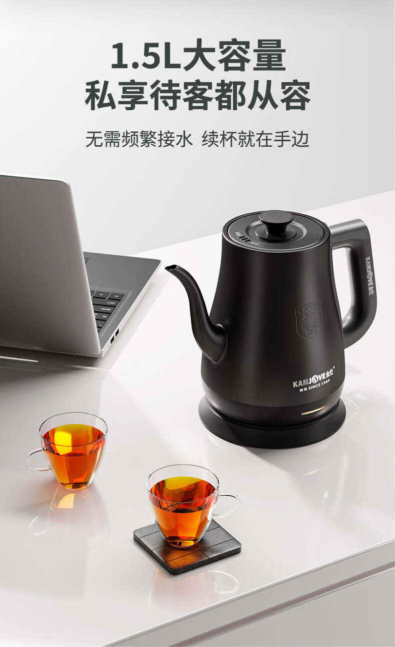 金灶(KAMJOVE)茶艺专用电热水壶长嘴烧水壶家用1.5L大容量电水壶开水壶 T-94 黑色