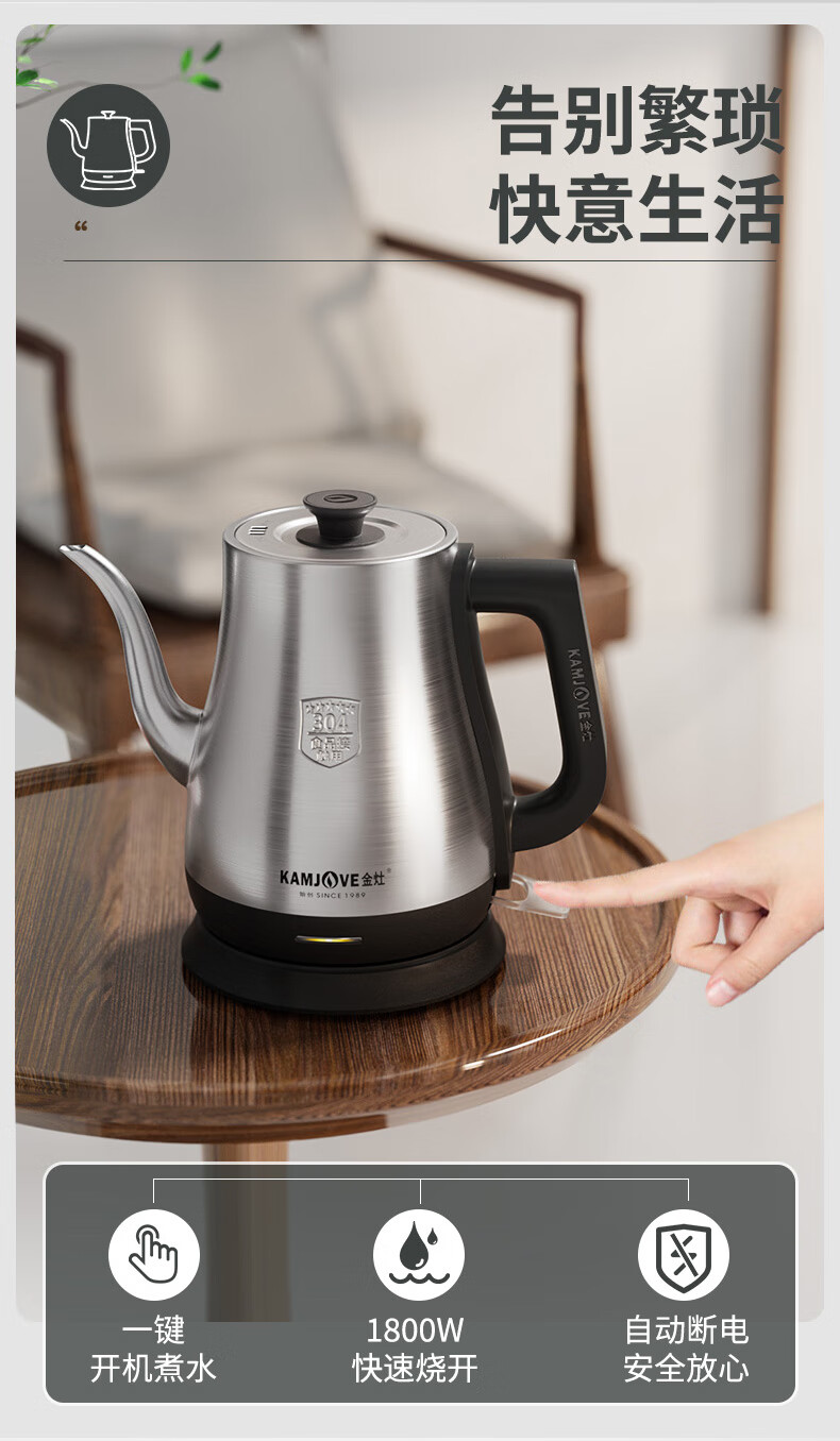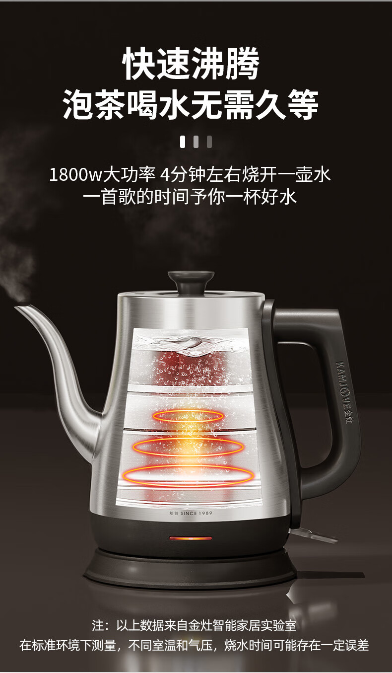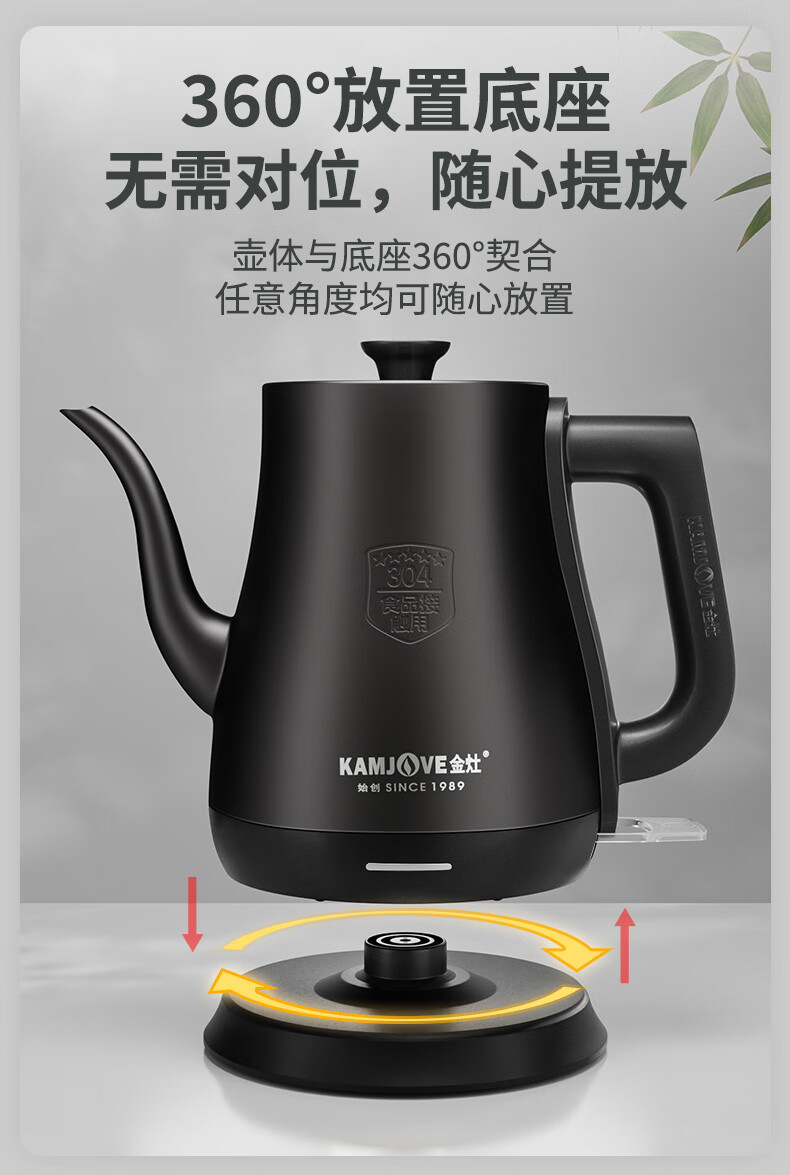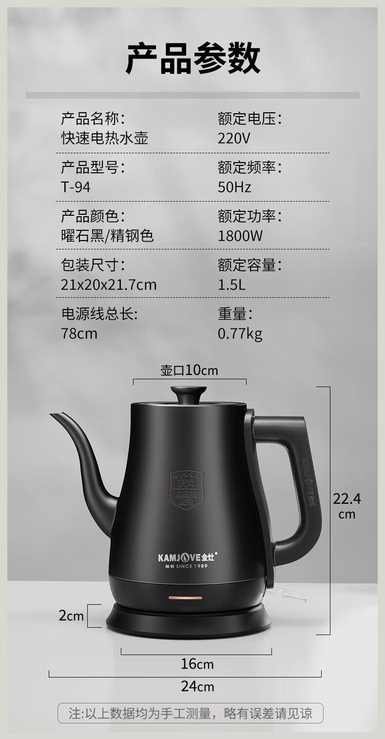 金灶(KAMJOVE)茶艺专用电热水壶长嘴烧水壶家用1.5L大容量电水壶开水壶 T-94 黑色
