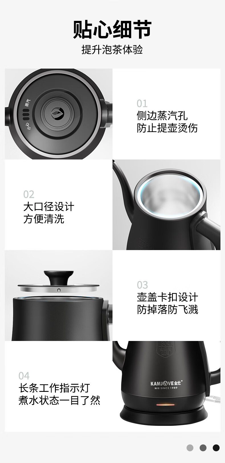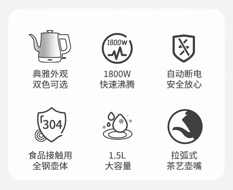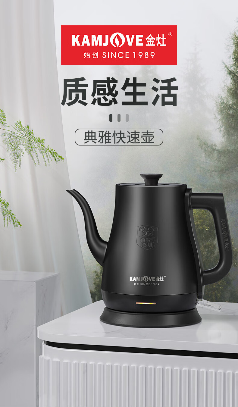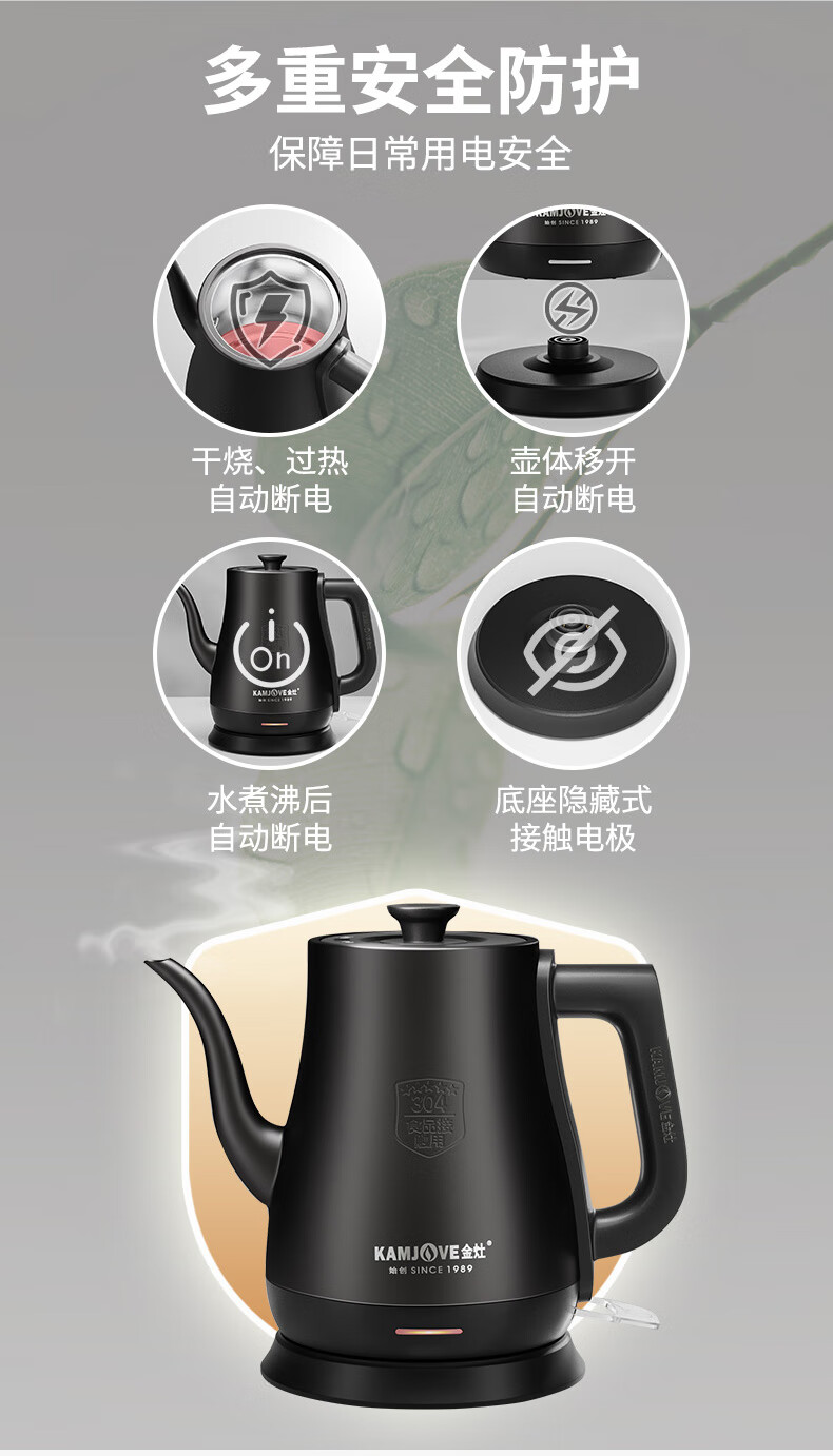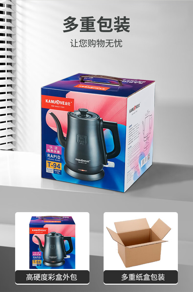 金灶(KAMJOVE)茶艺专用电热水壶长嘴烧水壶家用1.5L大容量电水壶开水壶 T-94 黑色