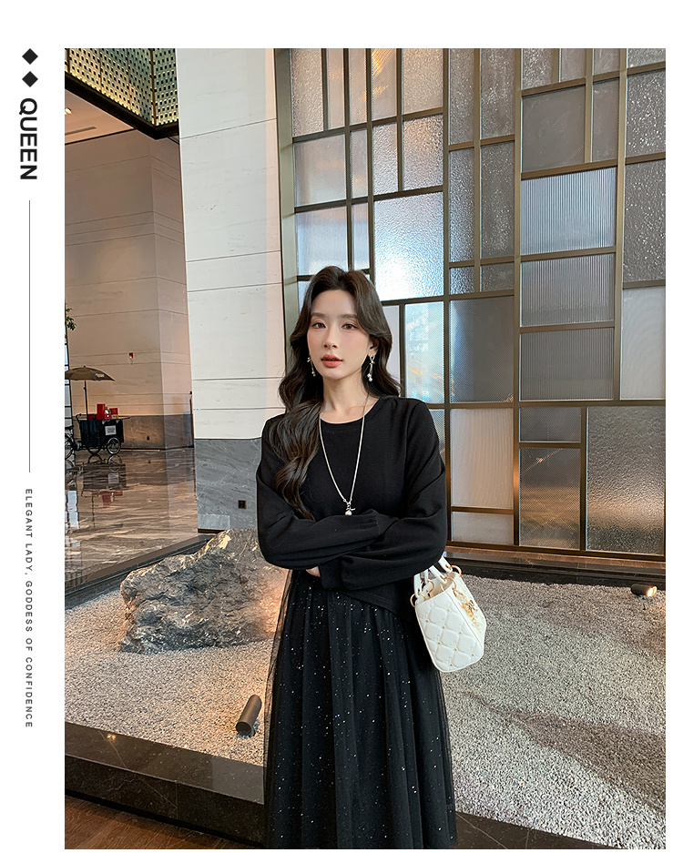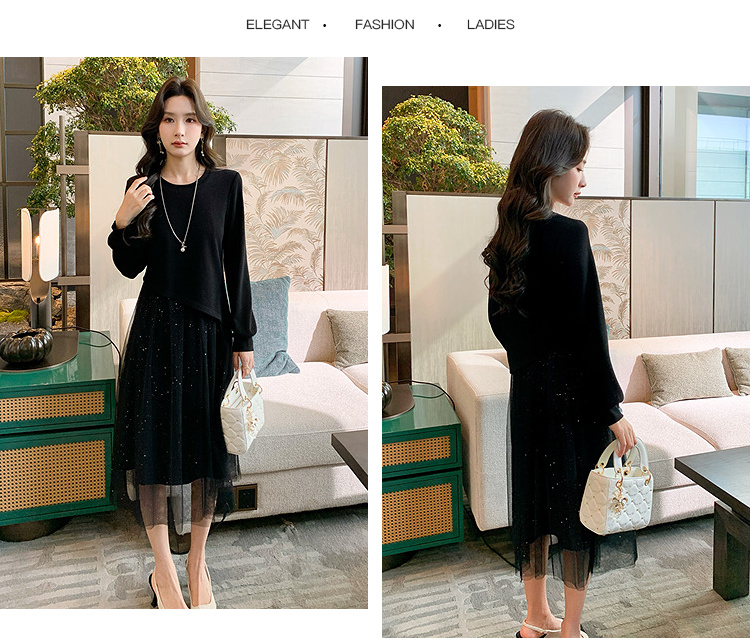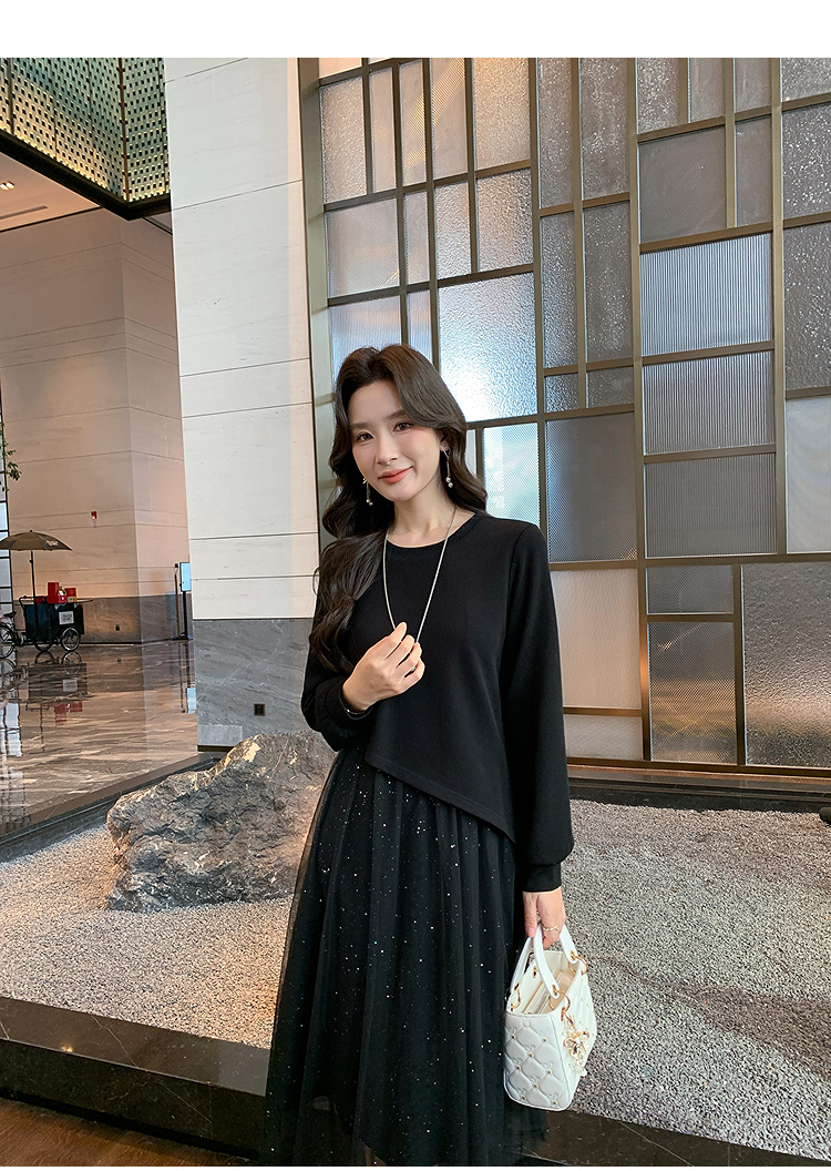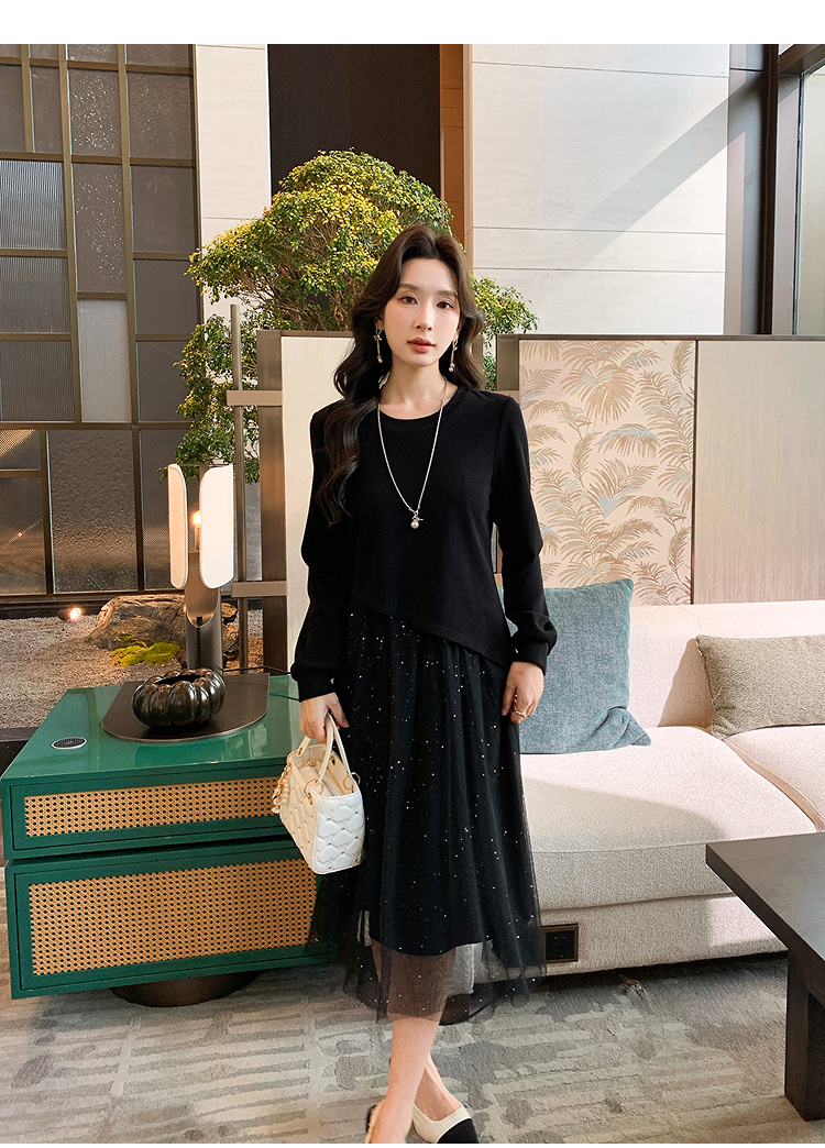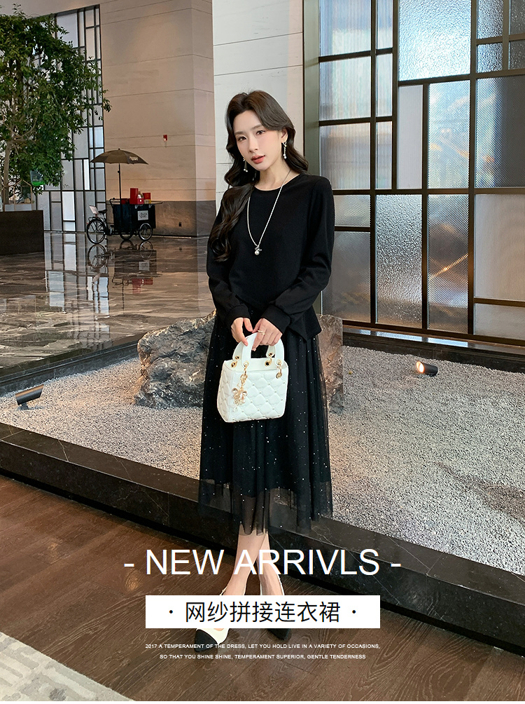 奢姿大码女装2025秋季气质网纱拼接假两件裙子胖妹妹时尚连衣裙9944891823