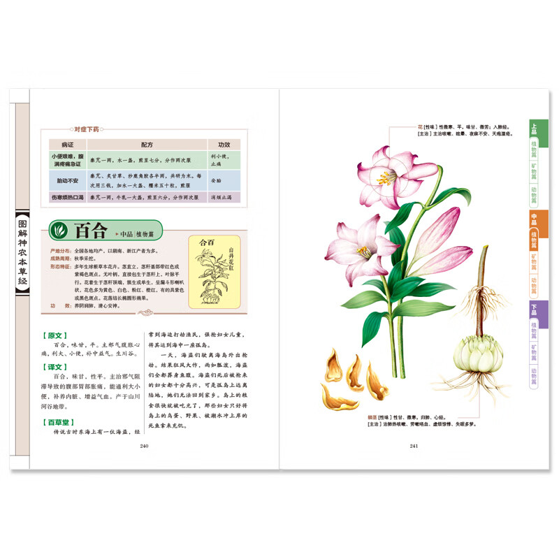 本书为大众科普版本,内容结构上除了对原文翻译并对药物性状进行简单描述,还穿插了一些中药的传说和小故事,以使读者在了解知识的同时,更能获得文学性和趣味性的阅读体验。由于编者的认识水平有限,如有解释不当之处,还望大家见谅。另外,本书内容仅供对健康或传统中医药感兴趣的读者朋友们学习参考,所涉及药物还请在专业医生的临床指导下使用。