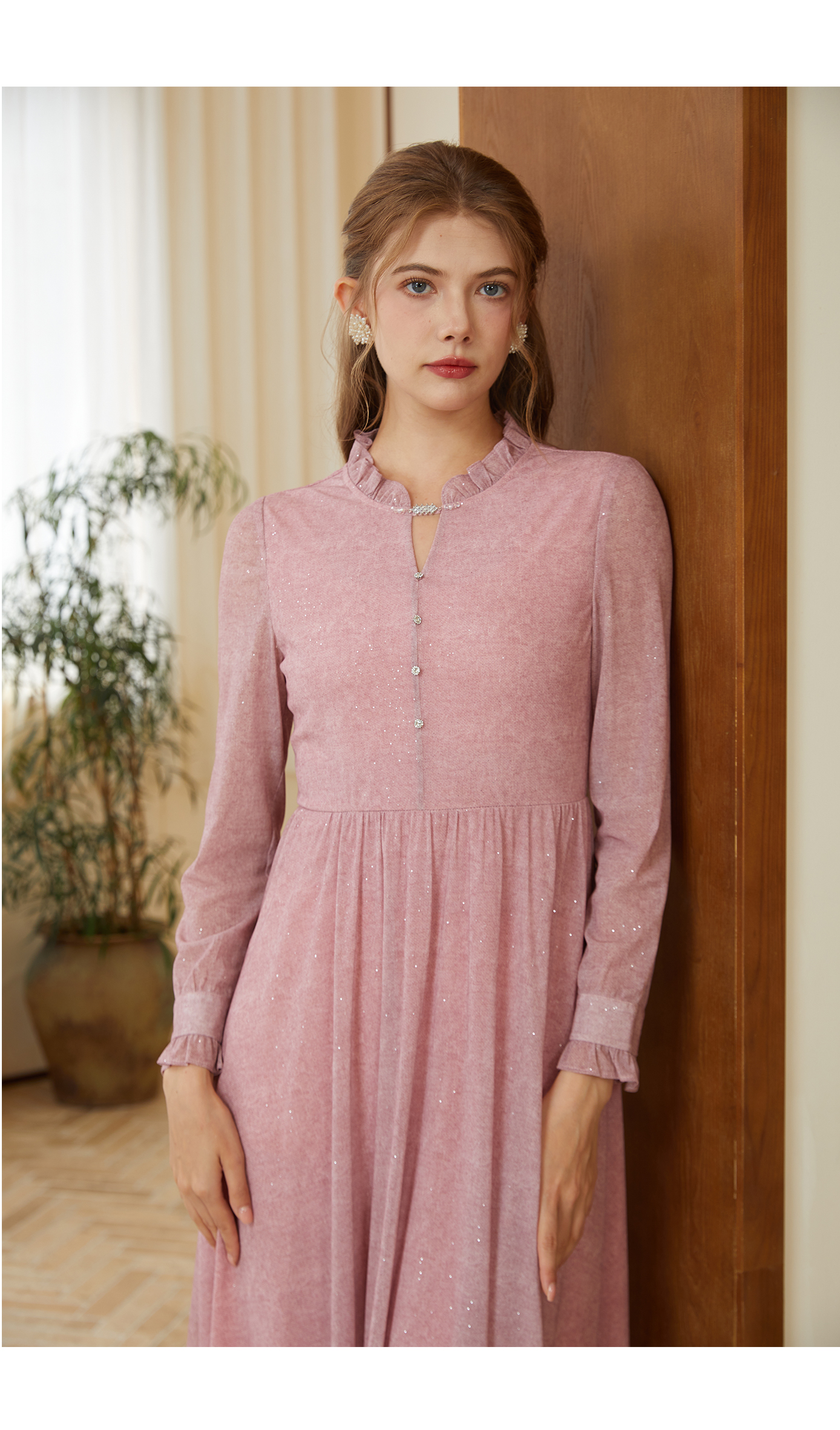 司歌长袖收腰弹力长袖秋连衣裙中长裙A921255X