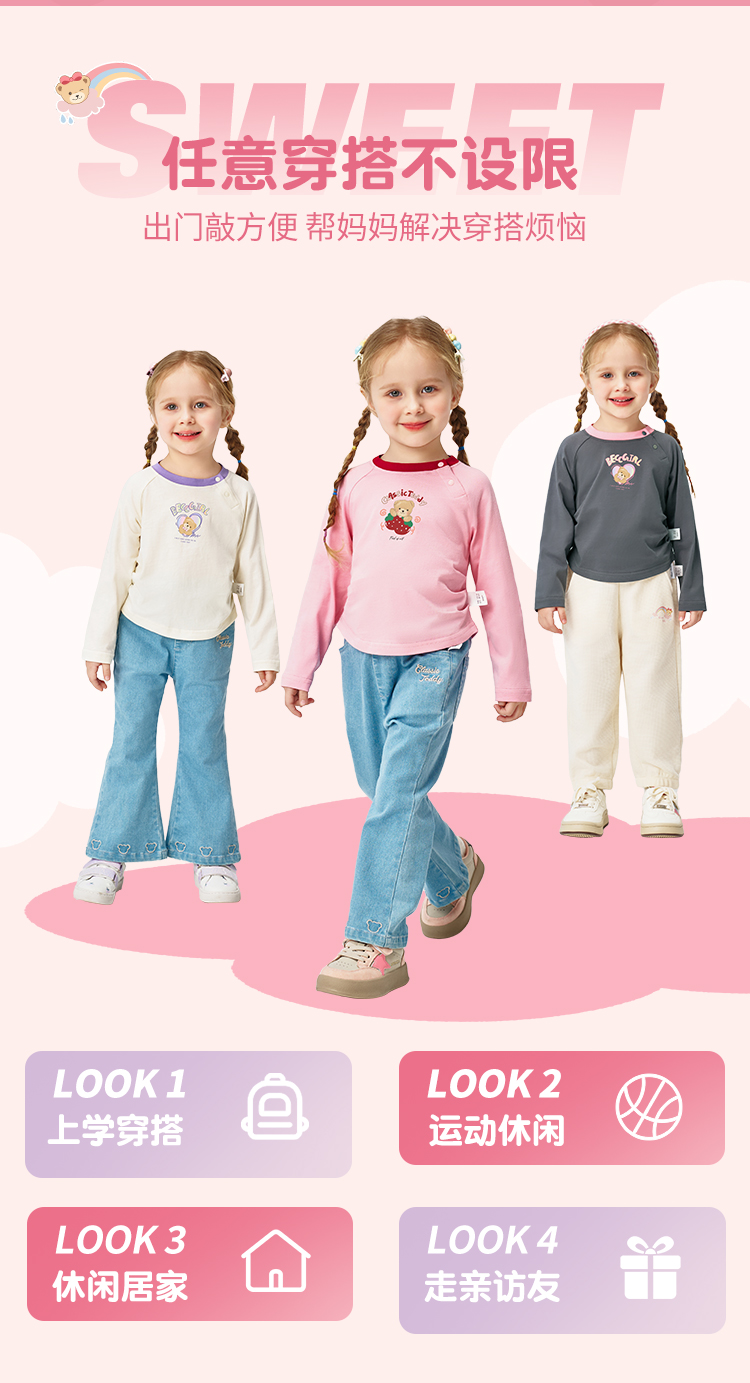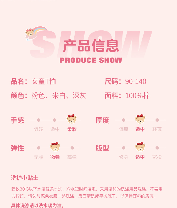 【90-140】【纯棉】【精典泰迪】女童春秋长袖T恤