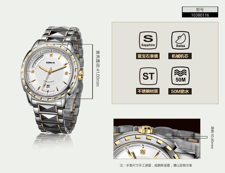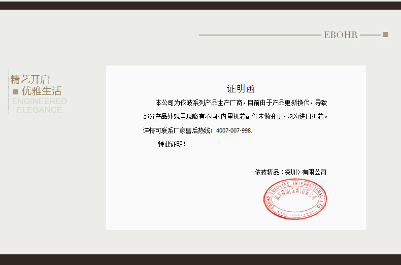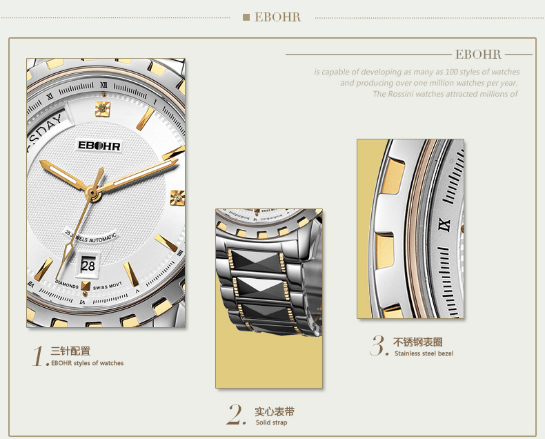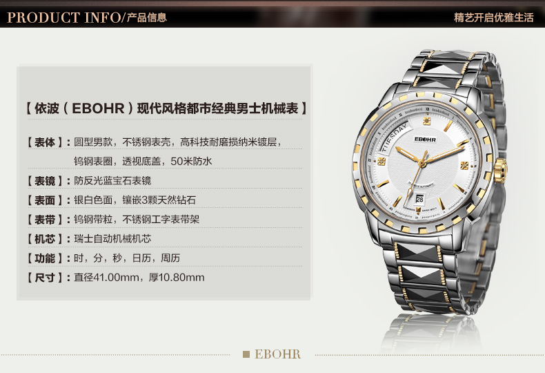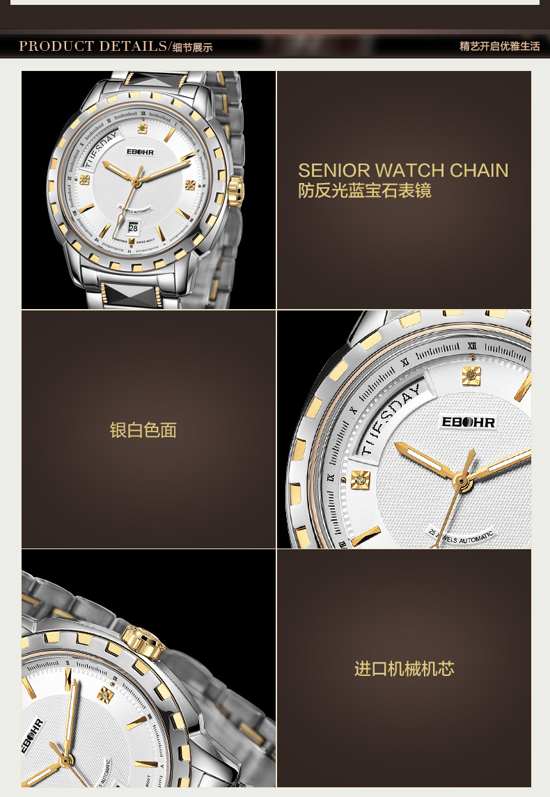 依波表EBOHR 专柜同款现代风格经典男士机械表1038