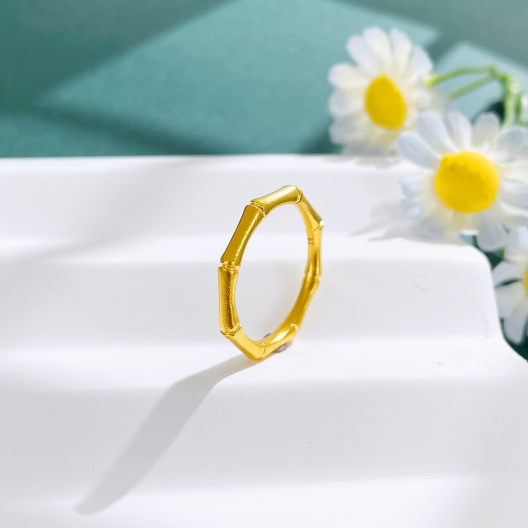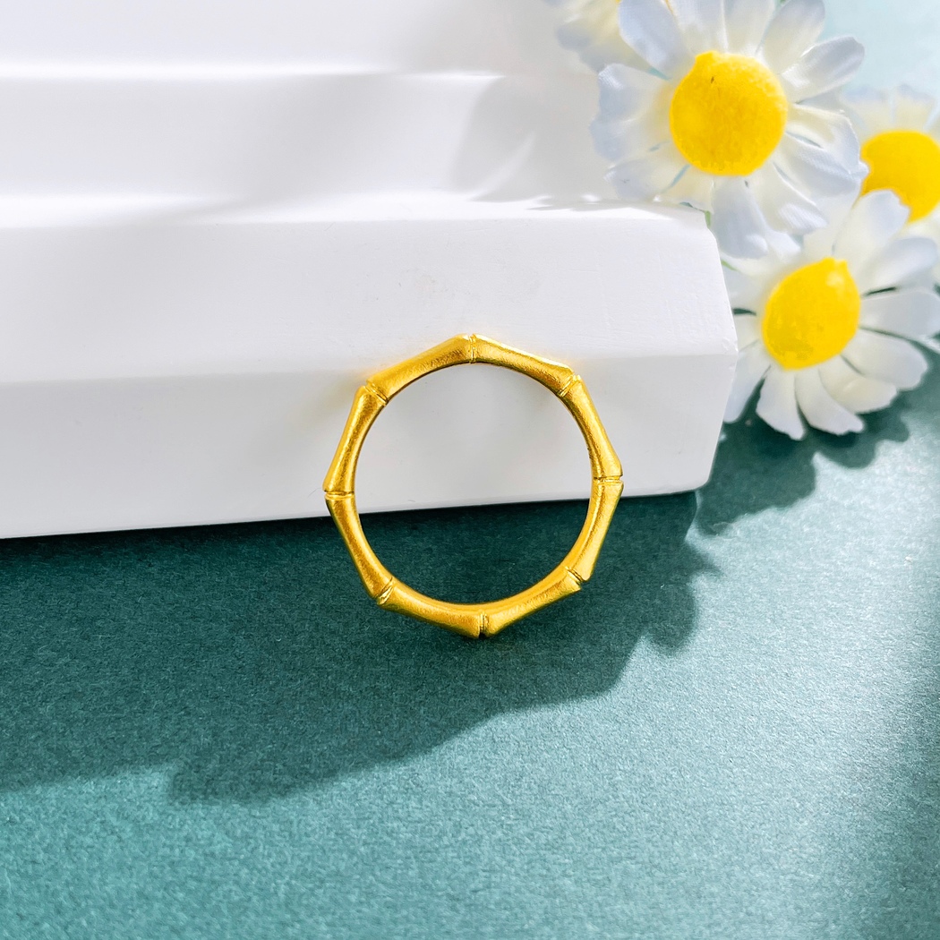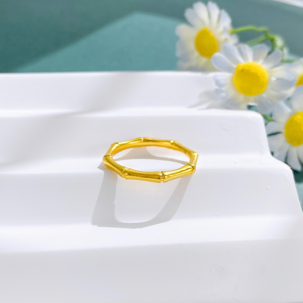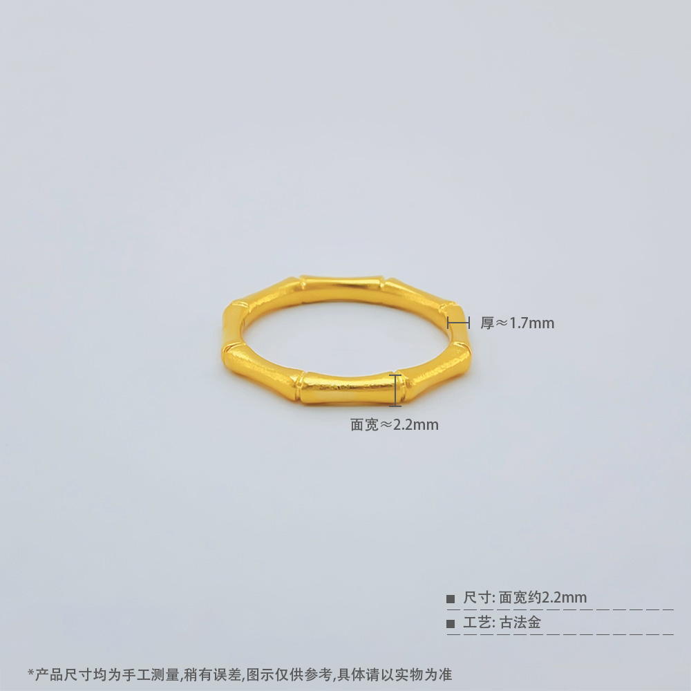 【限时克减150元】足金999.9 #复古风 #招财纳福 古法实心固口典雅节节高升竹节戒指圈戒(面宽约2-2.4mm)(AIGFJZ00281)预售产品下单后不退款不退货不换货不补差价