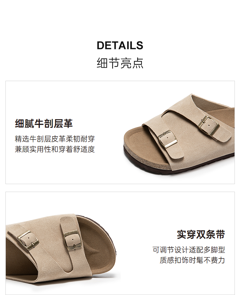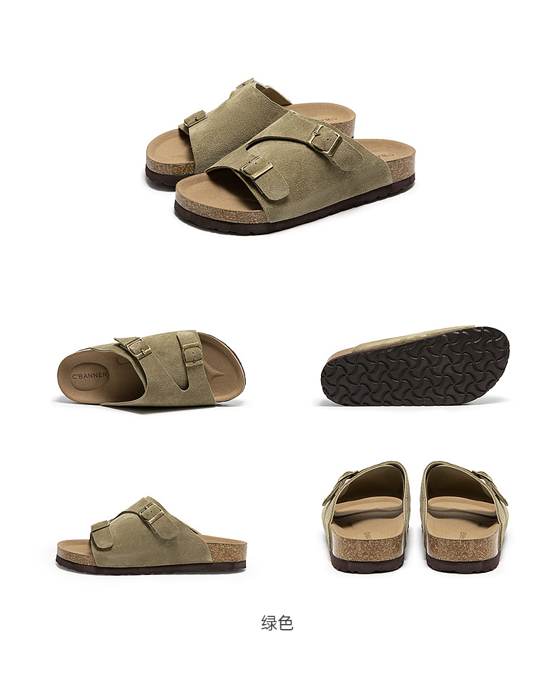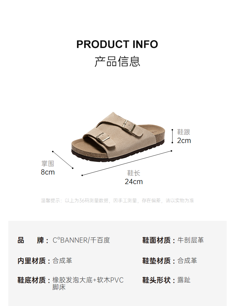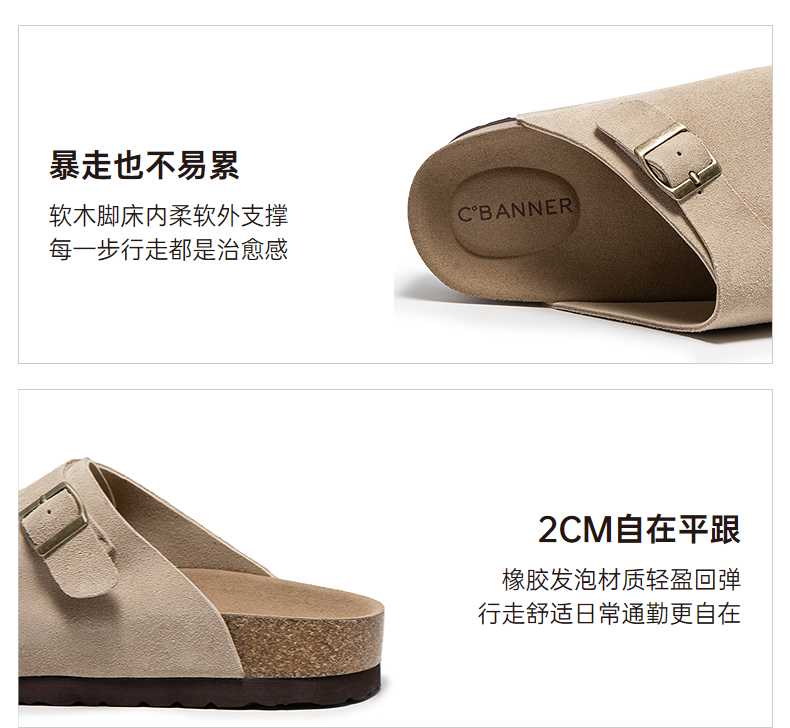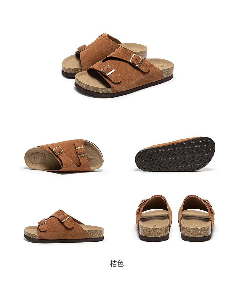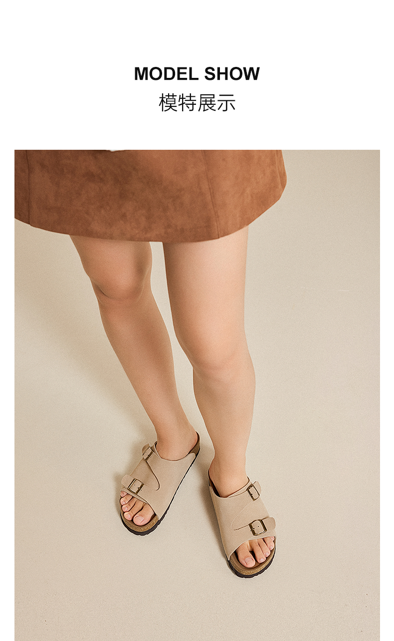 千百度露趾勃肯鞋女复古平底外穿一字拖一脚蹬凉拖鞋A25351201