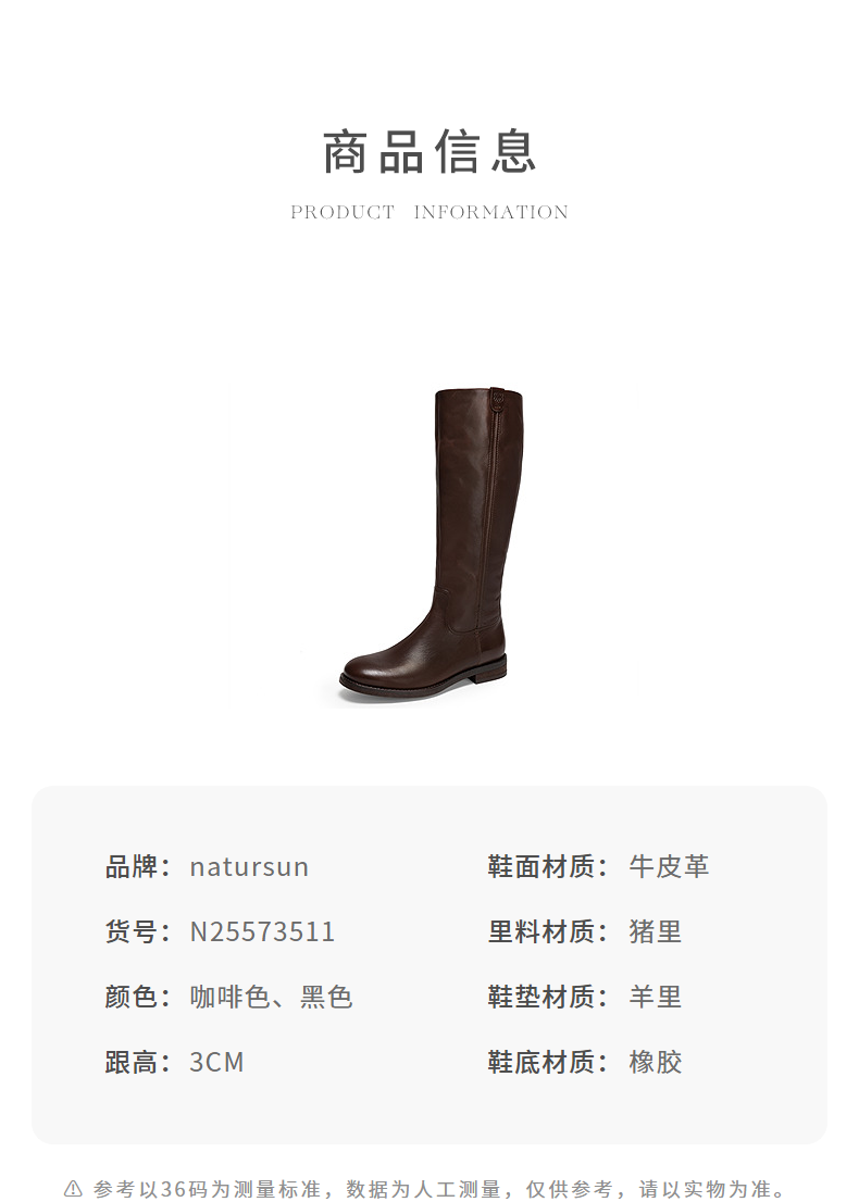 natursun复古骑士靴冬季新款女时尚舒适长筒靴英伦风显瘦靴子N25573511