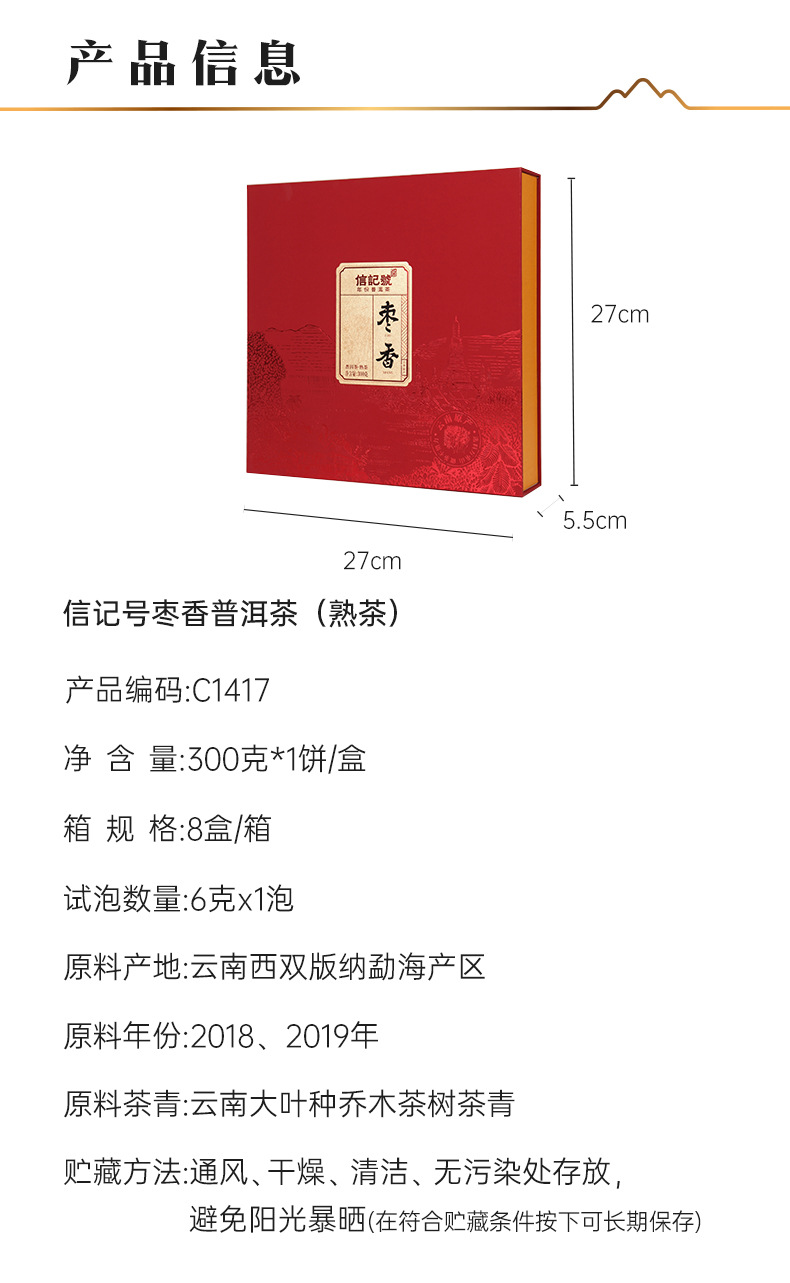 八马信记号|普洱熟茶 信记号枣香(300克) C1417
